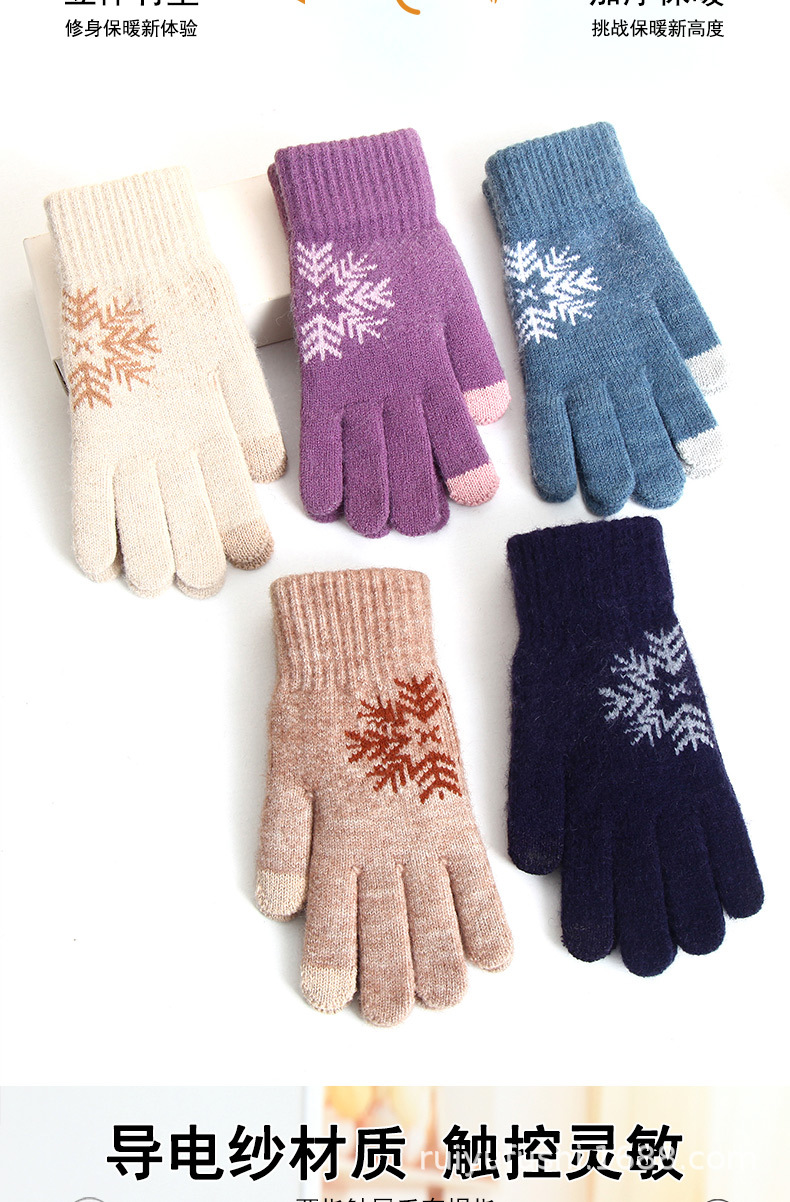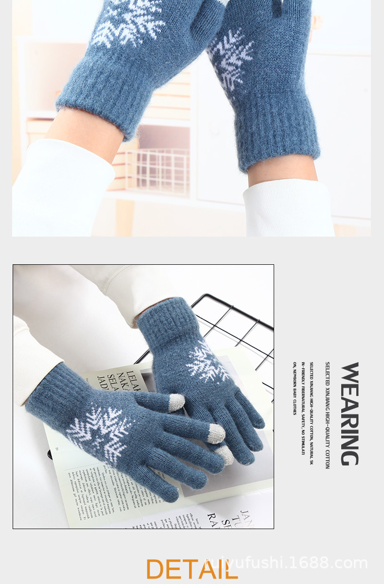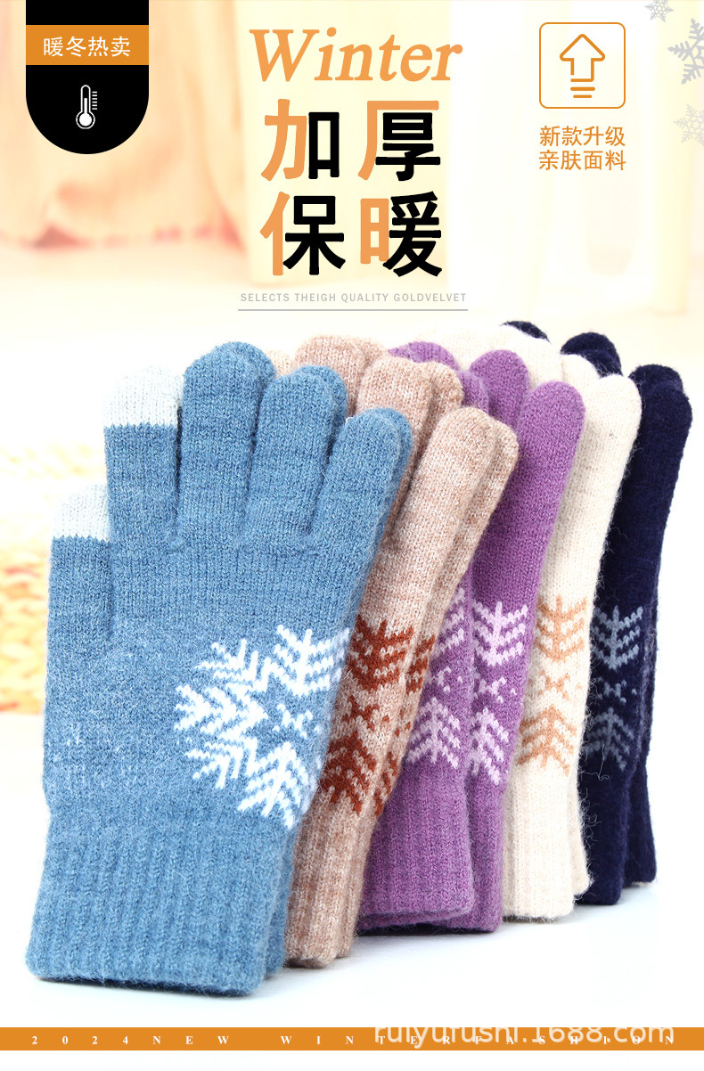 도매 두꺼운 여성용 터치스크린 장갑 다섯 손가락 이중층 보온 니트 장갑 모직 눈꽃 무늬 기모 대량 판매 클리어런스스토어 가기