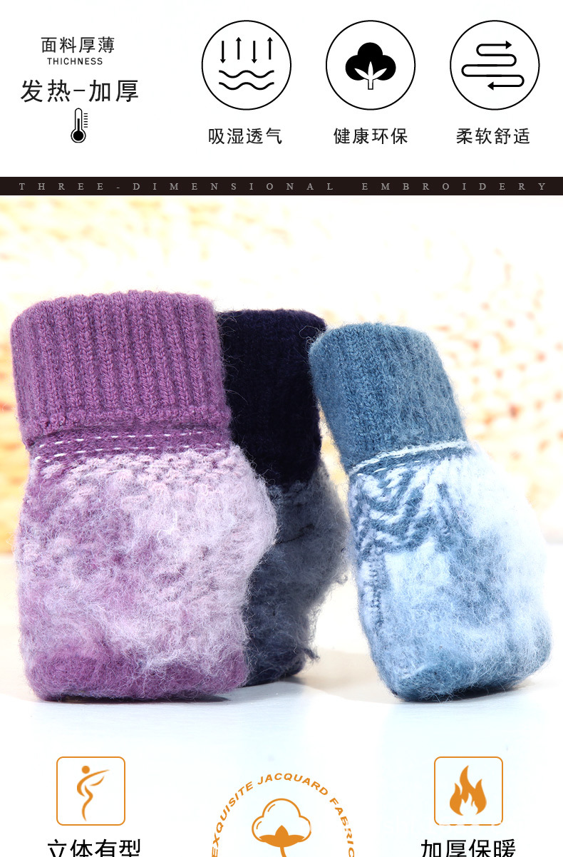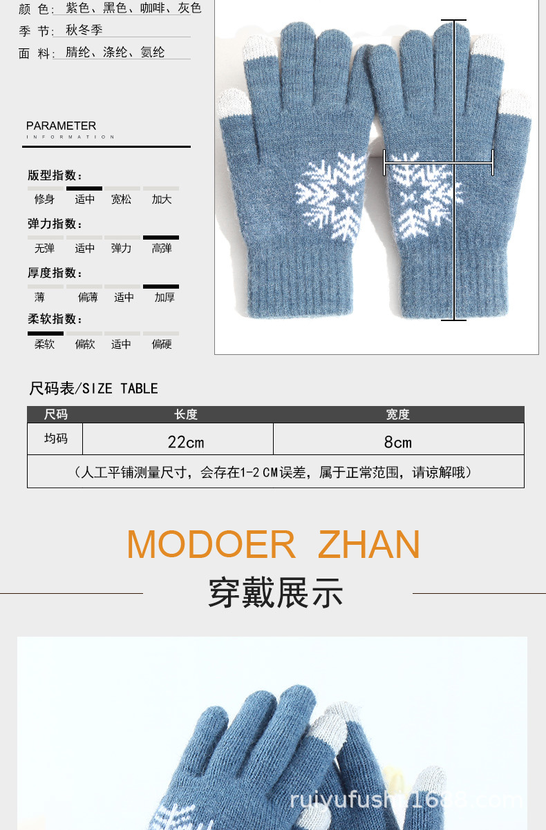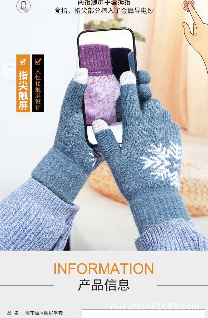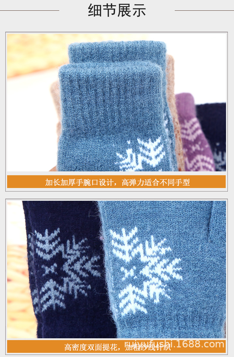 도매 두꺼운 여성용 터치스크린 장갑 다섯 손가락 이중층 보온 니트 장갑 모직 눈꽃 무늬 기모 대량 판매 클리어런스스토어 가기