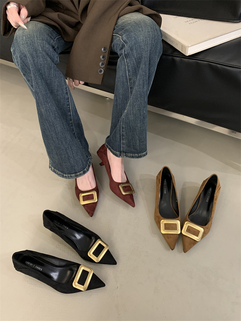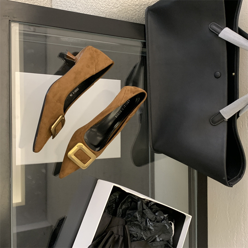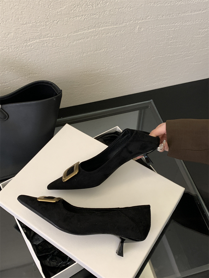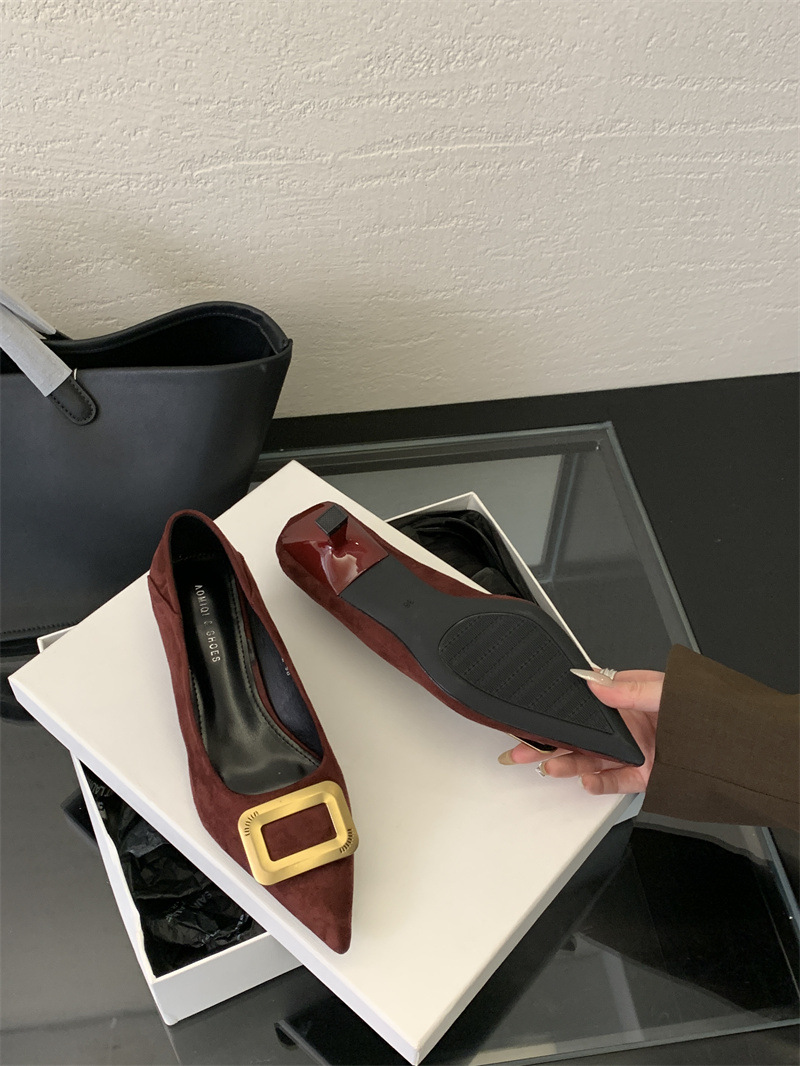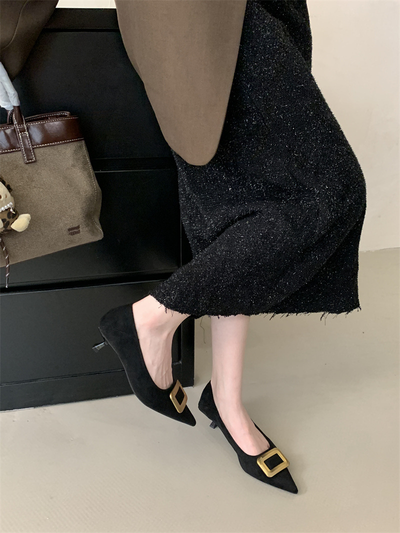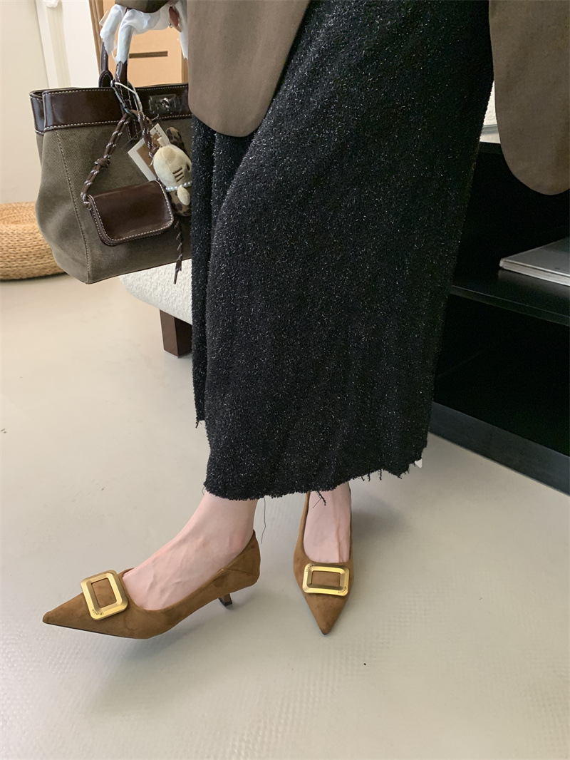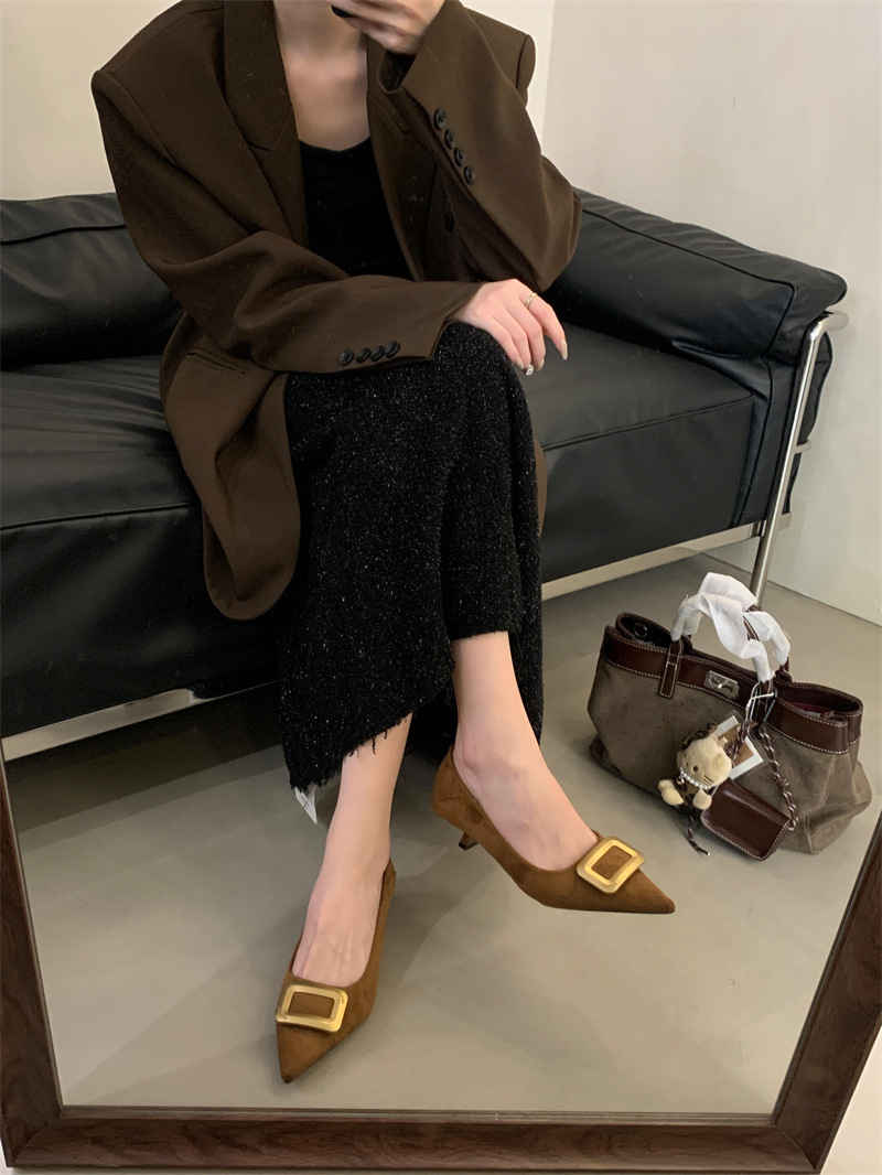 프렌치 스타일 스웨이드 뾰족코 정장 구두 2025 봄 가을 신상 뾰족코 낮은 굽 하이힐 여성용
