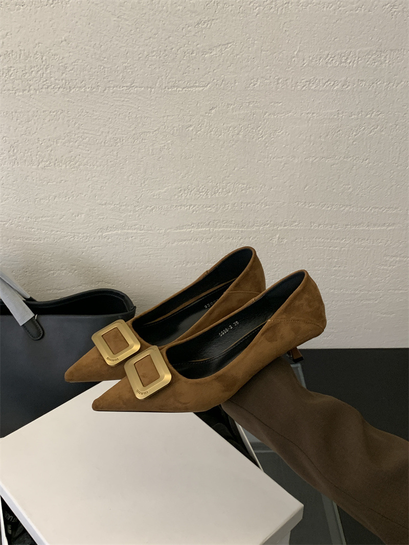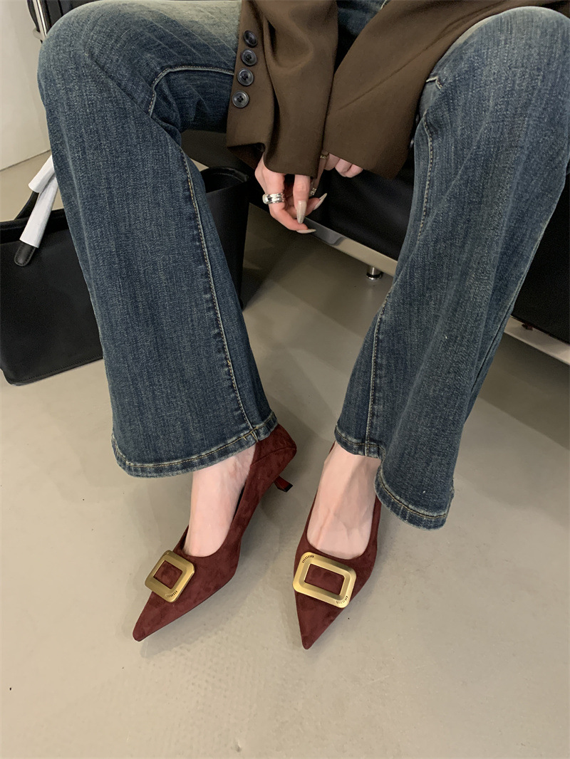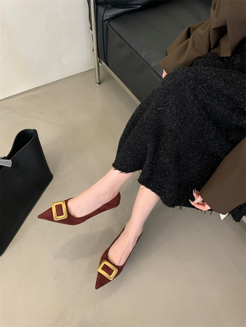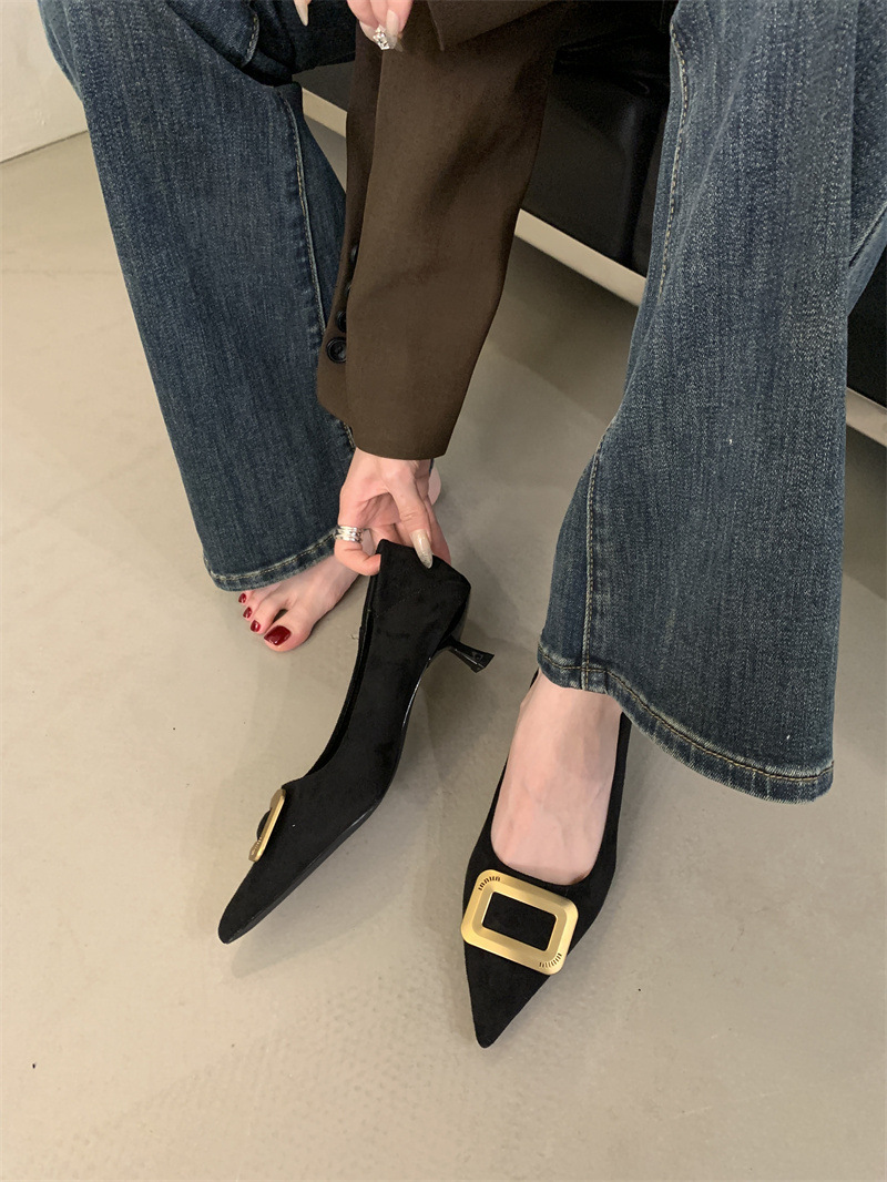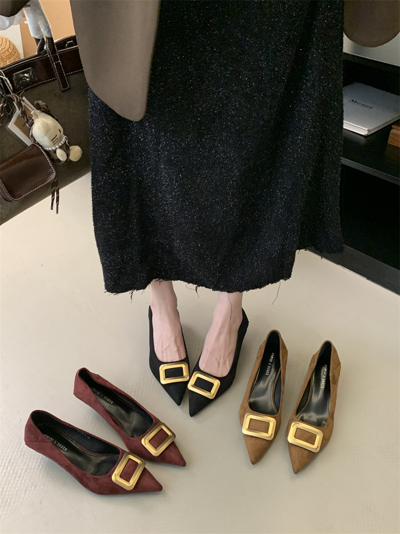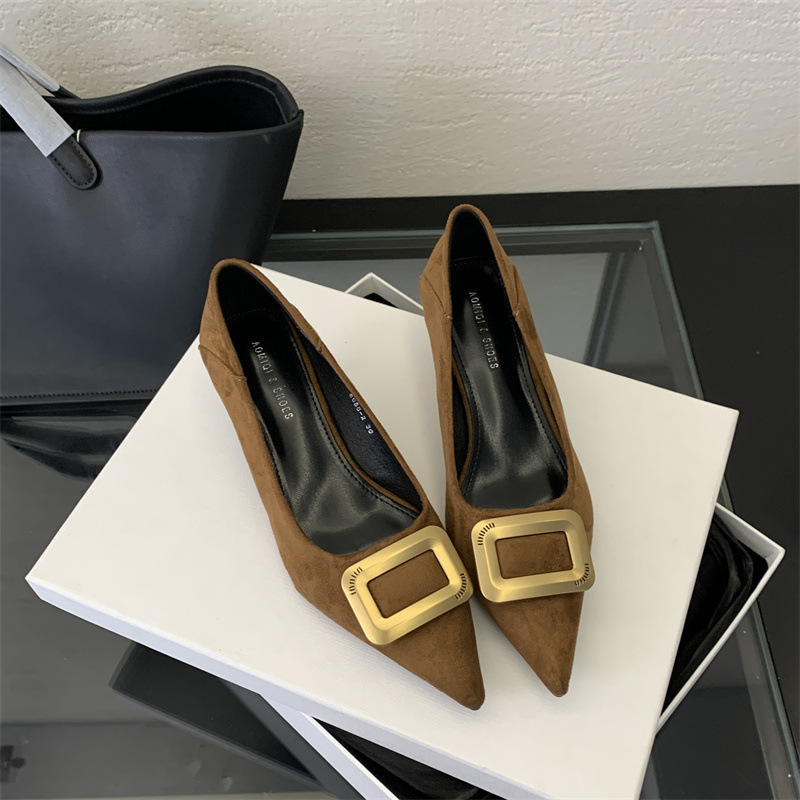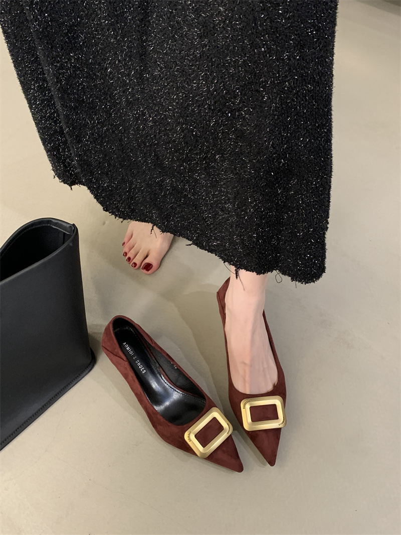 프렌치 스타일 스웨이드 뾰족코 정장 구두 2025 봄 가을 신상 뾰족코 낮은 굽 하이힐 여성용