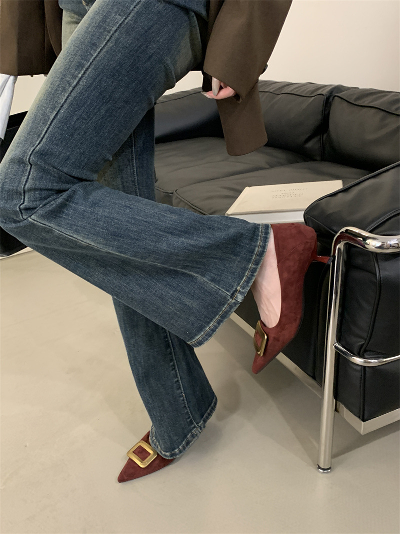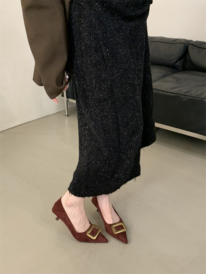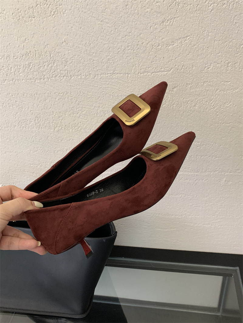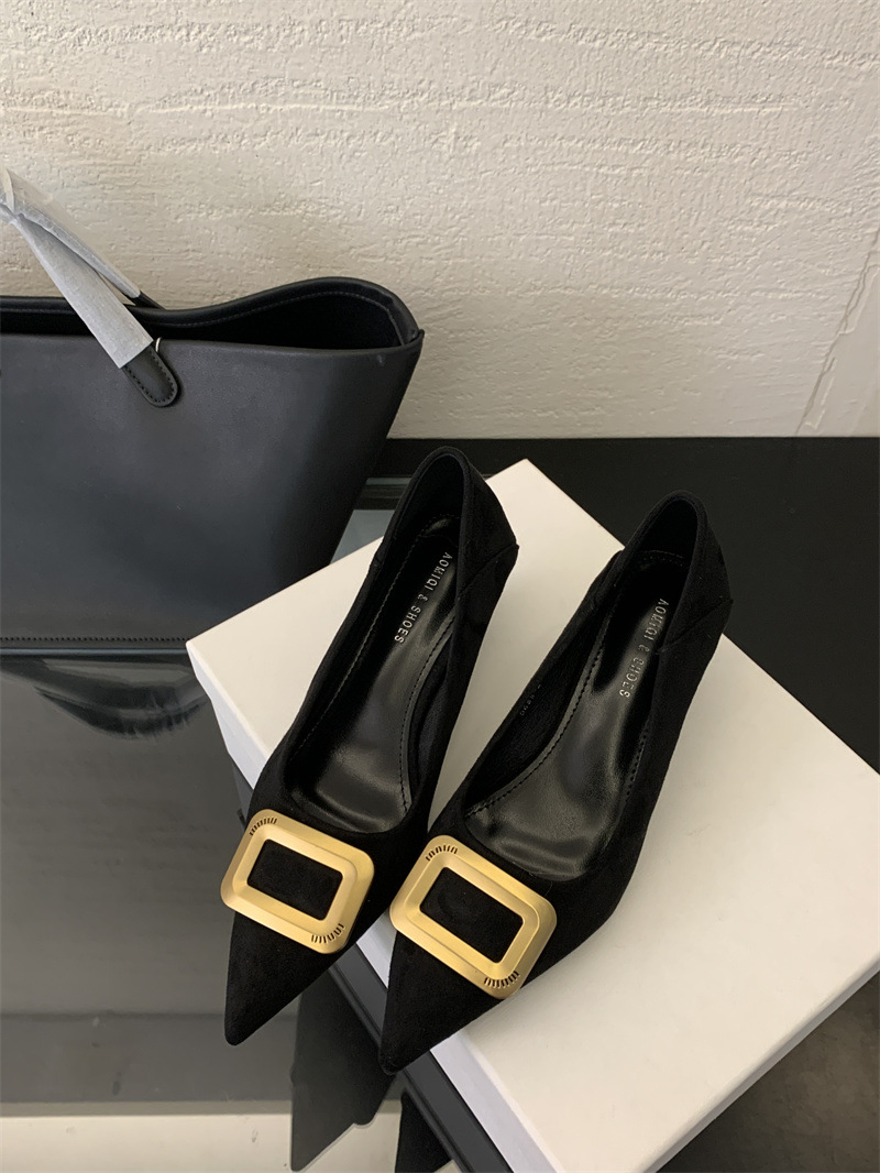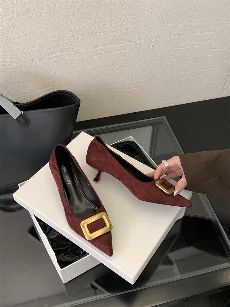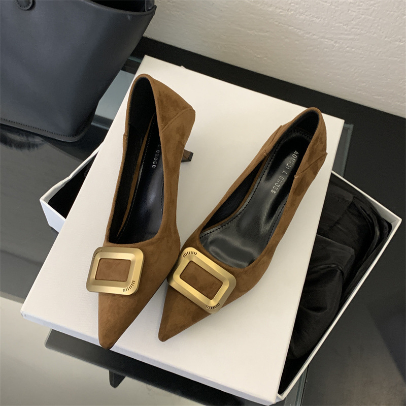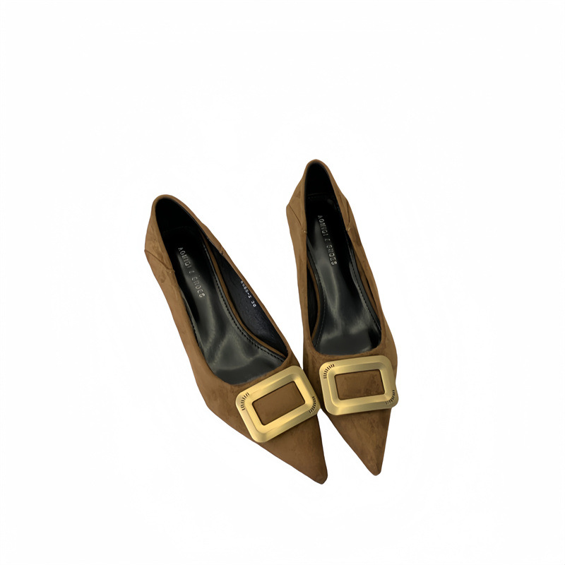 프렌치 스타일 스웨이드 뾰족코 정장 구두 2025 봄 가을 신상 뾰족코 낮은 굽 하이힐 여성용