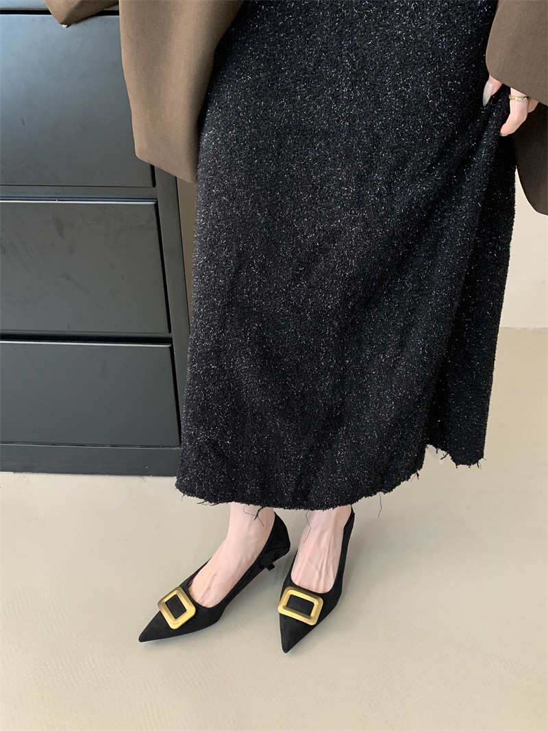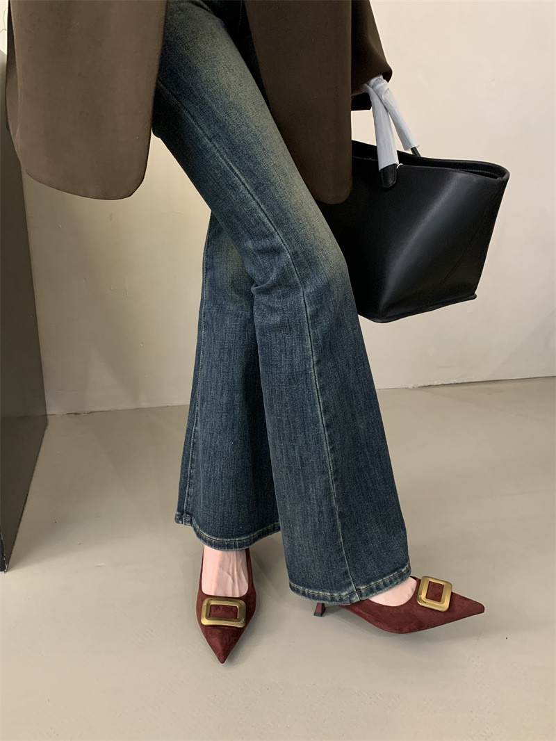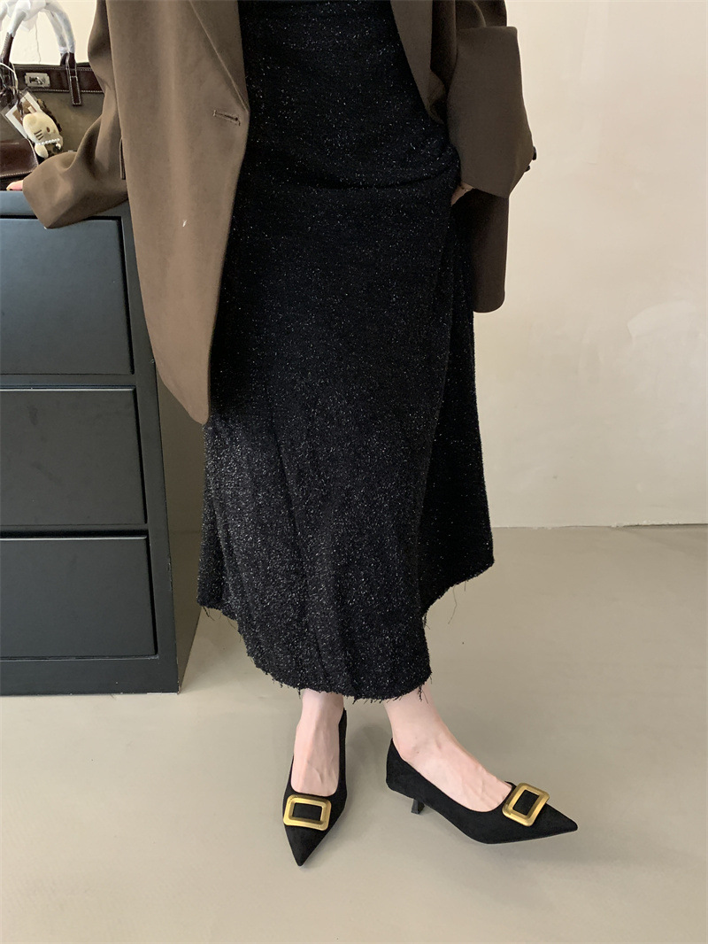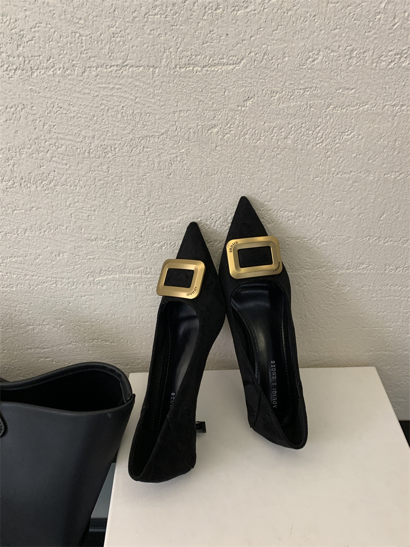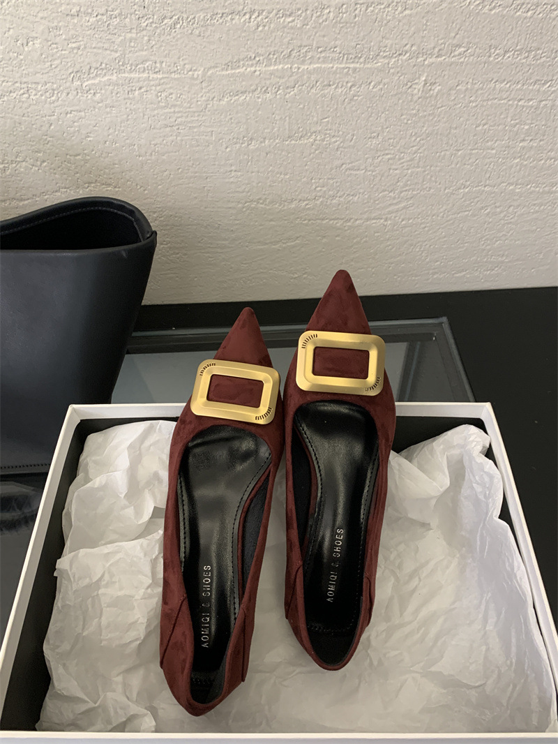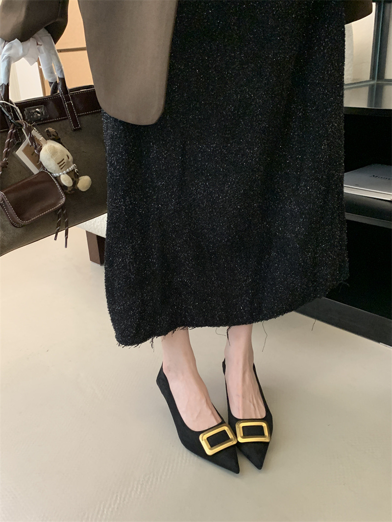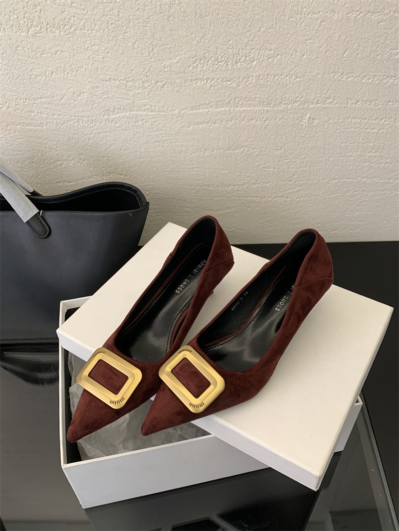 프렌치 스타일 스웨이드 뾰족코 정장 구두 2025 봄 가을 신상 뾰족코 낮은 굽 하이힐 여성용