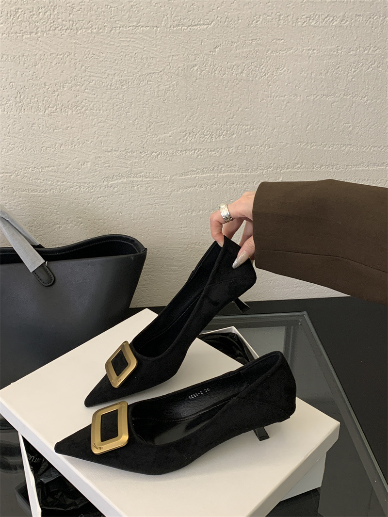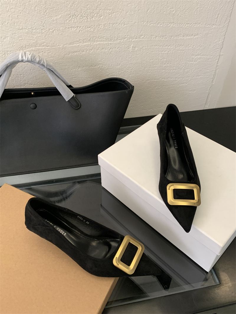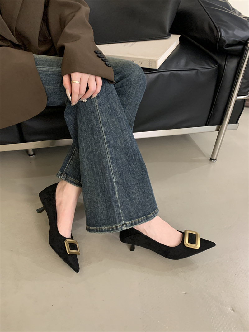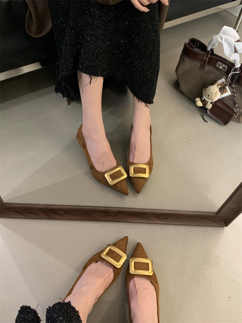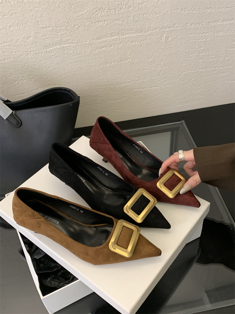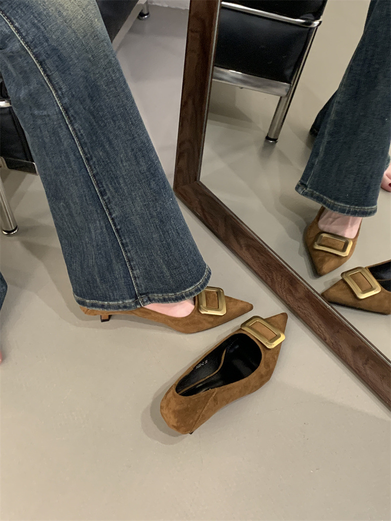 프렌치 스타일 스웨이드 뾰족코 정장 구두 2025 봄 가을 신상 뾰족코 낮은 굽 하이힐 여성용스토어 가기