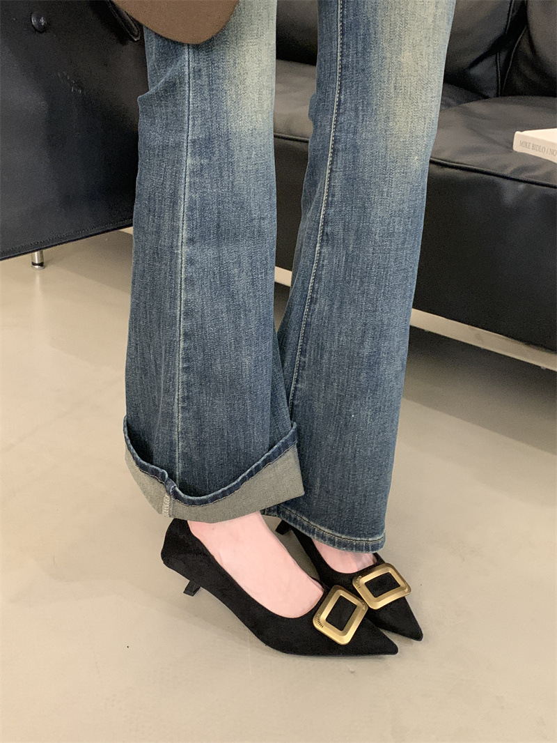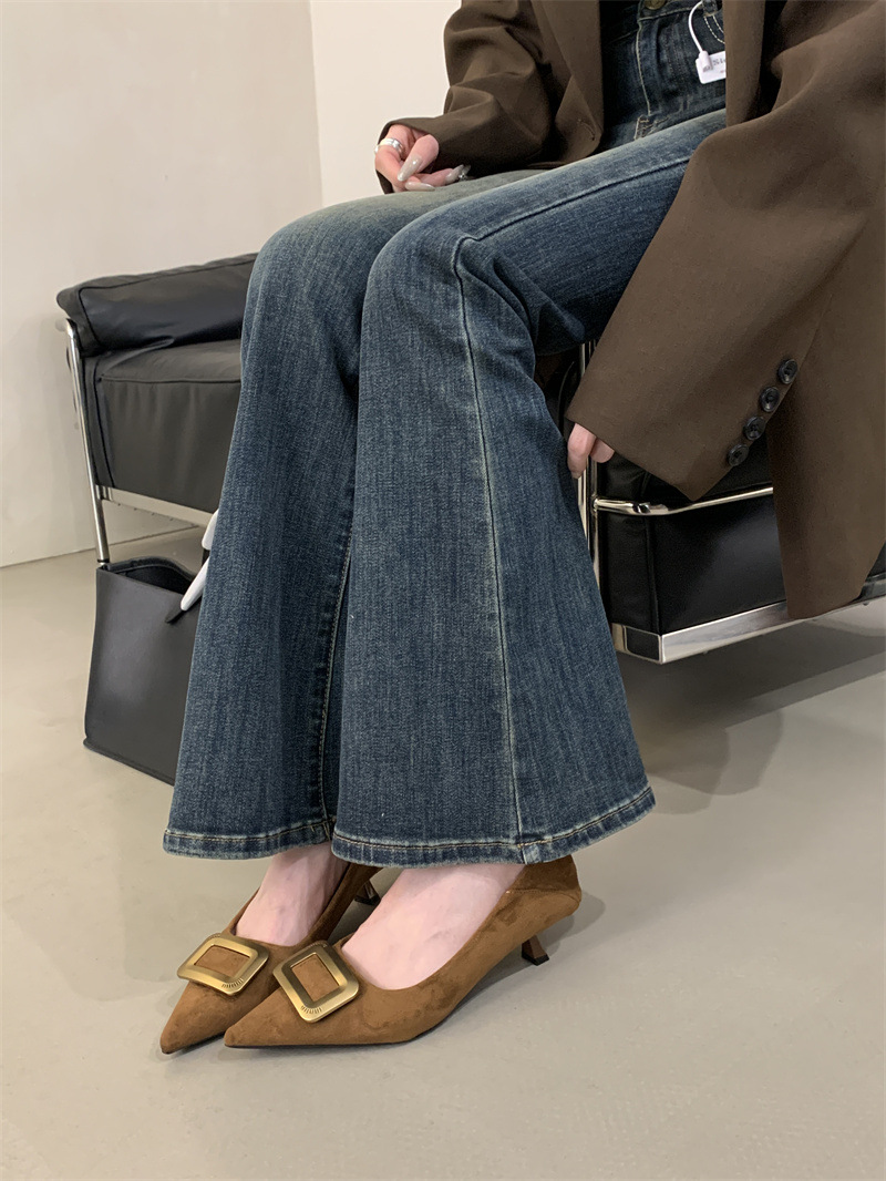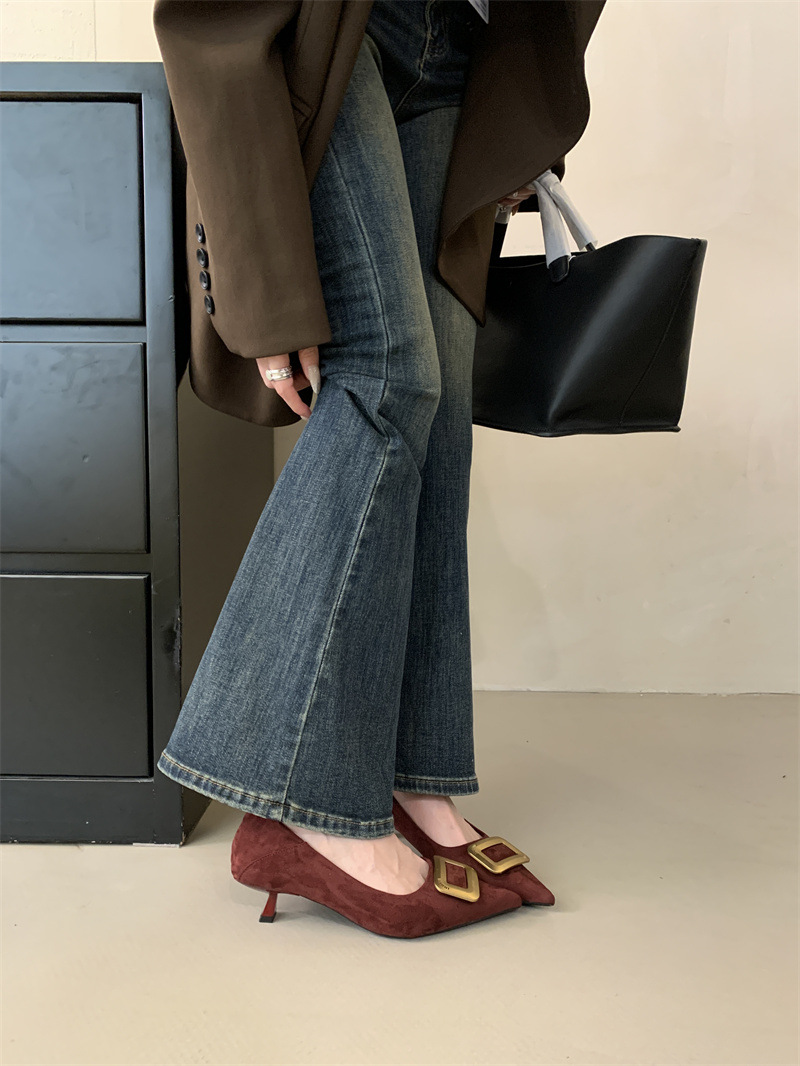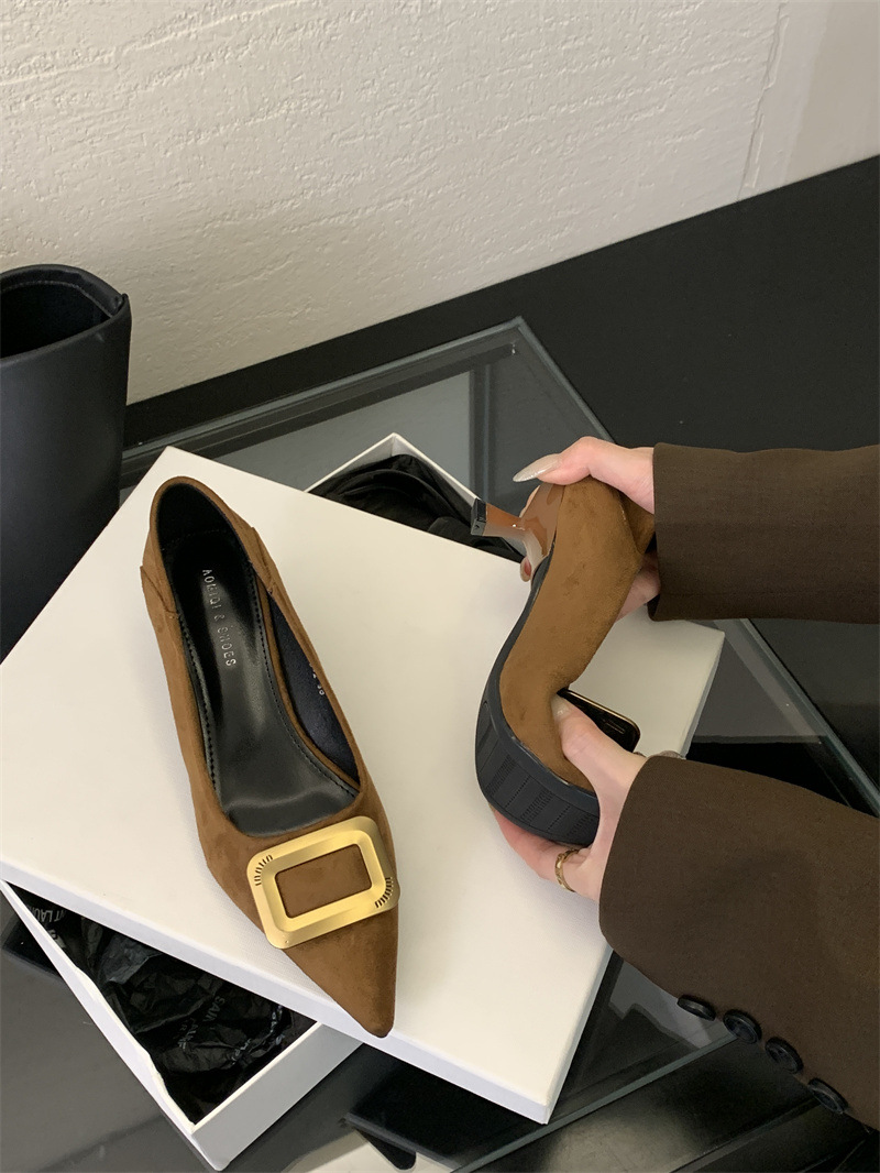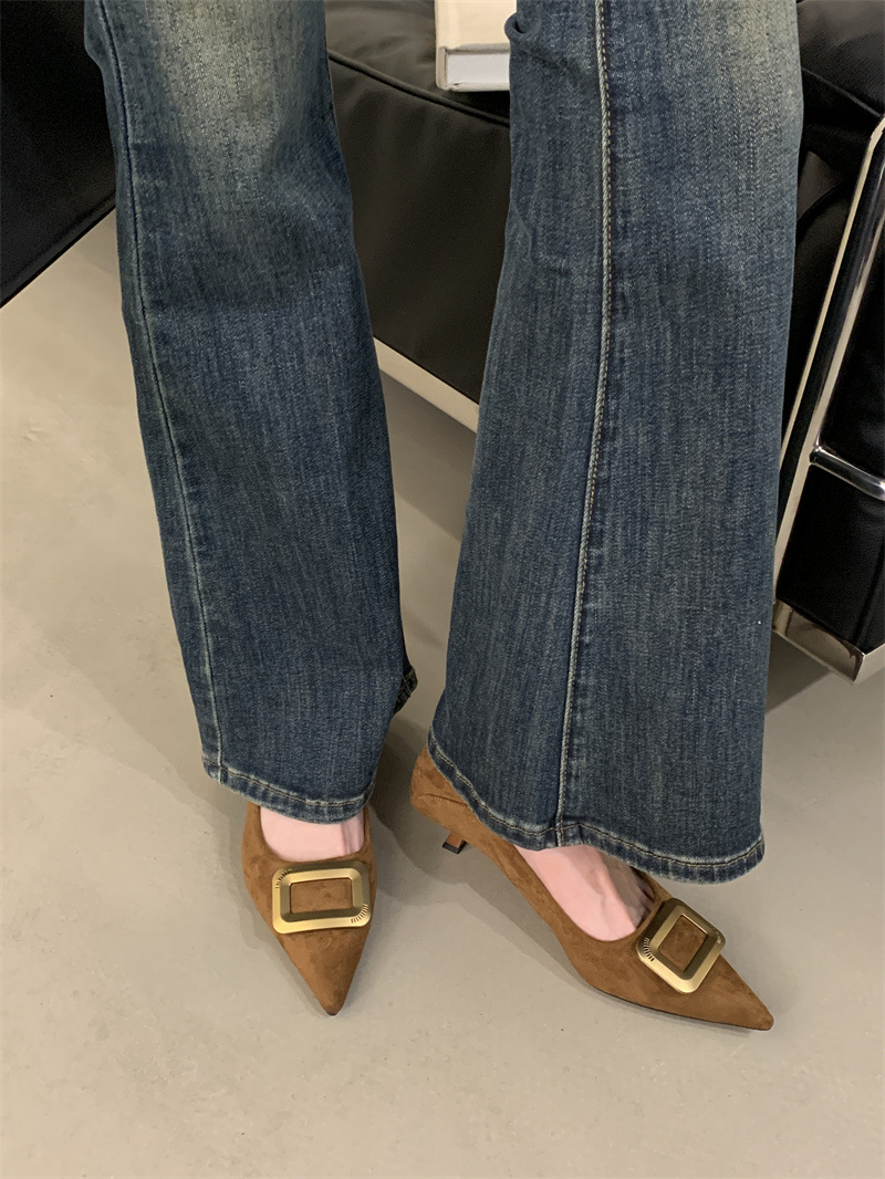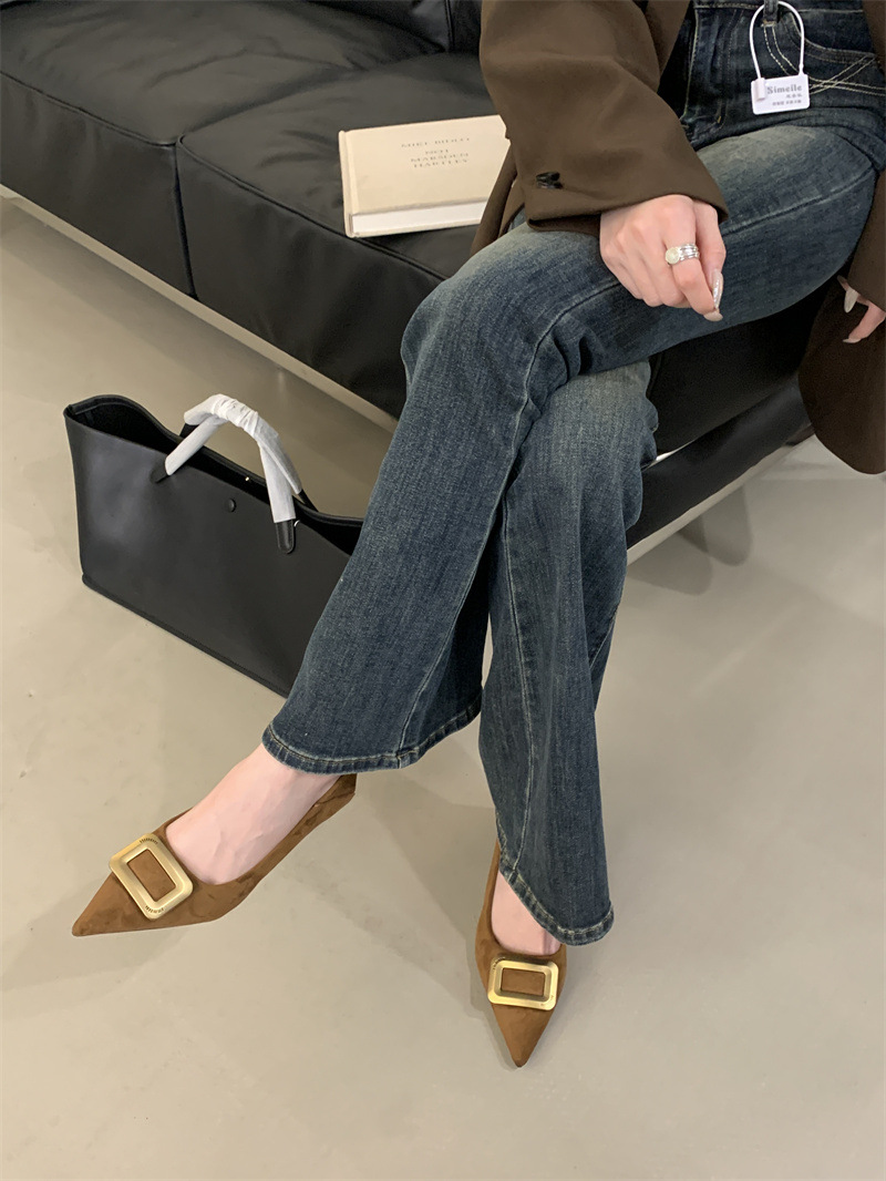 프렌치 스타일 스웨이드 뾰족코 정장 구두 2025 봄 가을 신상 뾰족코 낮은 굽 하이힐 여성용스토어 가기