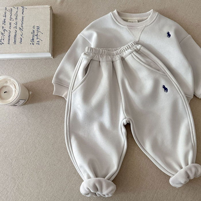 소년 소녀 한국식 벨벳 세트 가을과 겨울 유행 캐주얼 바지 단색 투피스 세트스토어 가기