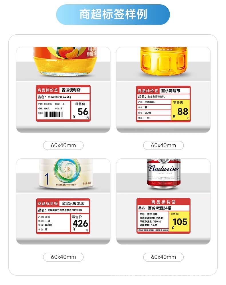 휴대용 블루투스 열 라벨 프린터 홈 의류 식품 슈퍼마켓 상품 가격 라벨스토어 가기
