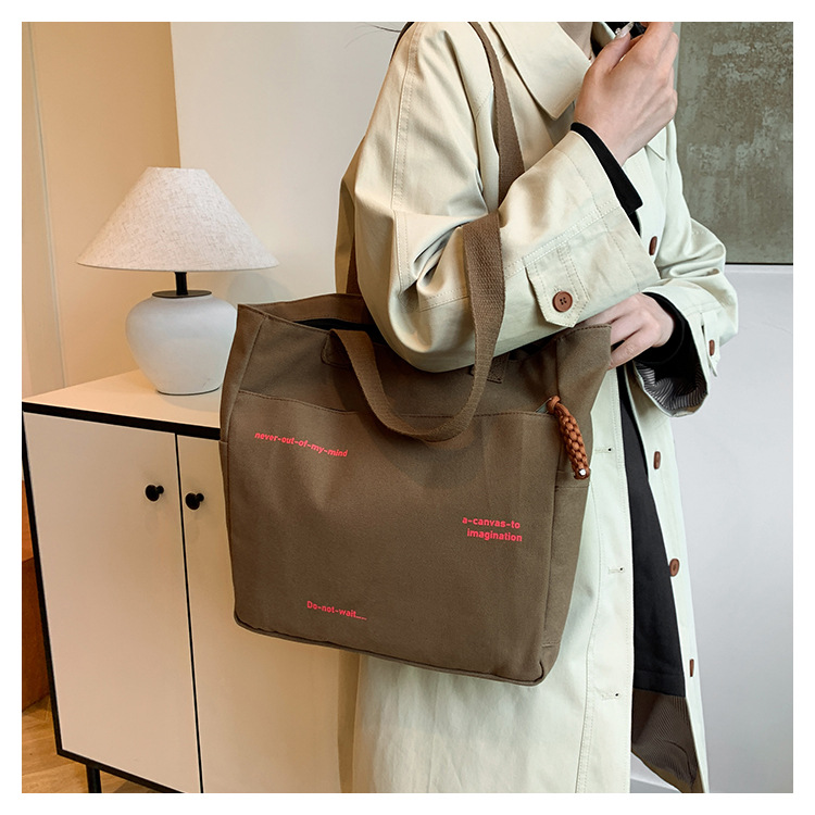 2025 새로운 통근 대용량 캔버스 숄더백 여성 한국식 올매치 휴대용 토트 백 도매 대외 무역스토어 가기