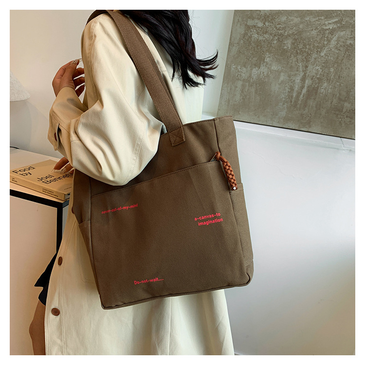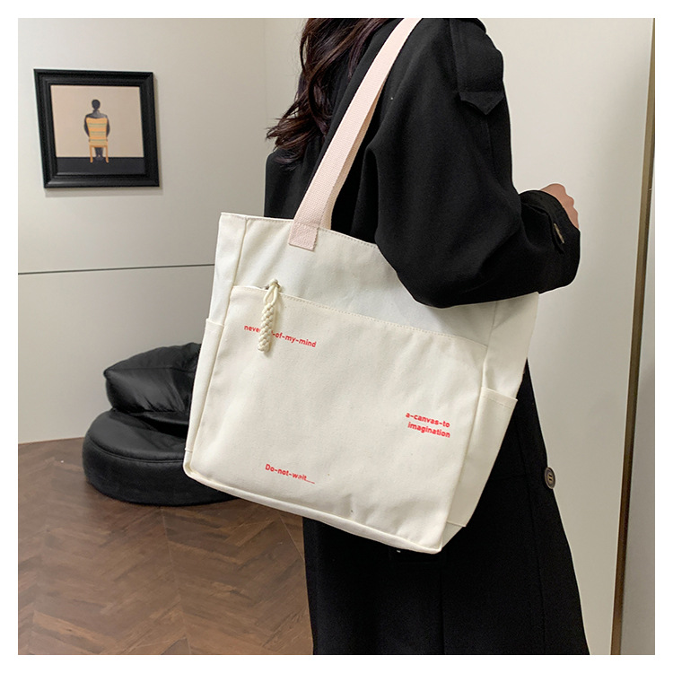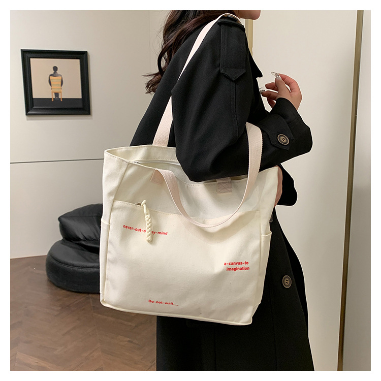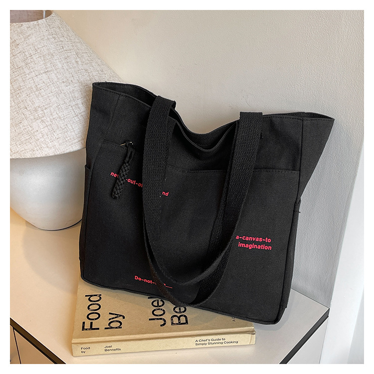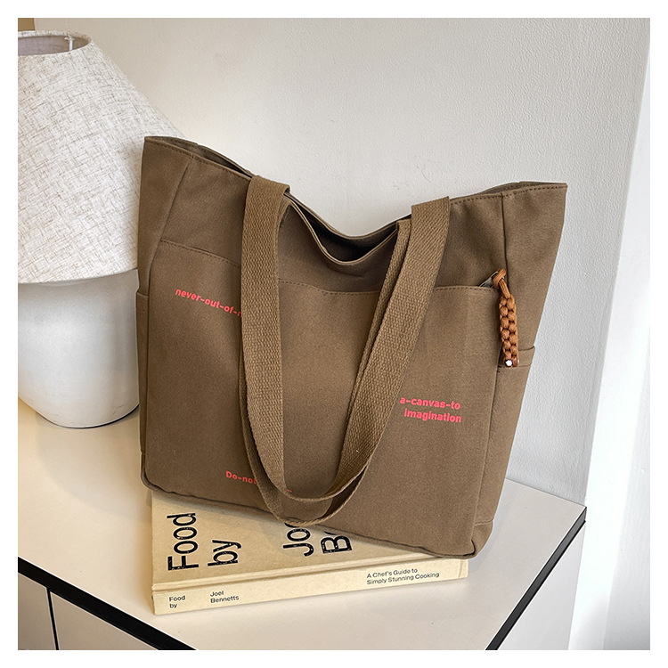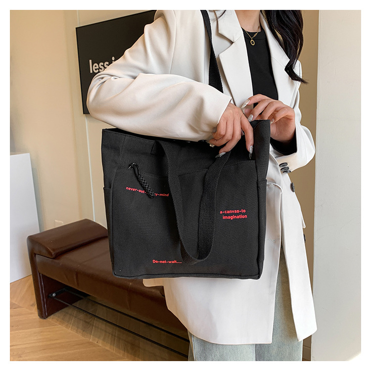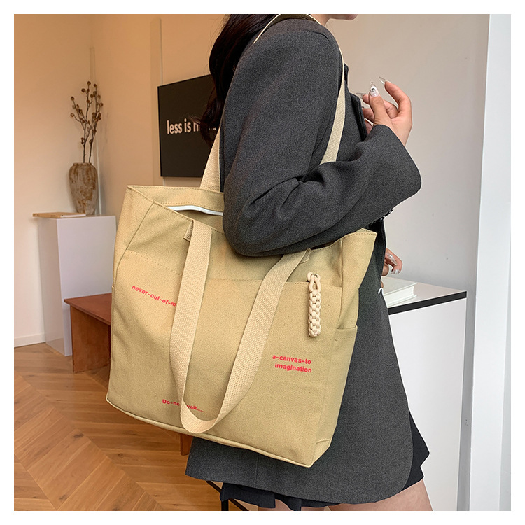 2025 새로운 통근 대용량 캔버스 숄더백 여성 한국식 올매치 휴대용 토트 백 도매 대외 무역