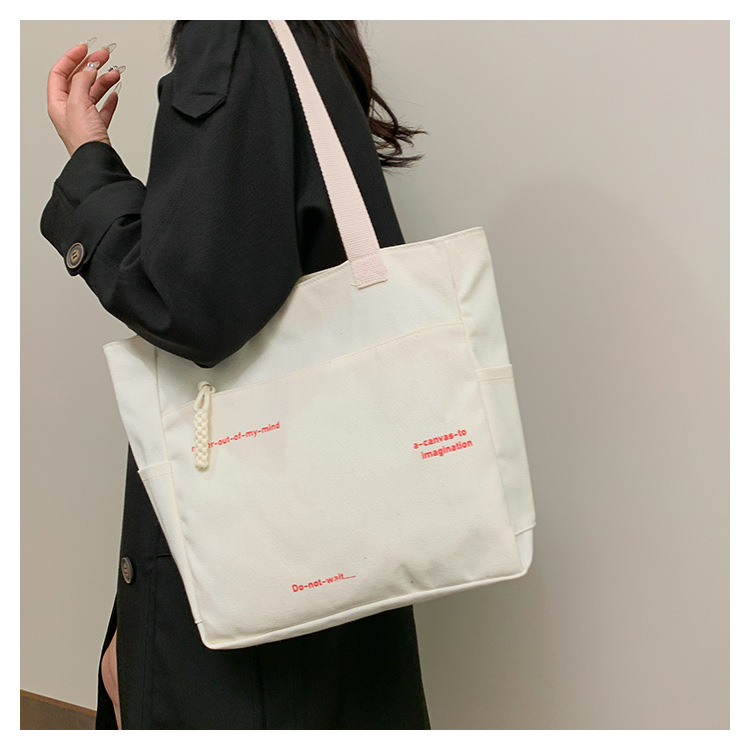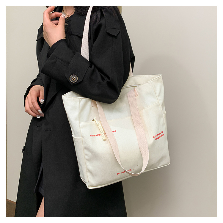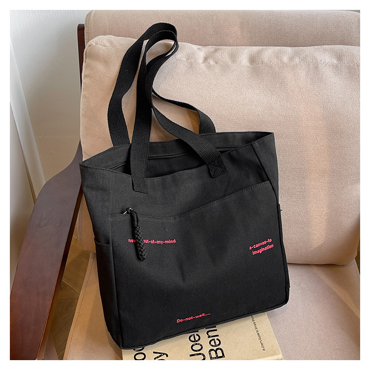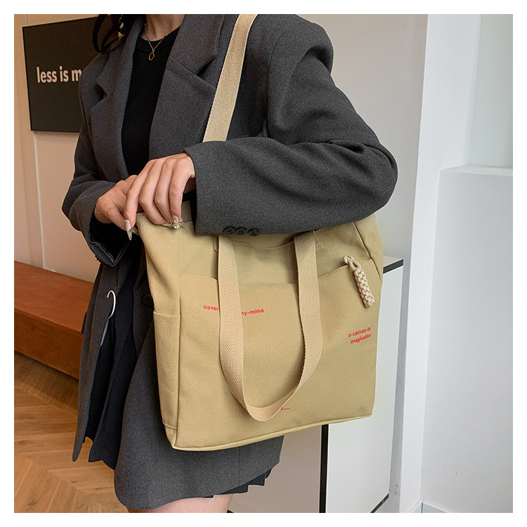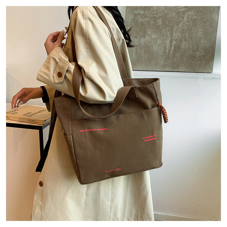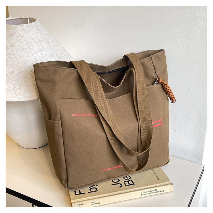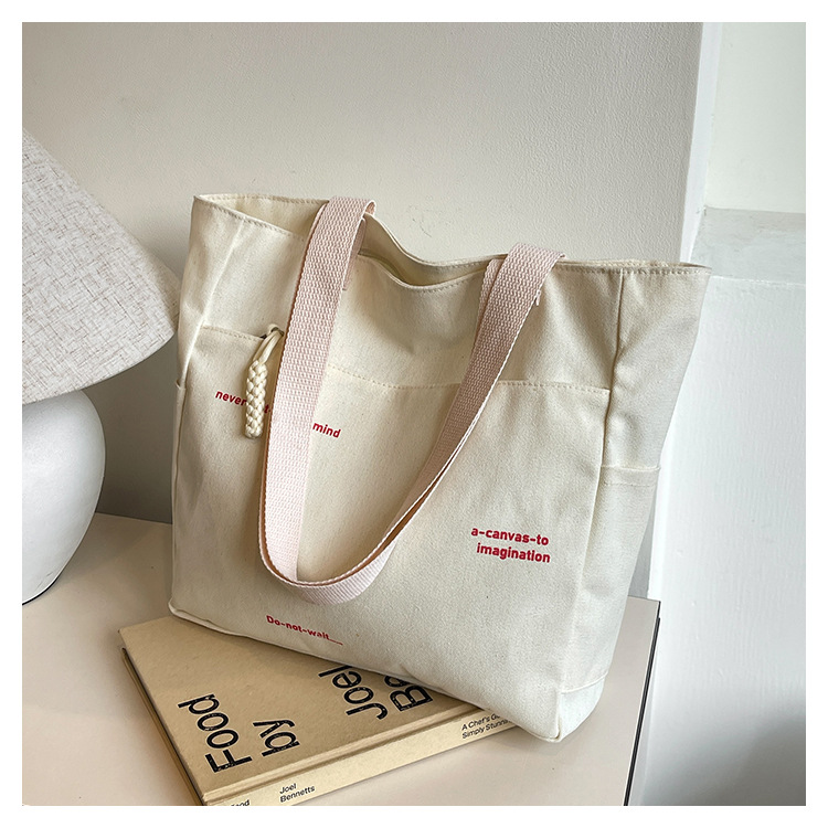 2025 새로운 통근 대용량 캔버스 숄더백 여성 한국식 올매치 휴대용 토트 백 도매 대외 무역