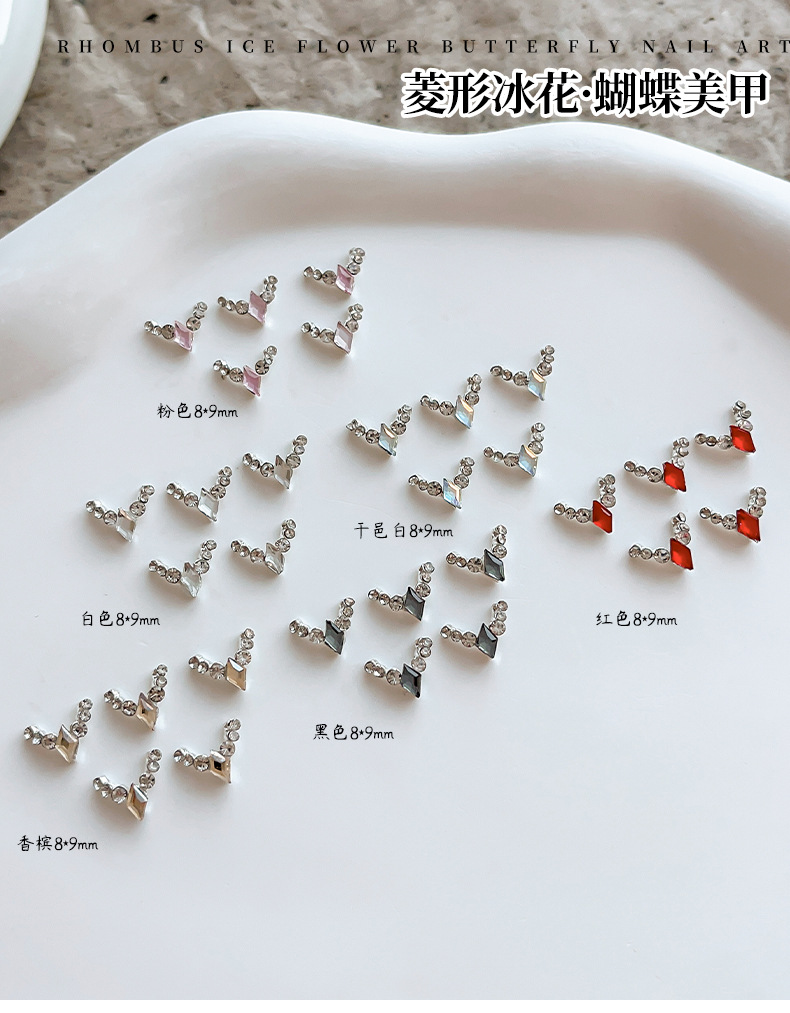 폭발 다이아몬드 모양의 얼음 꽃 나비 네일 아트 보석 절묘한 체크 매직 플래시 빛 럭셔리 바람 착용 갑옷 액세서리 도매
