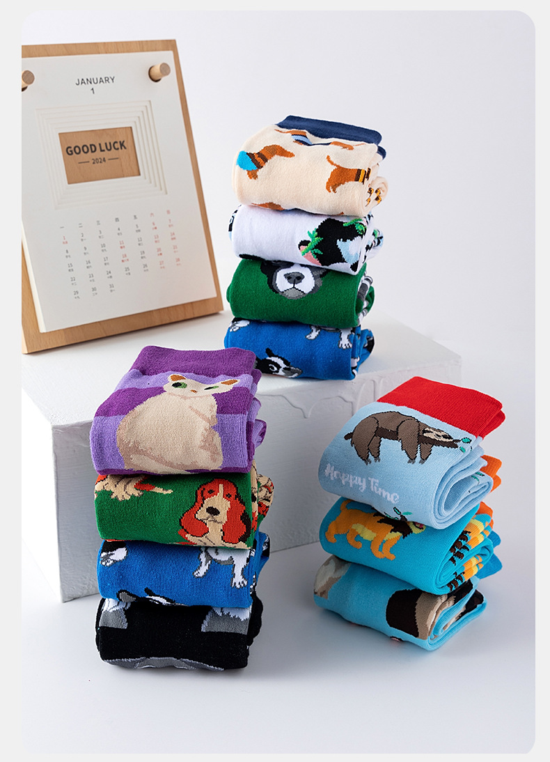 국경을 넘는 트렌디 양말 동물 무늬 강아지 고양이 양말 남녀 공용 중목 양말 아마존 트렌디 양말 도매