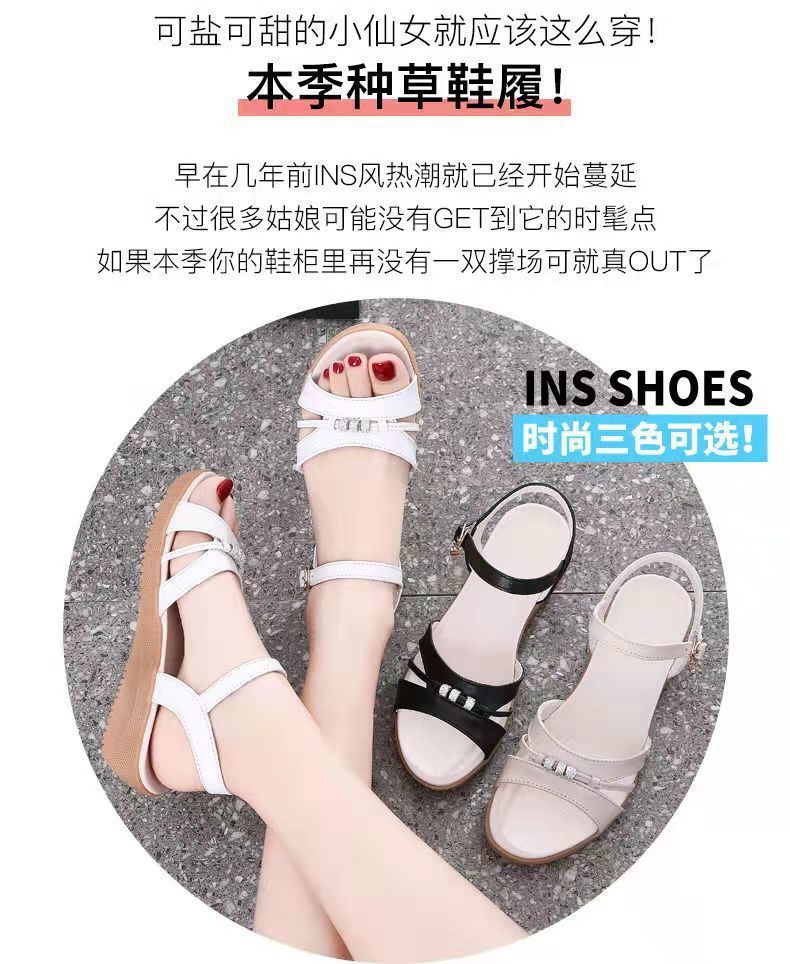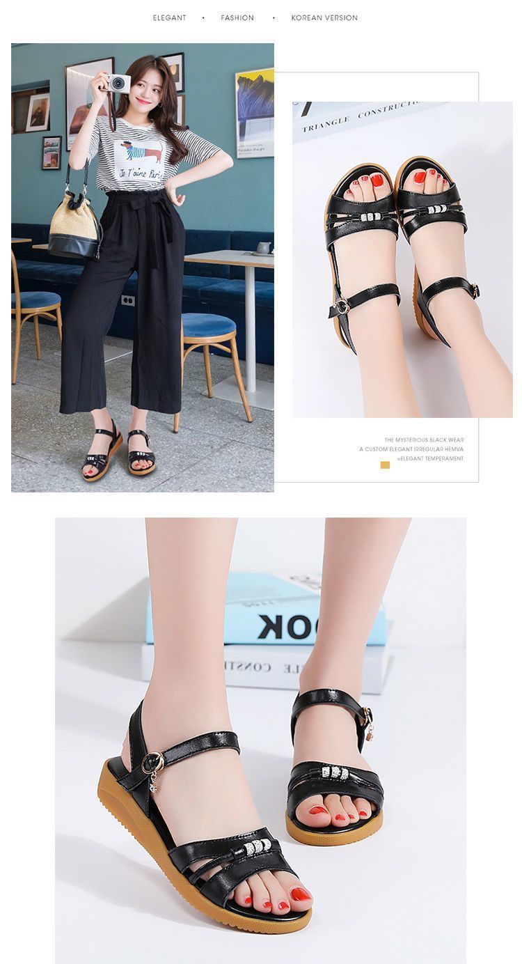 웨지 슬립 샌들 2024 여름 새로운 패션 샌들 여성 아웃웨어 유럽과 미국의 엄마 신발 소프트 솔 비치 슬리퍼스토어 가기