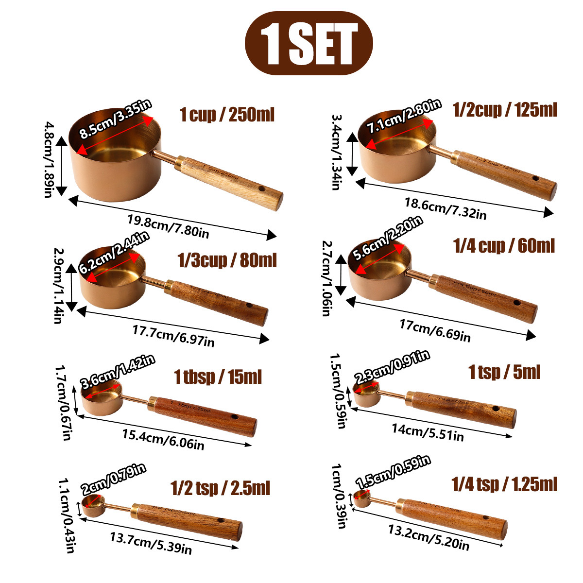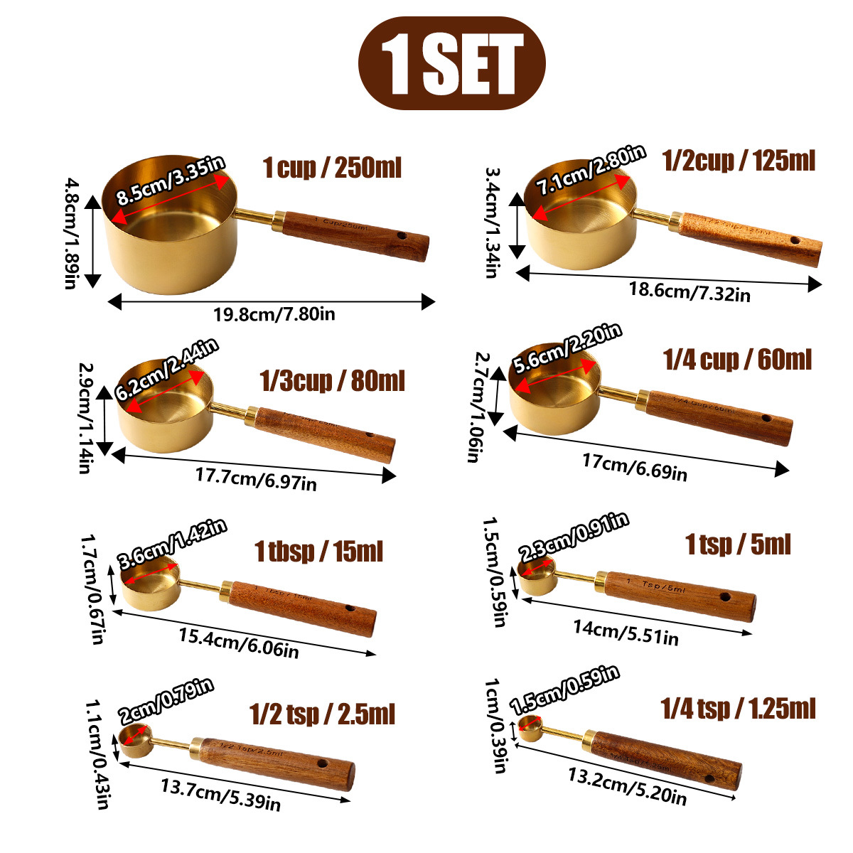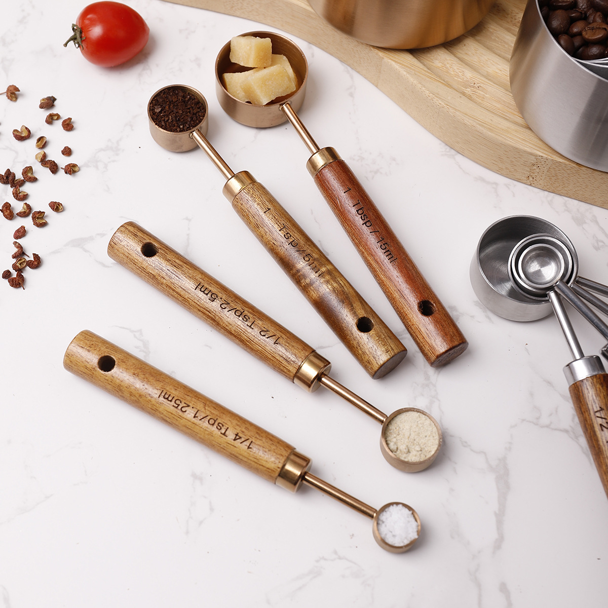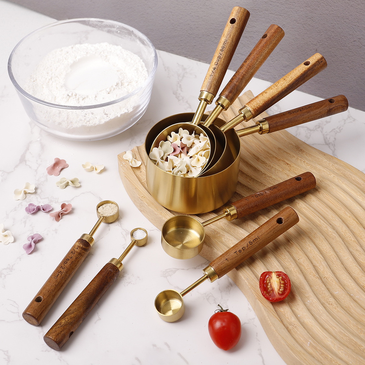 재고 도매 아카시아 나무 손잡이 측정 컵 스푼 8 개 세트 커피 측정 숟가락 측정 컵 베이킹 도구