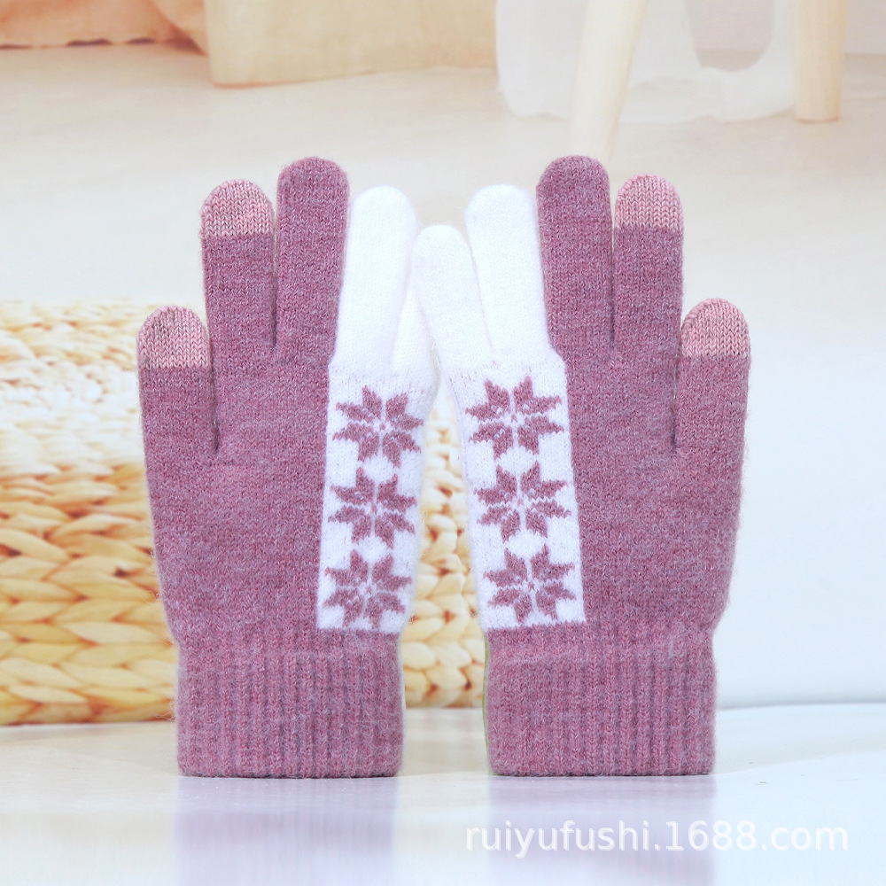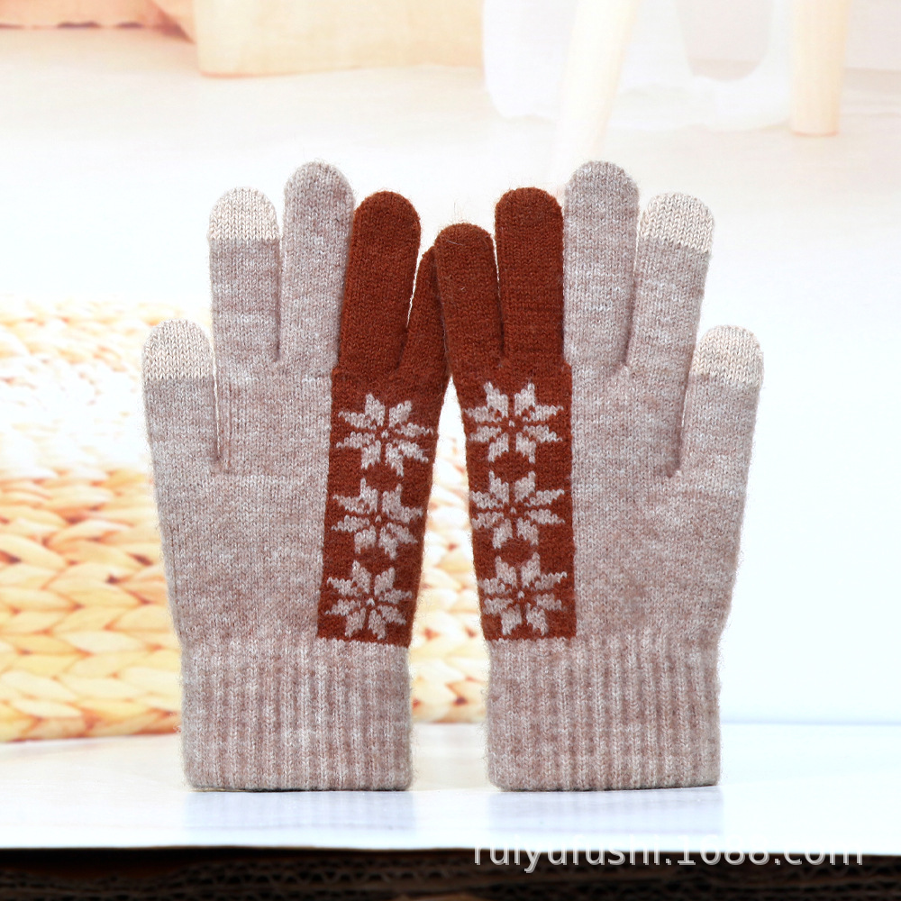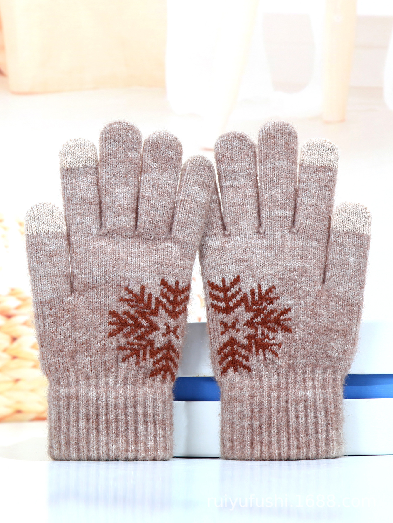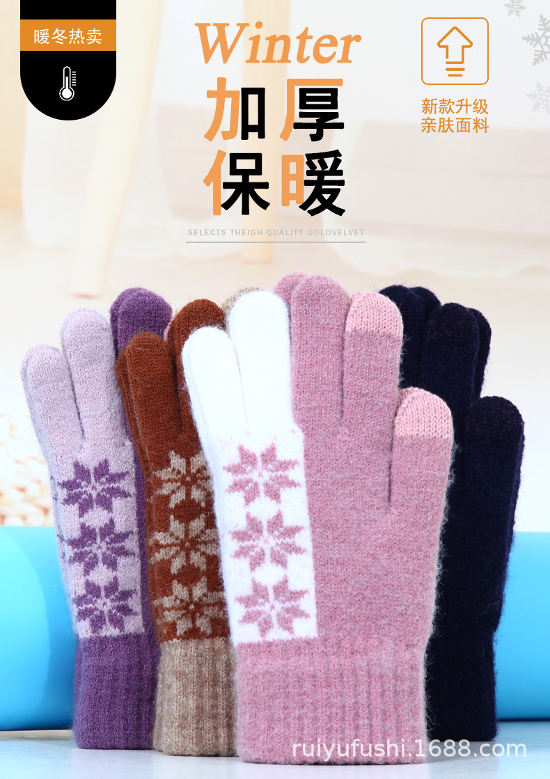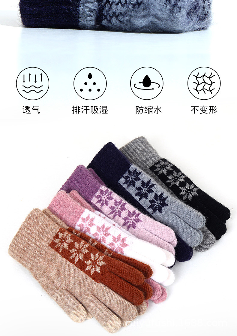 도매 기모 두꺼운 여성용 터치스크린 장갑 다섯 손가락 눈꽃 무늬 보온 니트 장갑 모직 니트 재고 정리스토어 가기