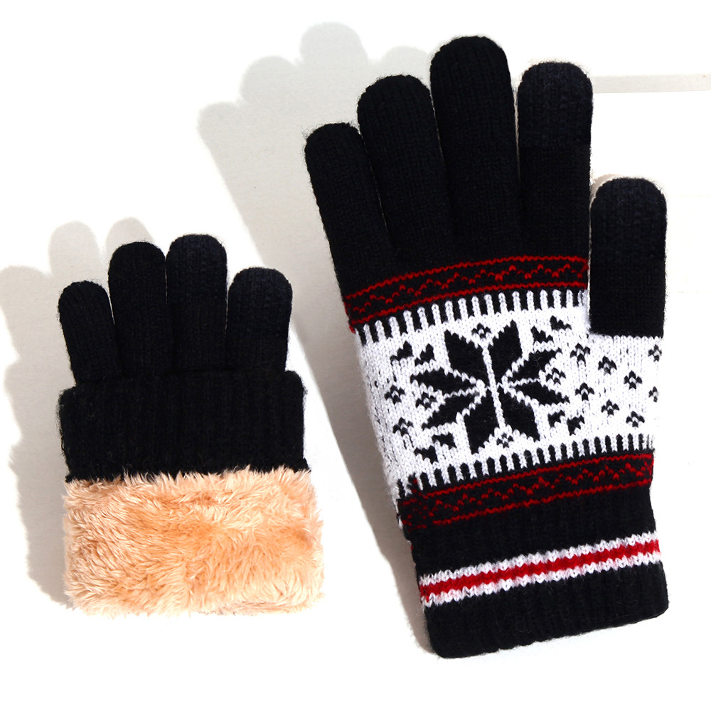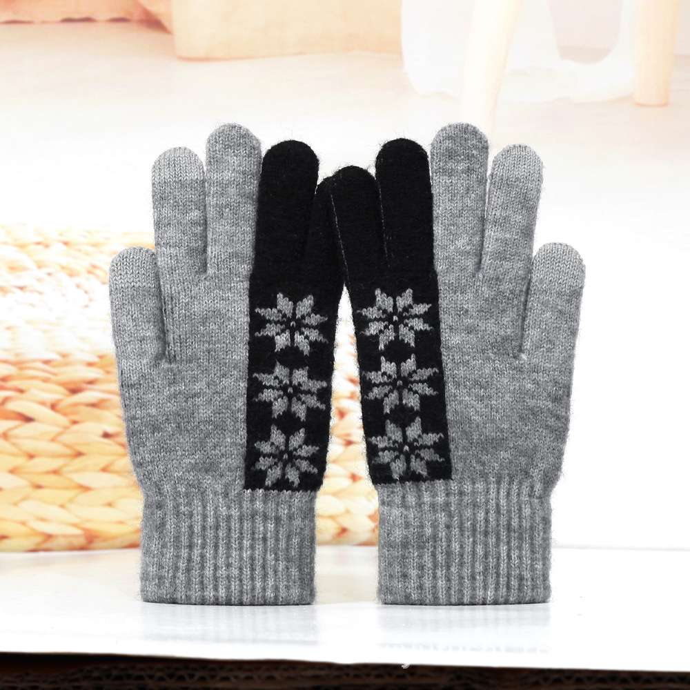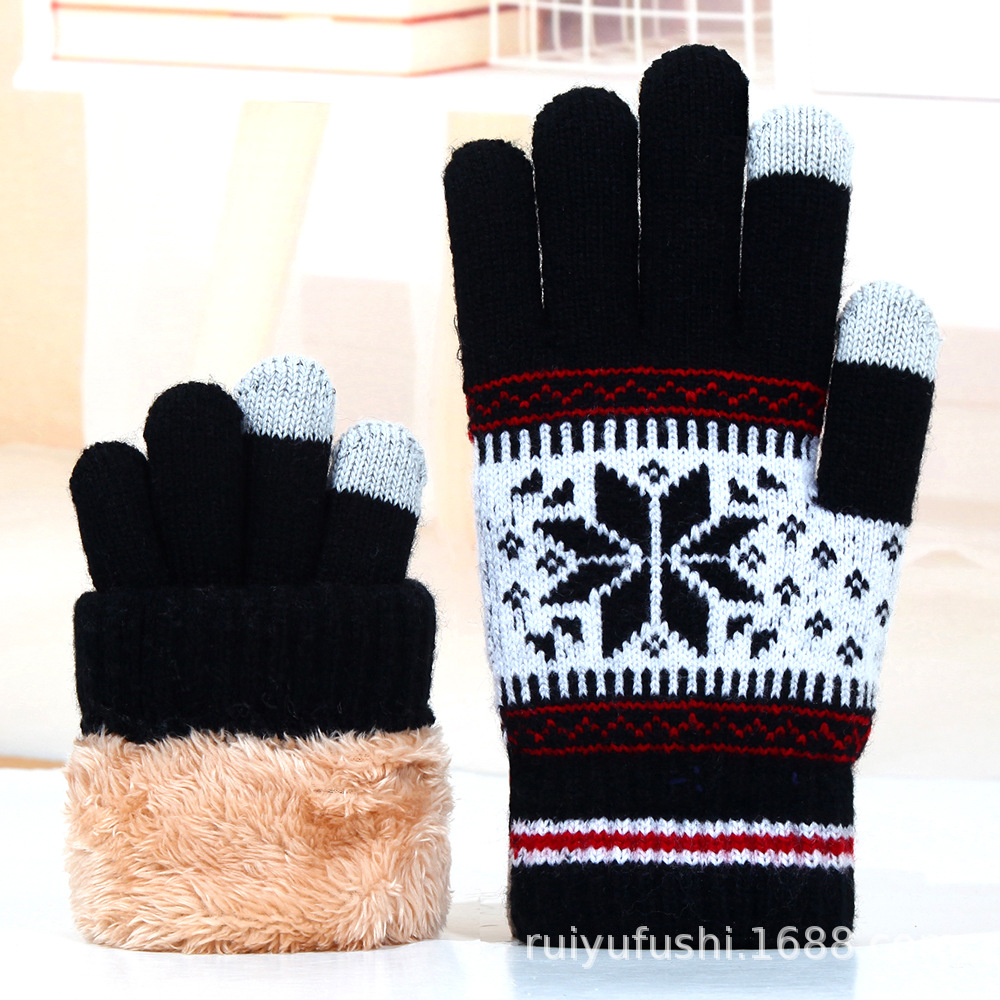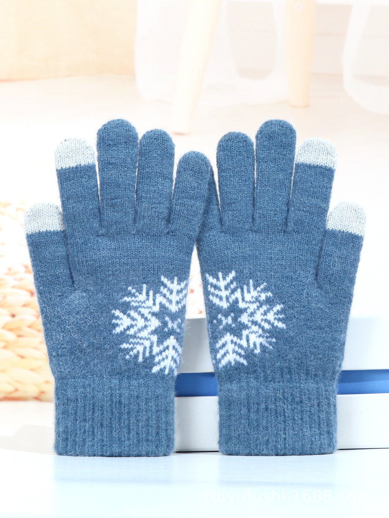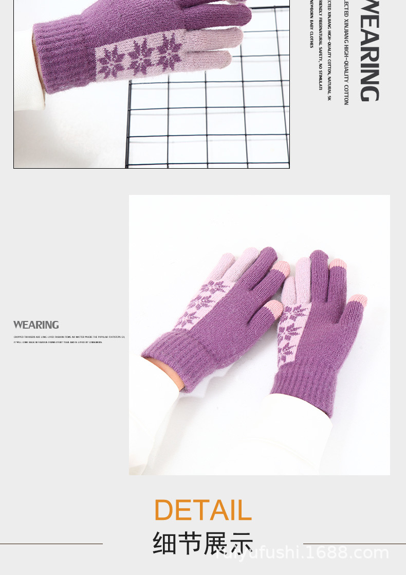 도매 기모 두꺼운 여성용 터치스크린 장갑 다섯 손가락 눈꽃 무늬 보온 니트 장갑 모직 니트 재고 정리스토어 가기