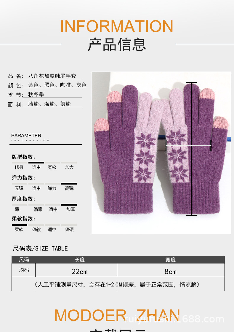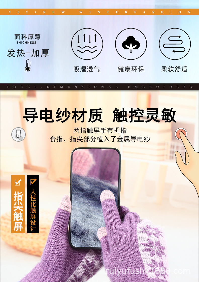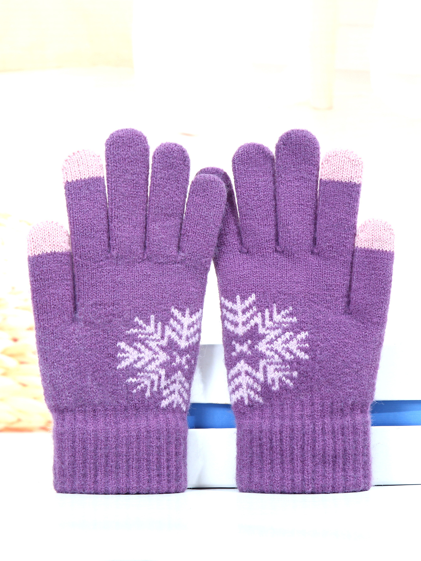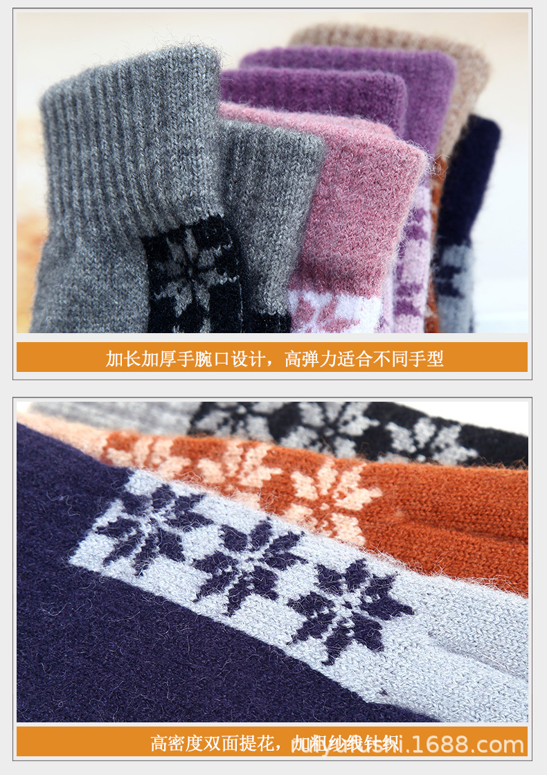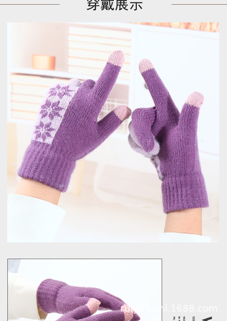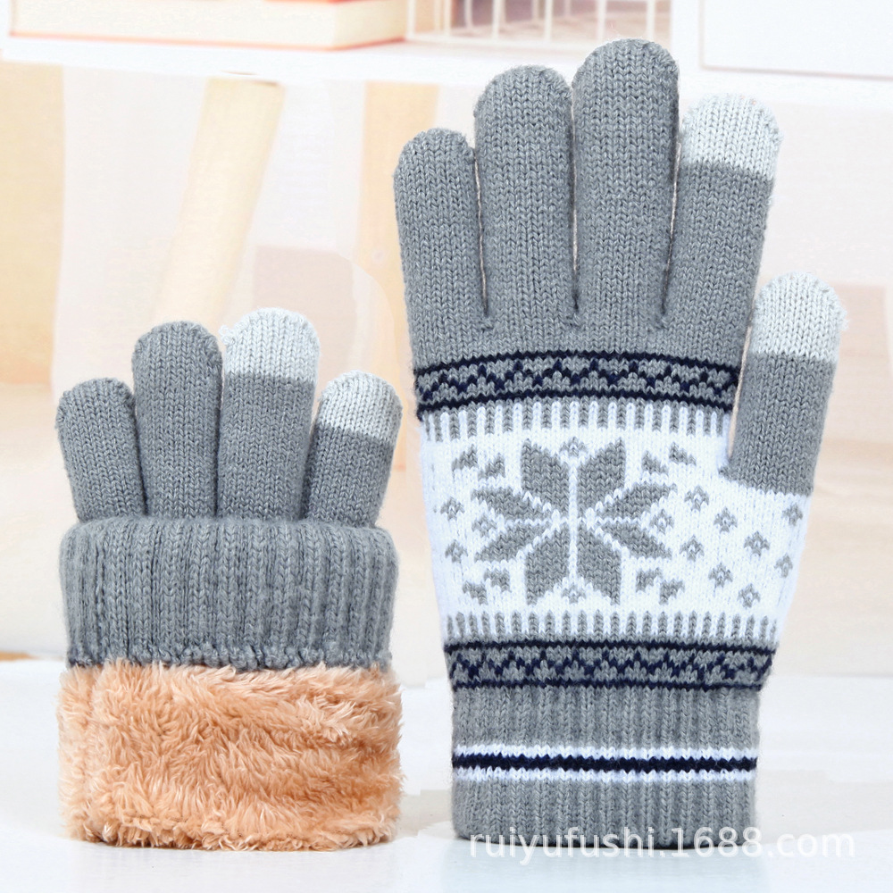 도매 기모 두꺼운 여성용 터치스크린 장갑 다섯 손가락 눈꽃 무늬 보온 니트 장갑 모직 니트 재고 정리스토어 가기