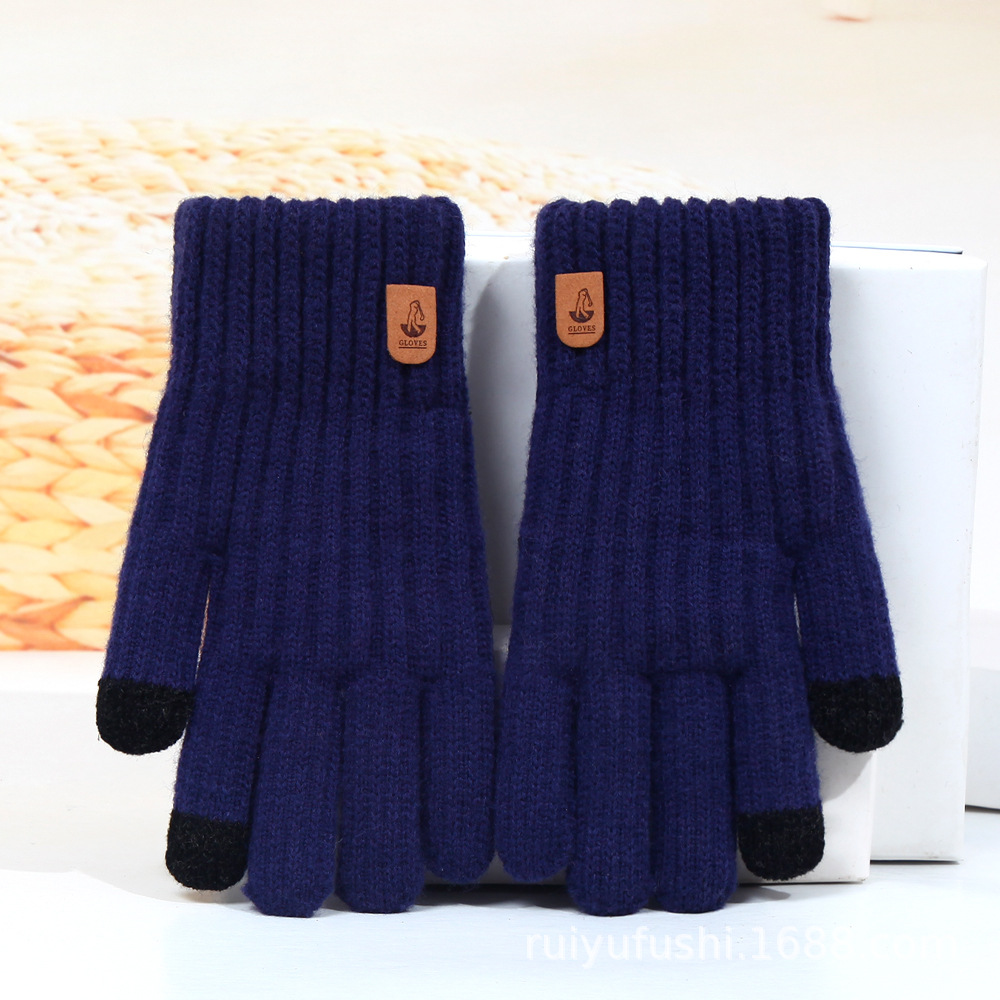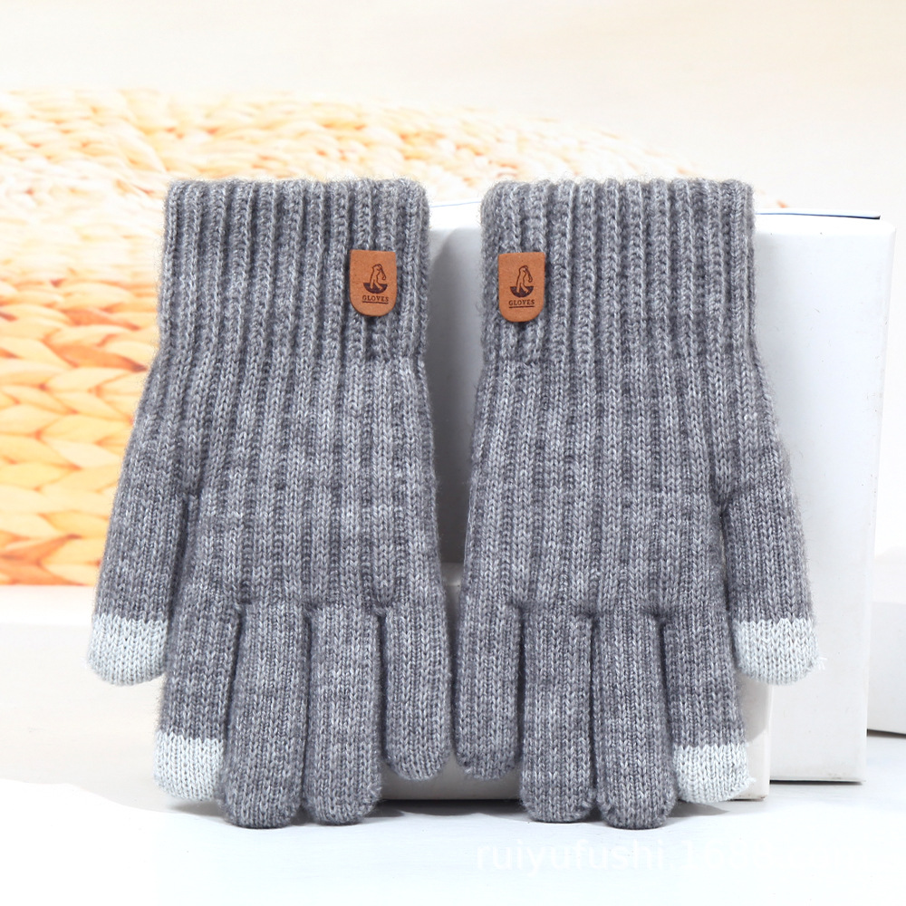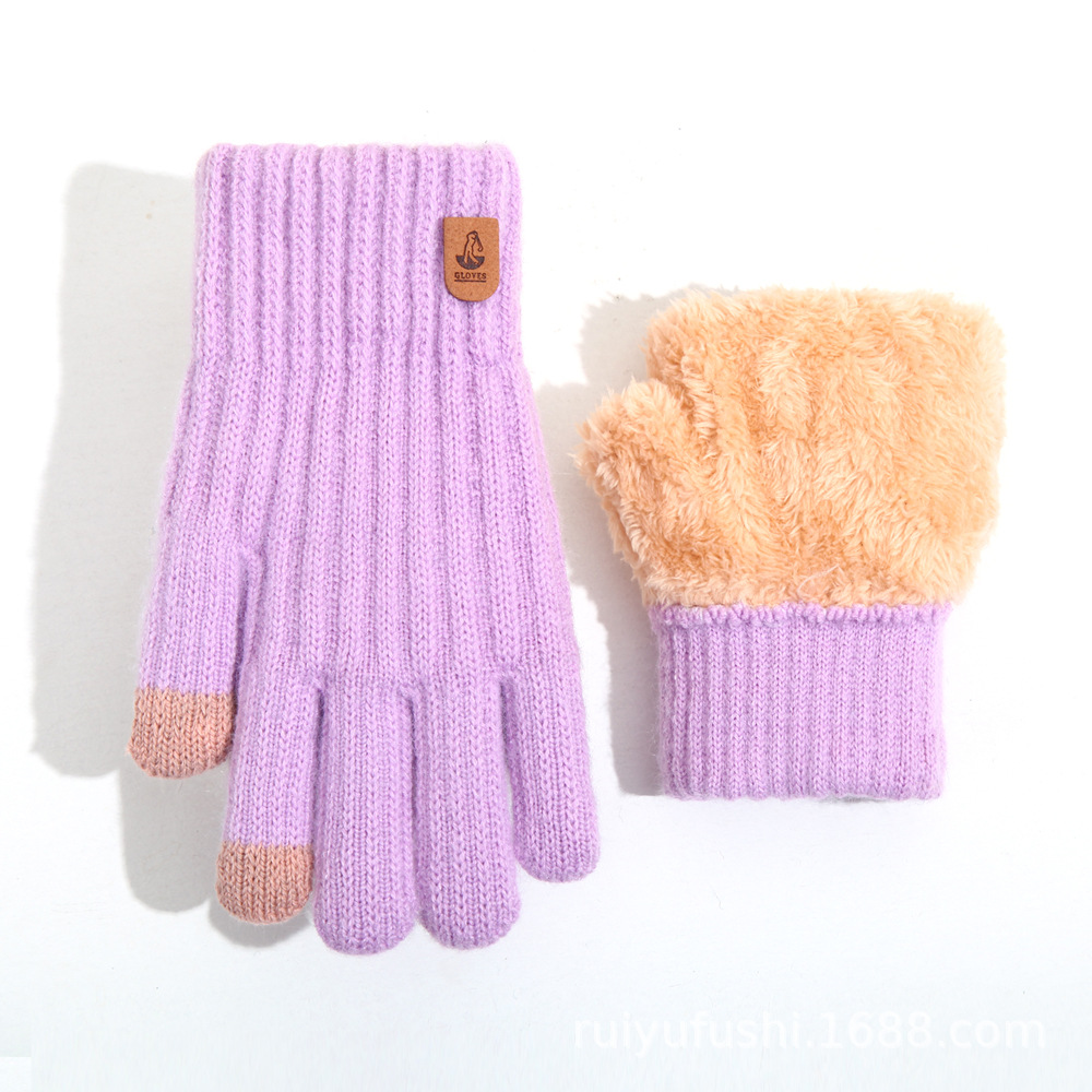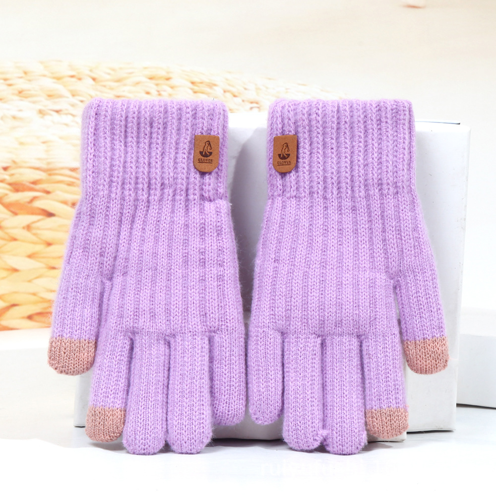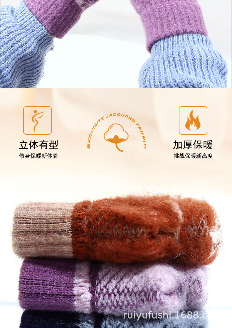 도매 기모 두꺼운 여성용 터치스크린 장갑 다섯 손가락 눈꽃 무늬 보온 니트 장갑 모직 니트 재고 정리스토어 가기