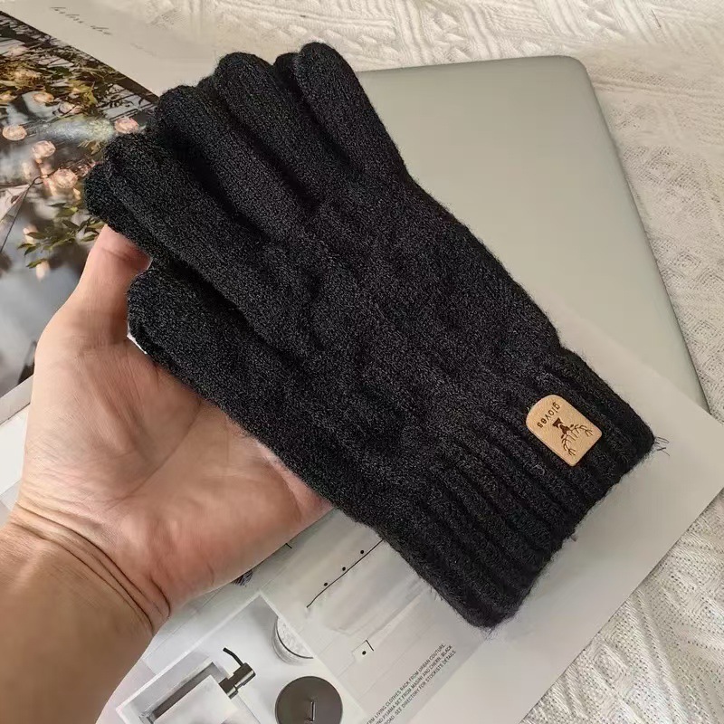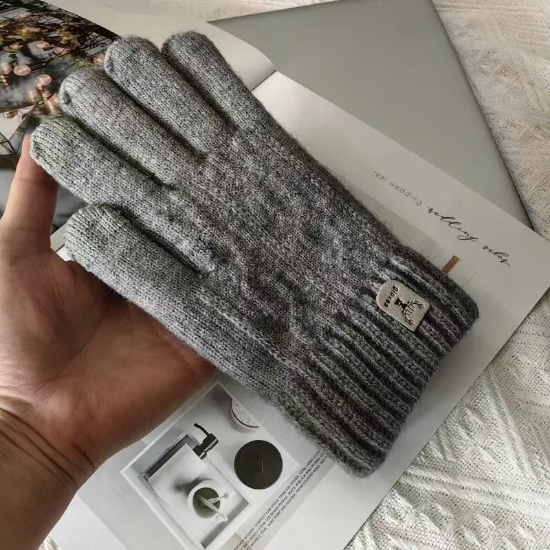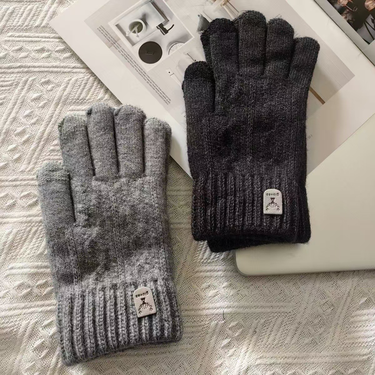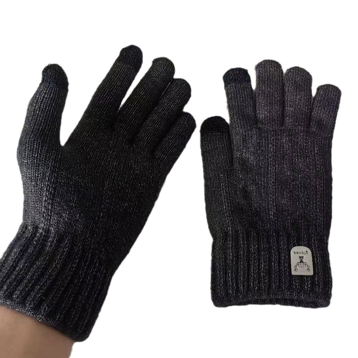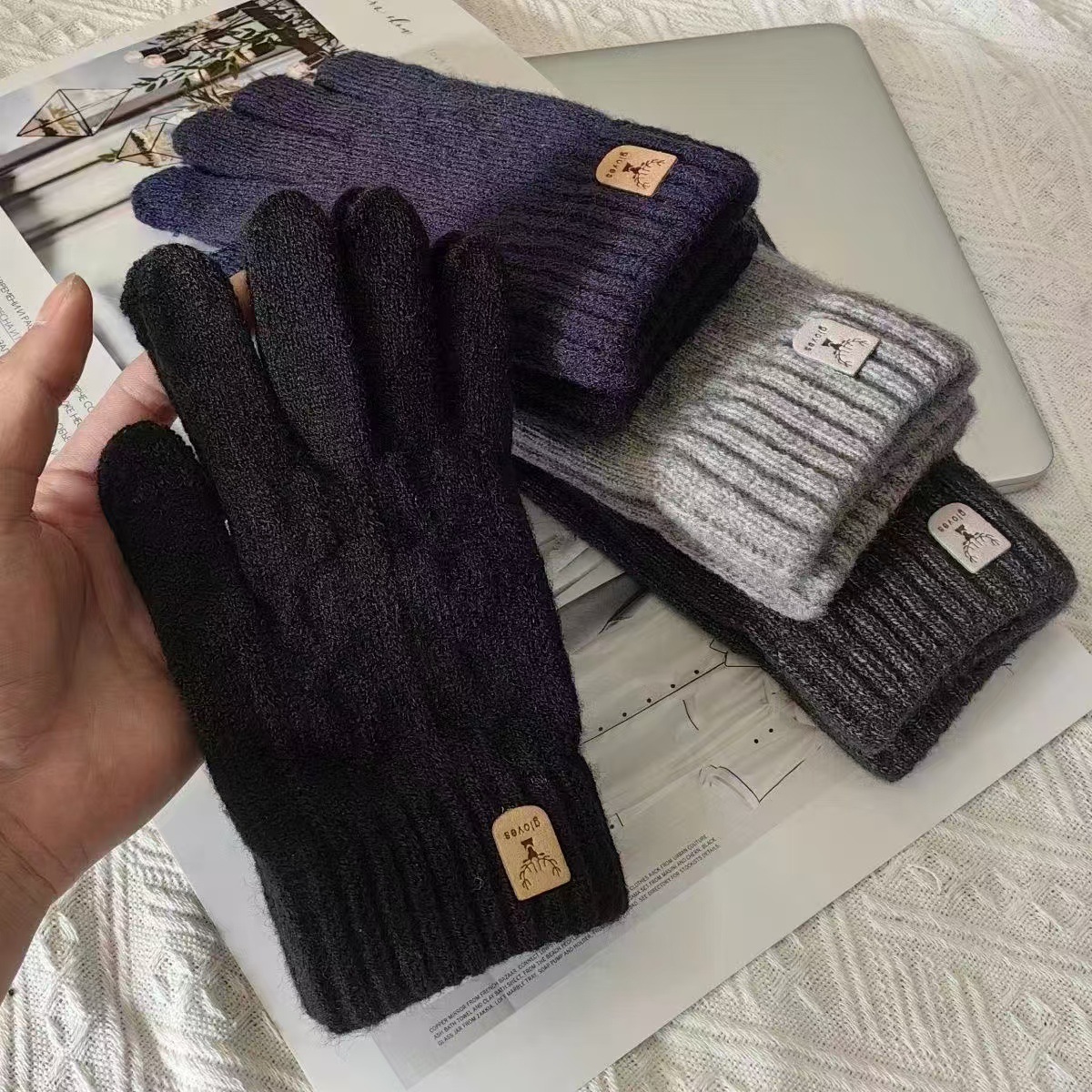 남자 장갑 겨울 남자 따뜻한 기모 두꺼운 겨울 방풍 터치 스크린 5 손가락 니트 사이클링 울 야외