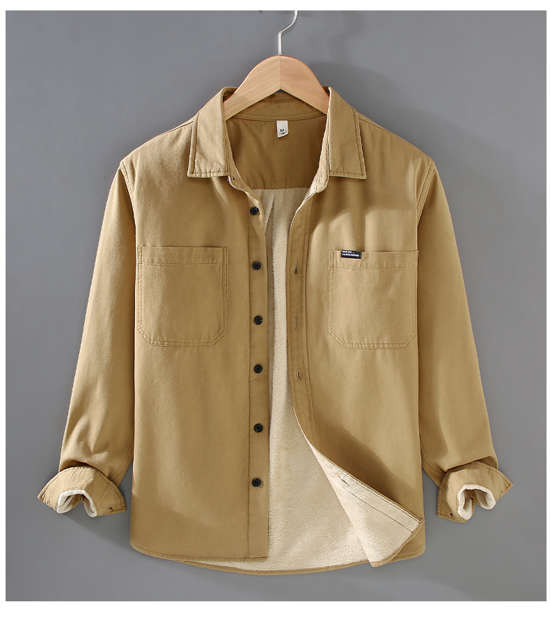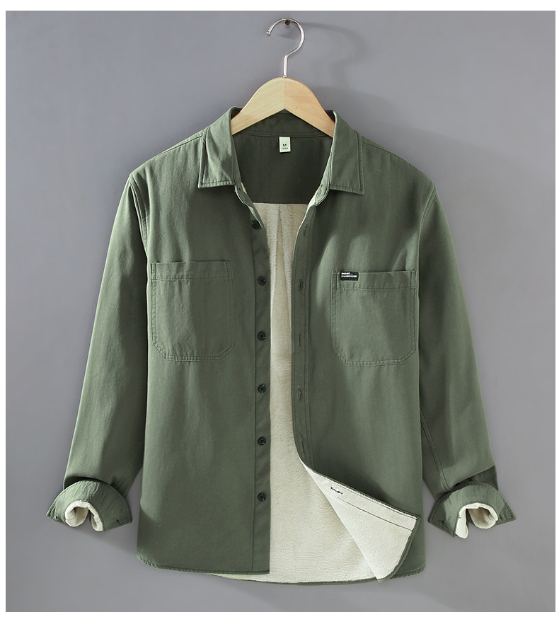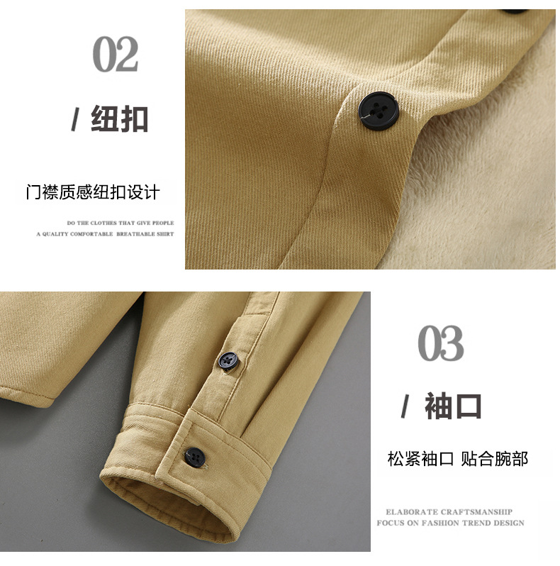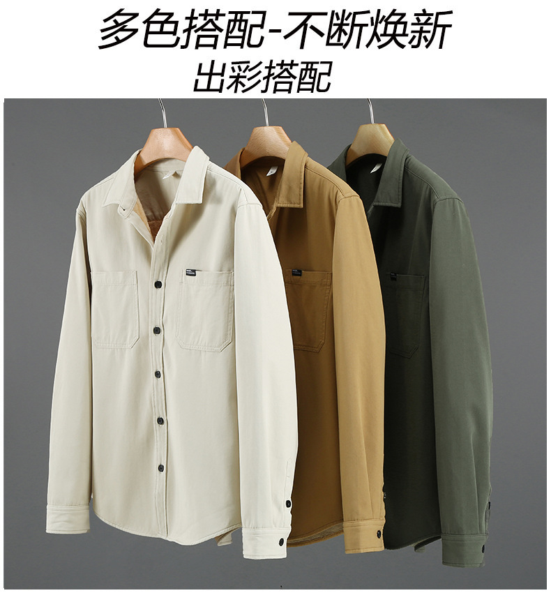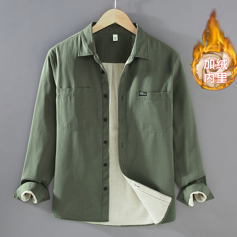 2383 기모 두꺼운 면 긴팔 작업 셔츠 남자의 유행 캐주얼 올 매치 셔츠 따뜻한 탑