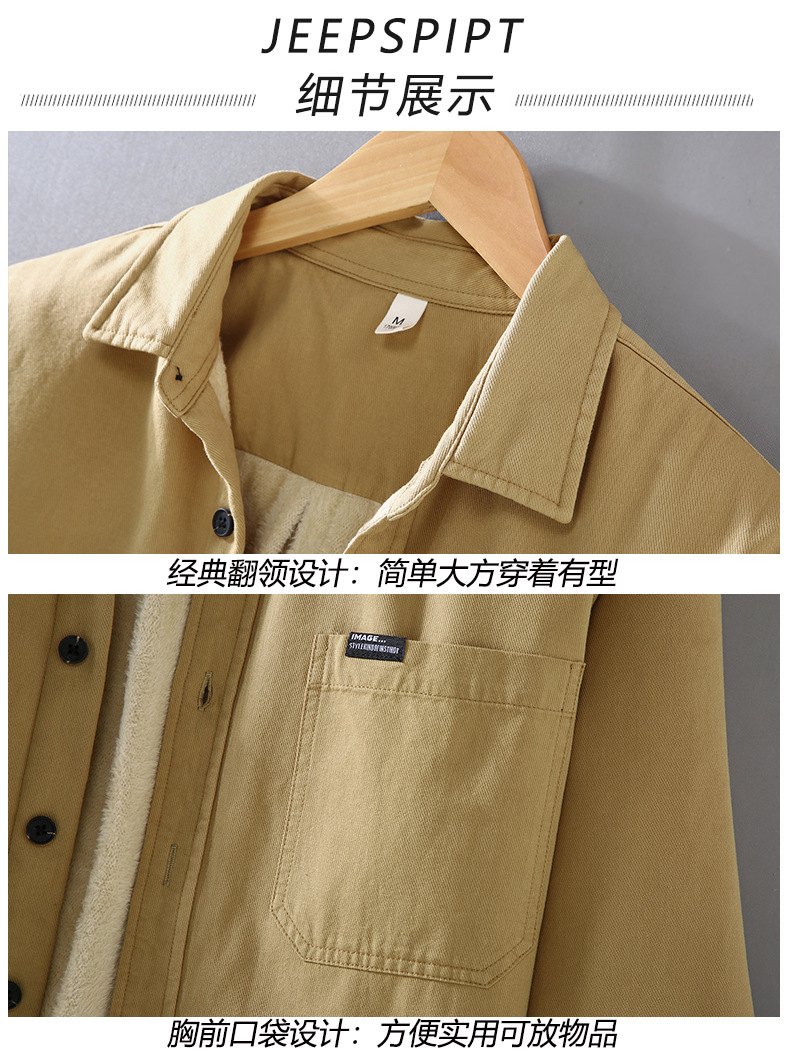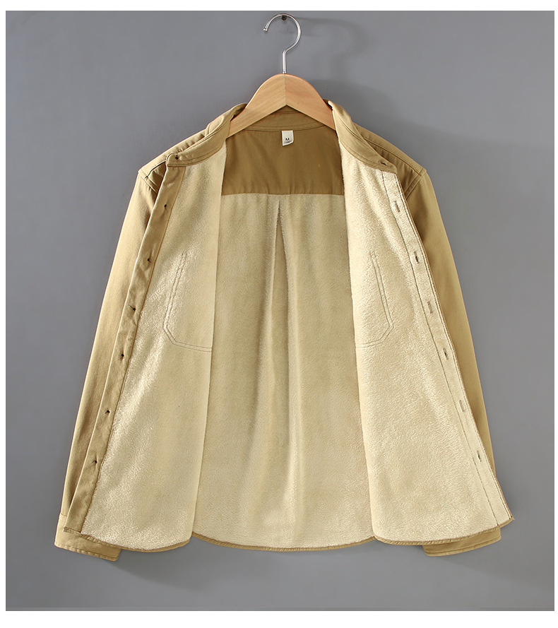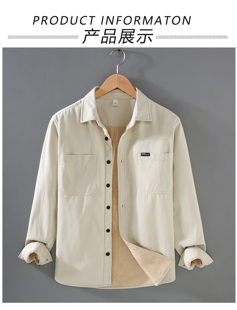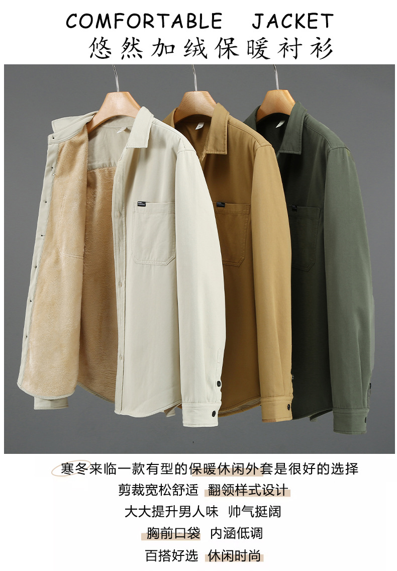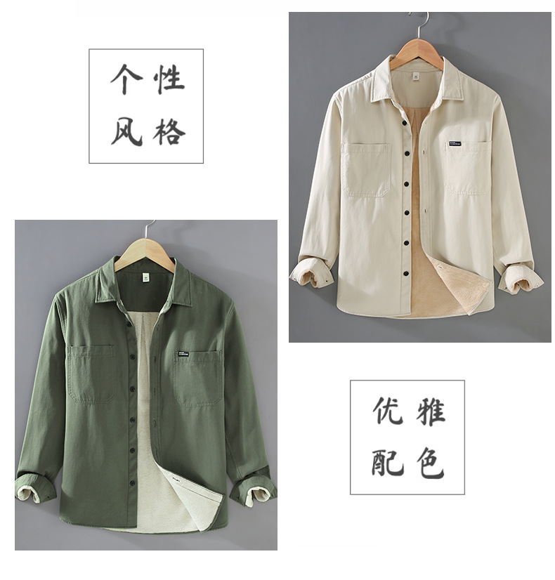 2383 기모 두꺼운 면 긴팔 작업 셔츠 남자의 유행 캐주얼 올 매치 셔츠 따뜻한 탑