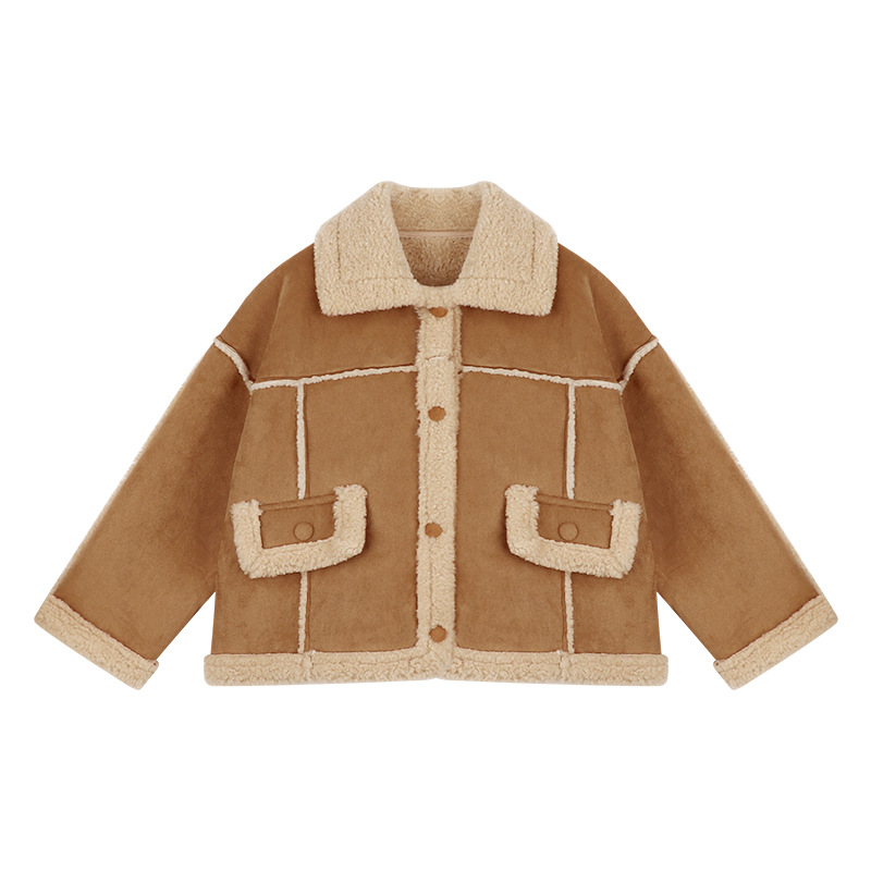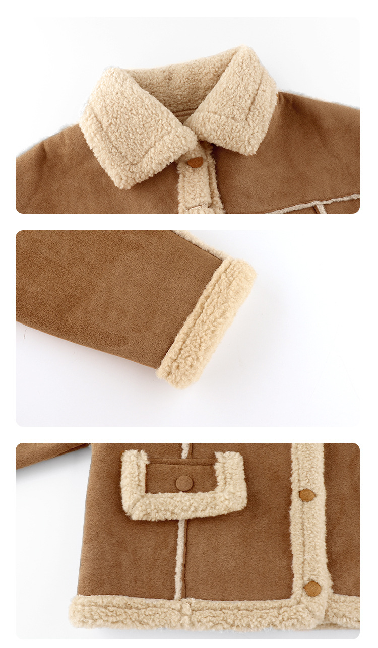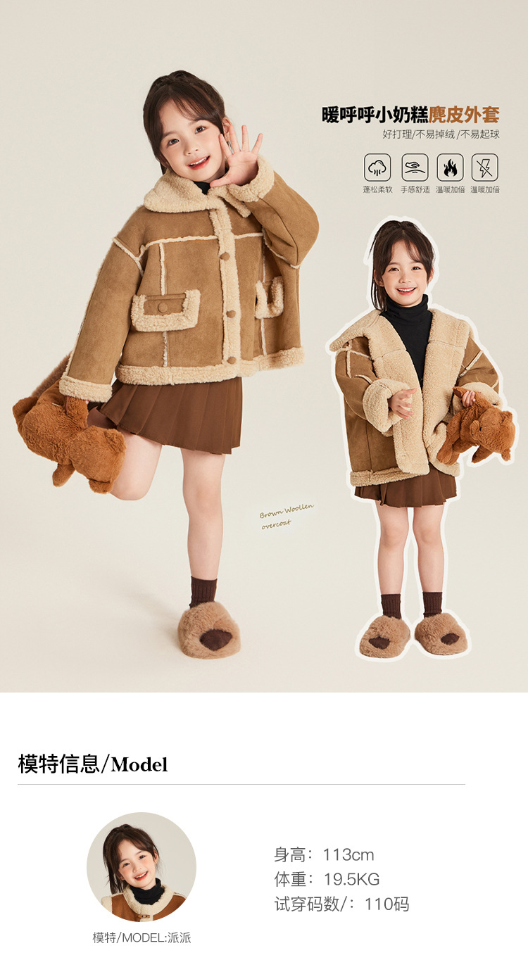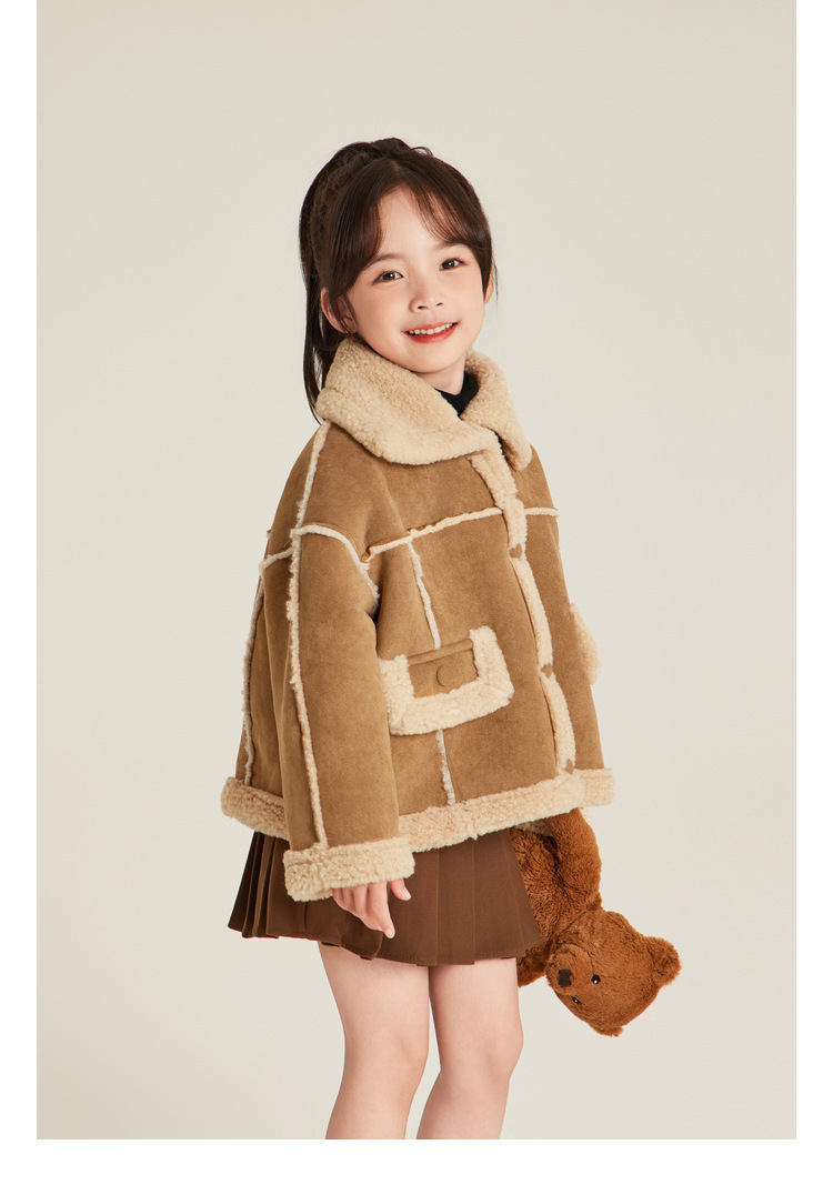 Amybaby Girls 'Top Winter 2024 새로운 어린이 복고풍 양모 따뜻한 모피 원피스 재킷스토어 가기
