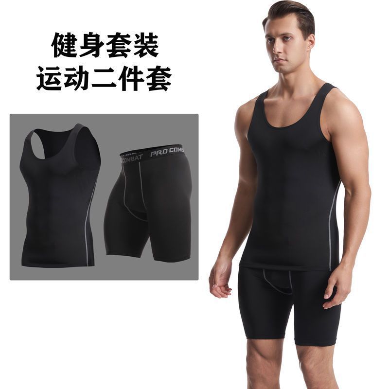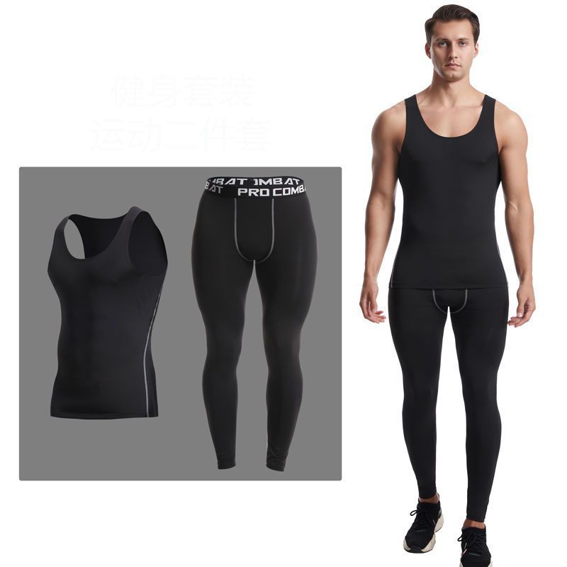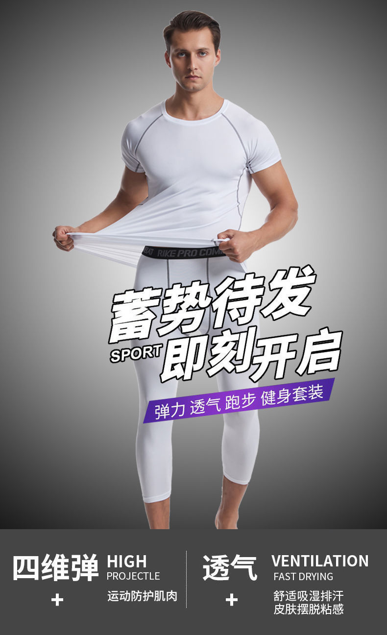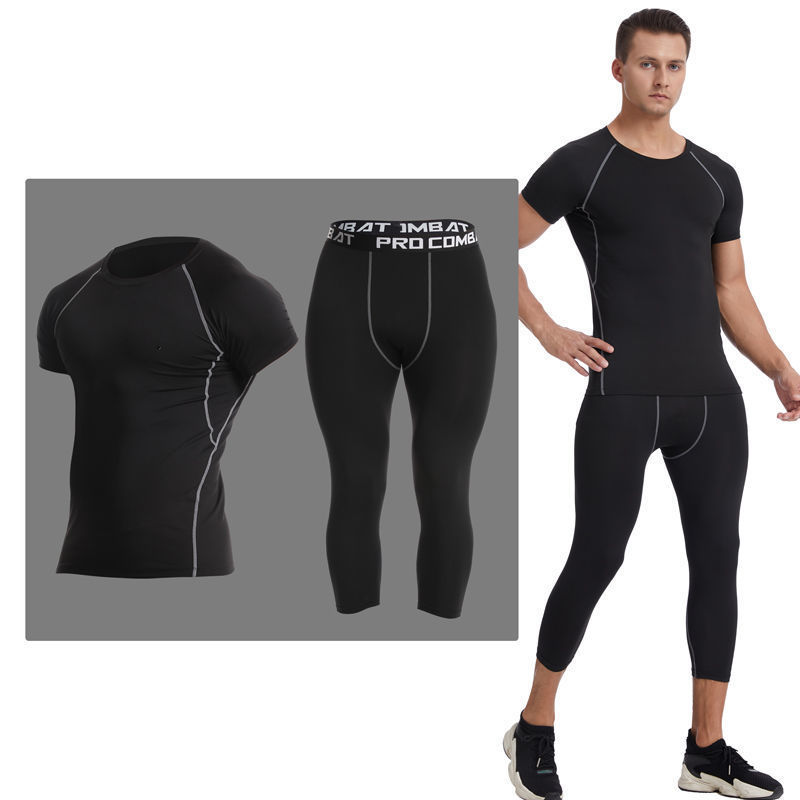 농구 달리기 스포츠 타이츠 남자 훈련 조끼 높은 탄성 빠른 건조 긴 반팔 피트니스 보텀핑 자른 바지 세트스토어 가기