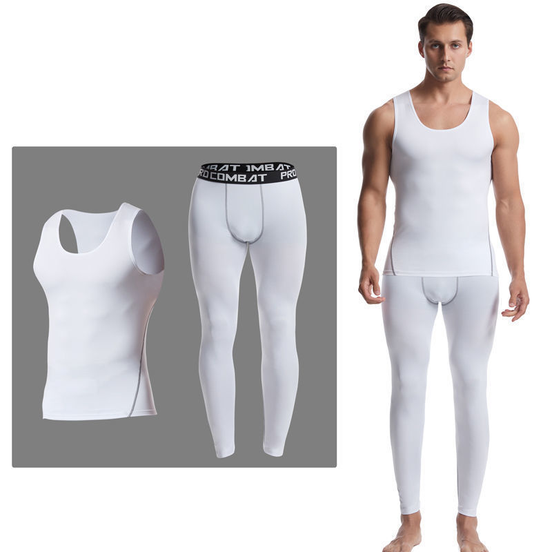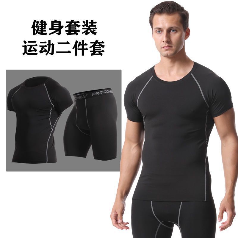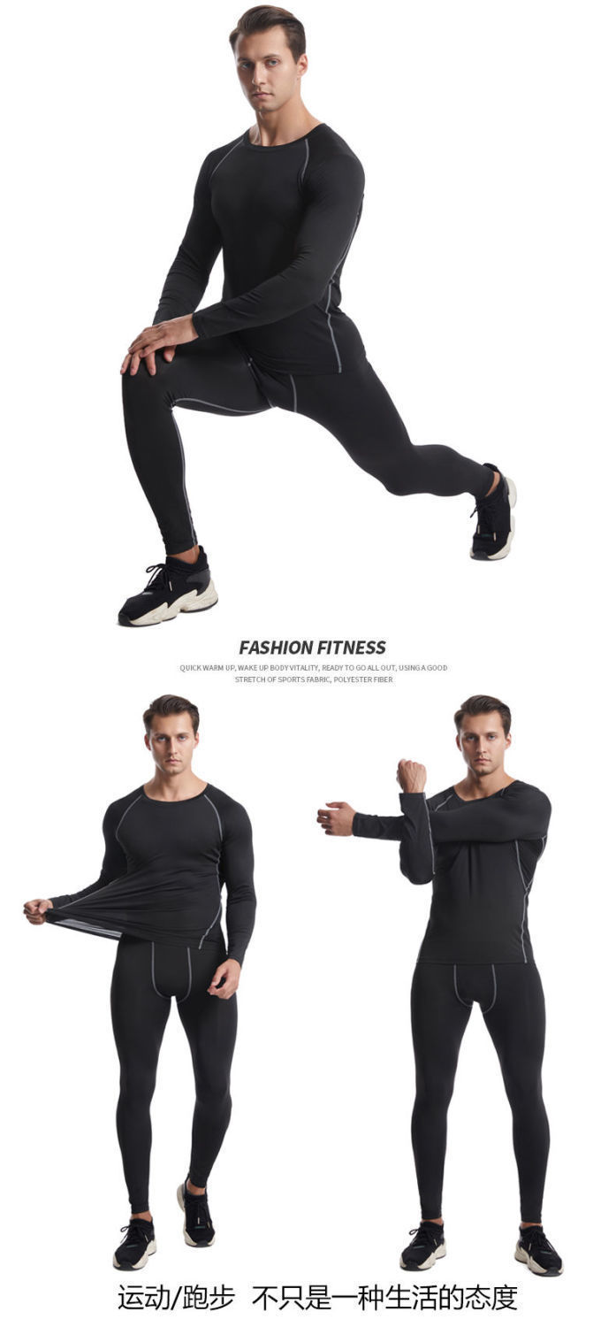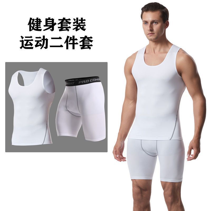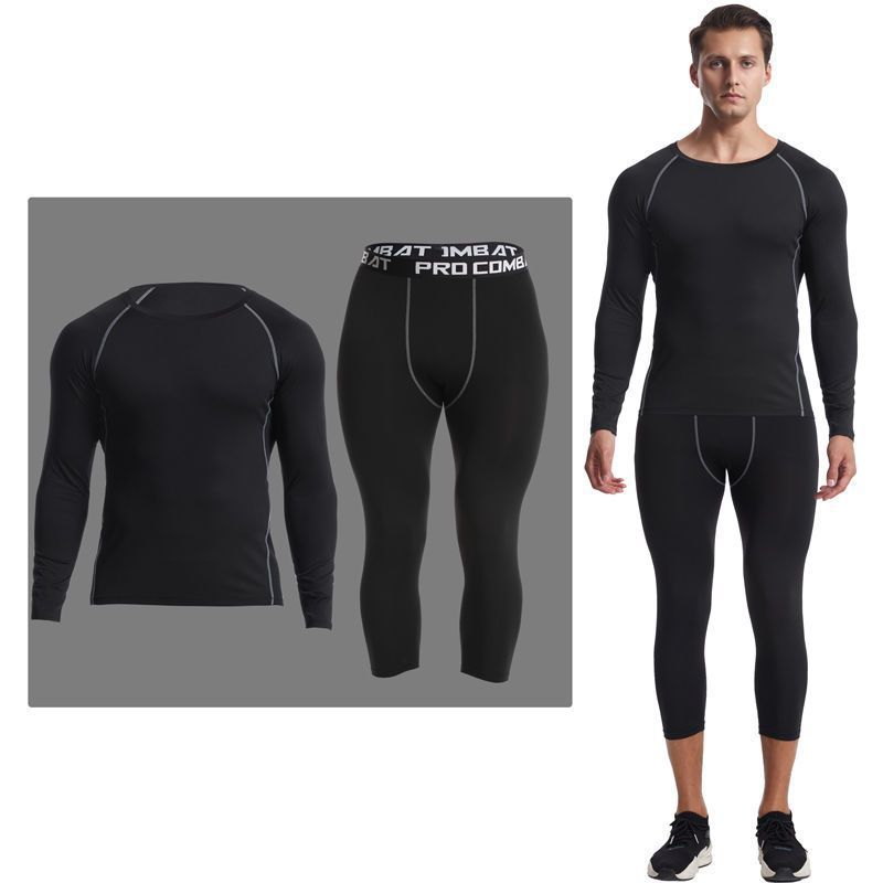 농구 달리기 스포츠 타이츠 남자 훈련 조끼 높은 탄성 빠른 건조 긴 반팔 피트니스 보텀핑 자른 바지 세트스토어 가기