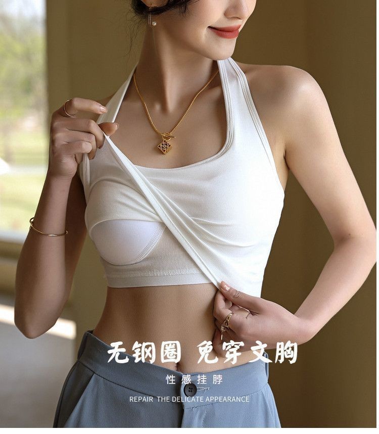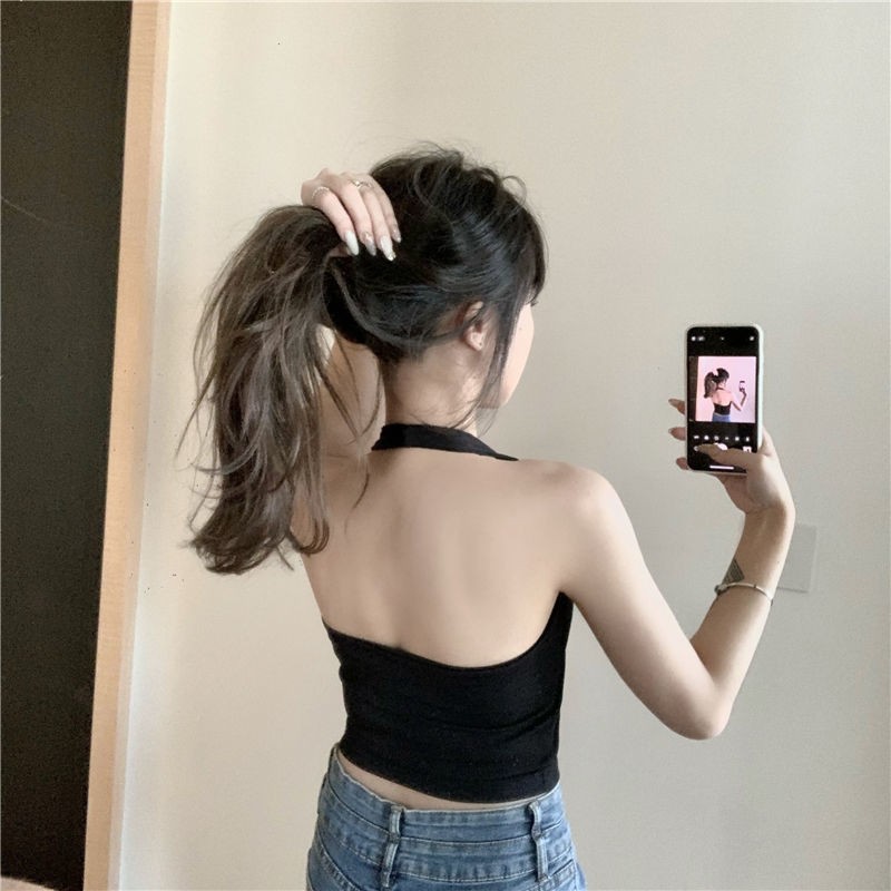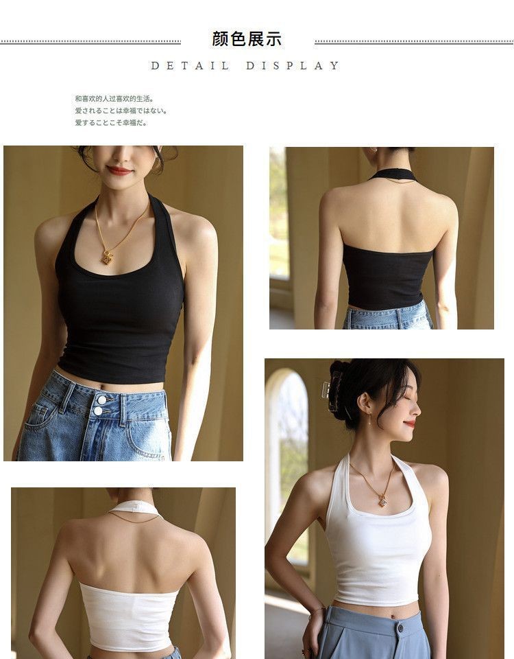 목 슬링 작은 조끼 여성 내부 탑 외부 섹시한 아름다운 백 블랙 화이트와 가슴 패드 튜브 탑 짧은 여름 착용스토어 가기