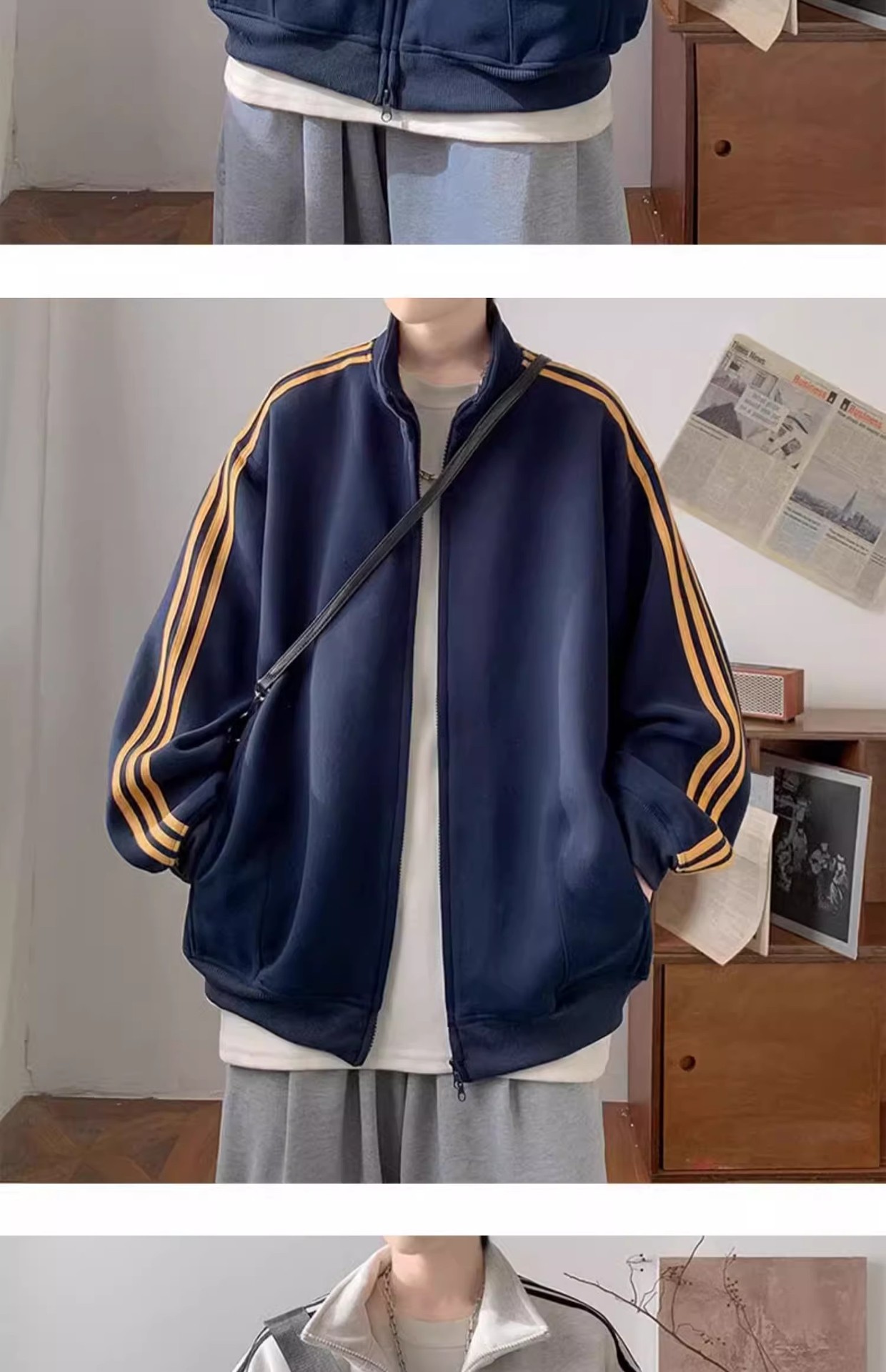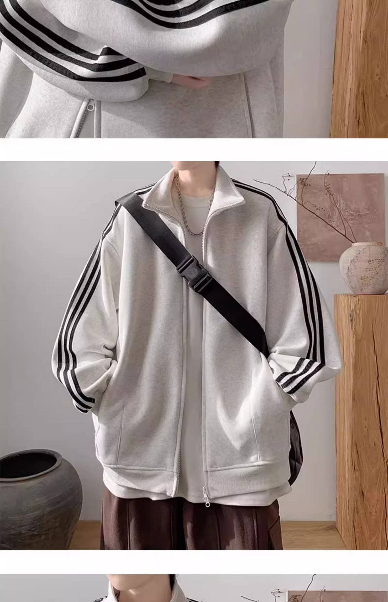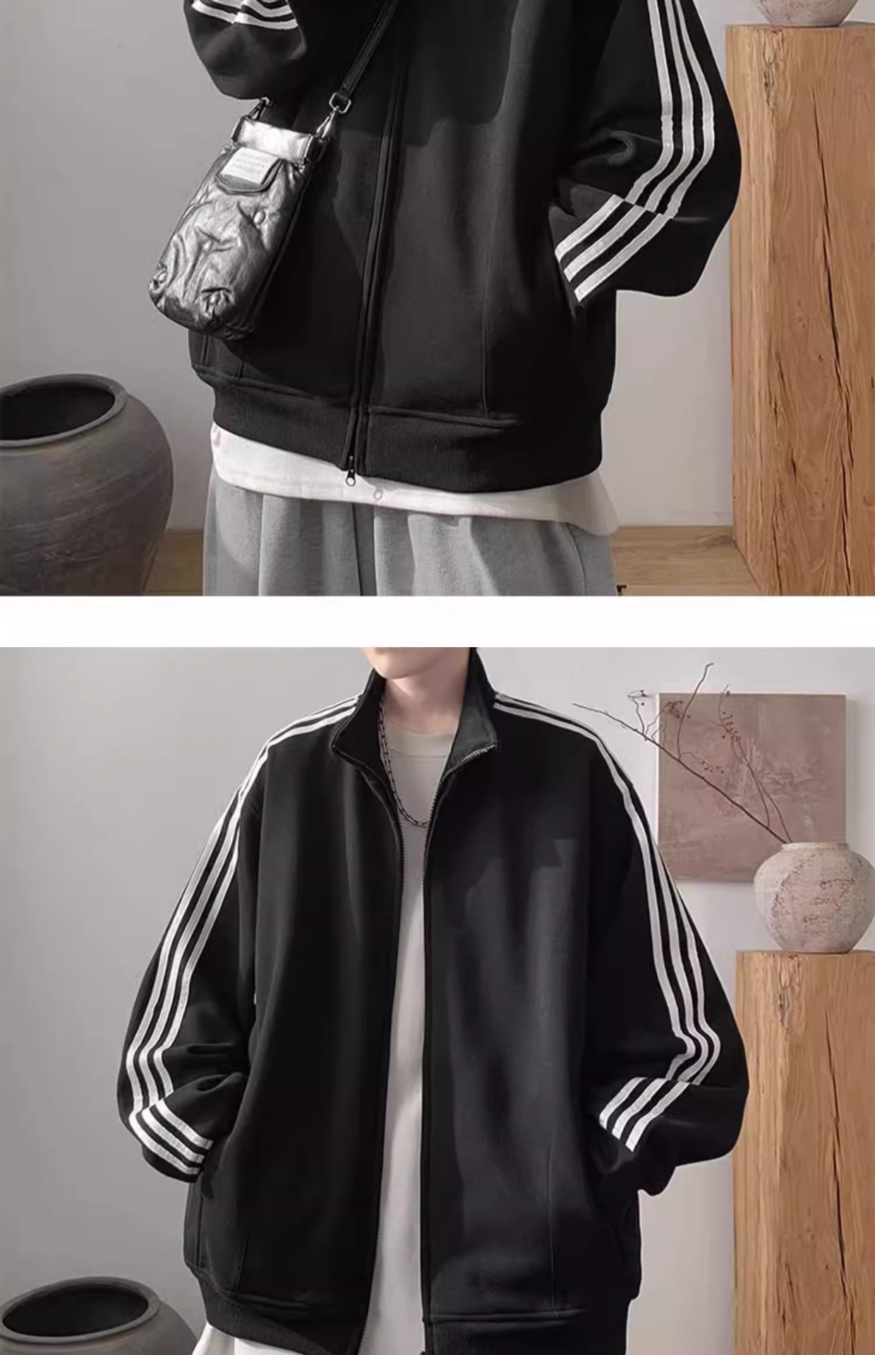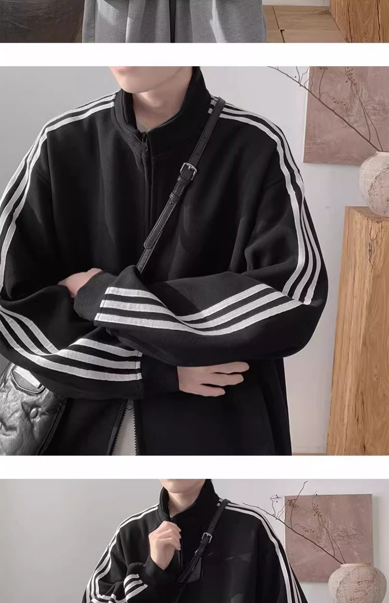 블랙 3 바 스포츠 레트로 재킷 남자 가을 겨울 2024 새로운 미국 캐주얼 트렌디 브랜드 카디건 재킷스토어 가기