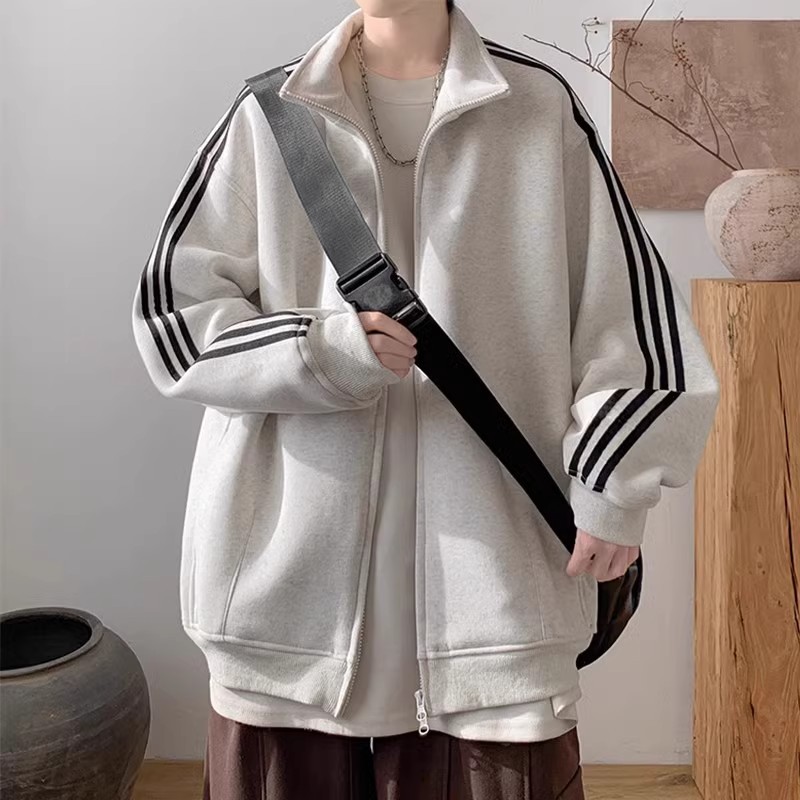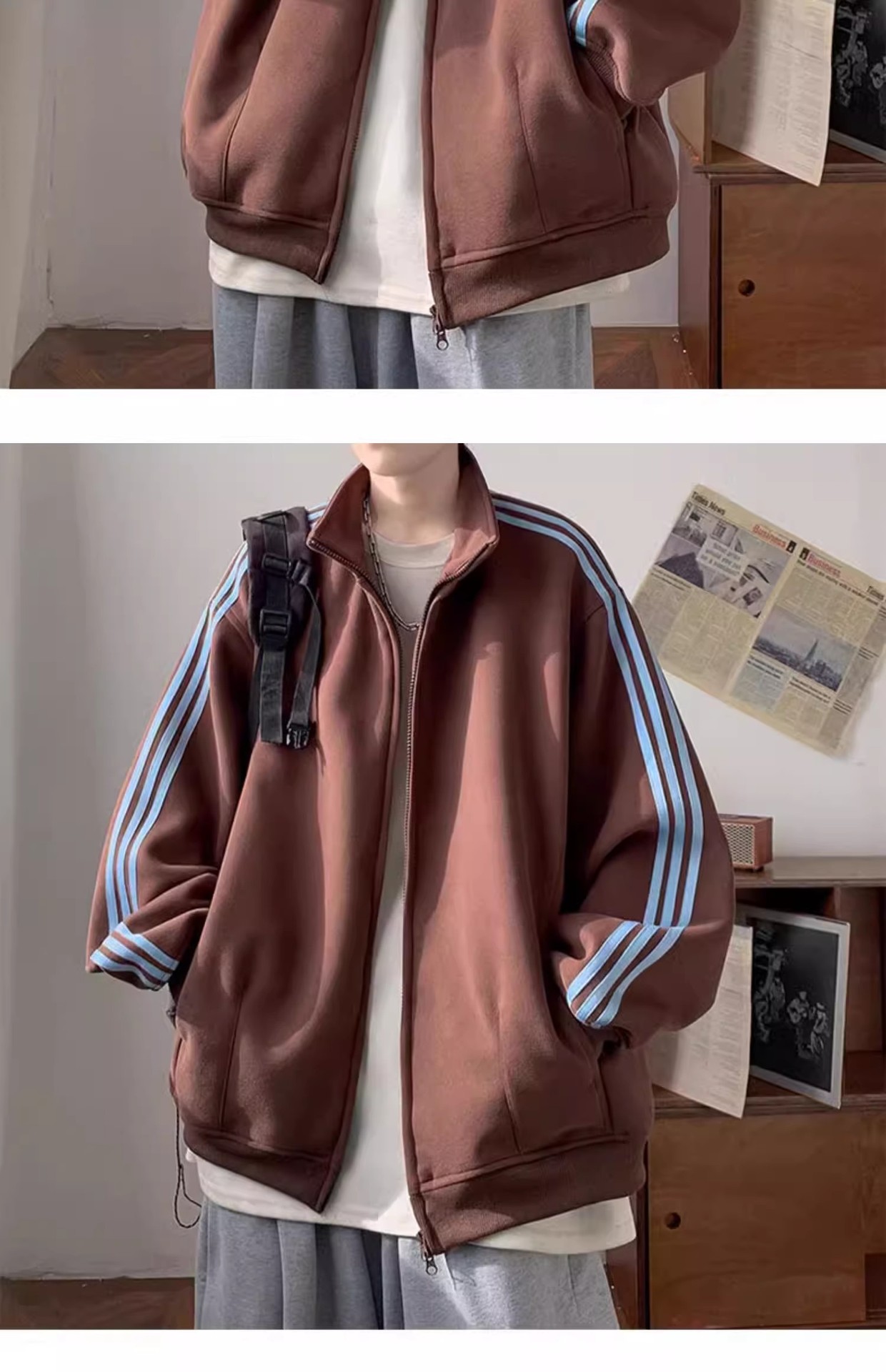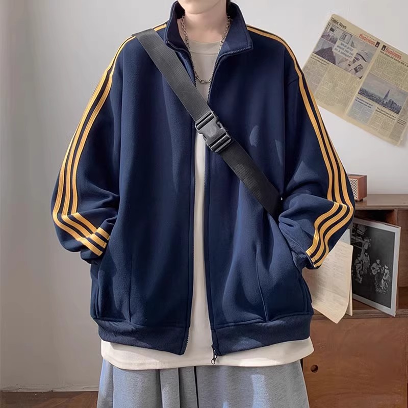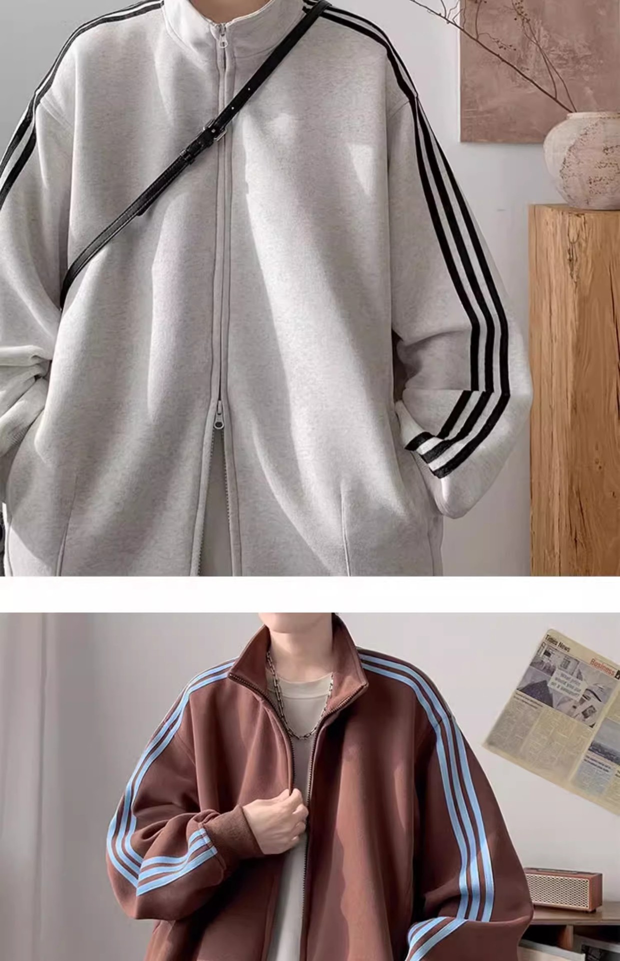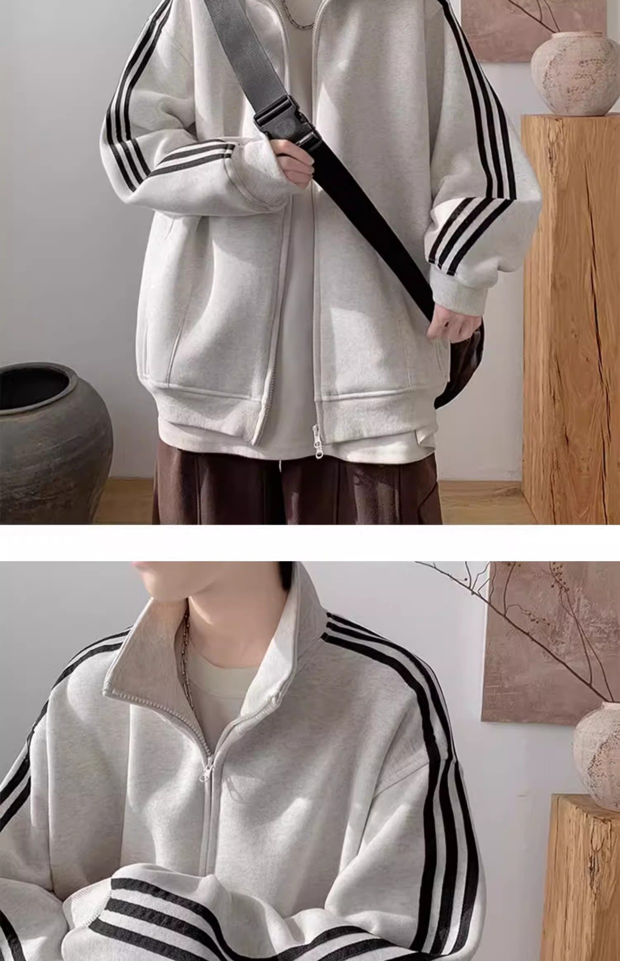 블랙 3 바 스포츠 레트로 재킷 남자 가을 겨울 2024 새로운 미국 캐주얼 트렌디 브랜드 카디건 재킷스토어 가기