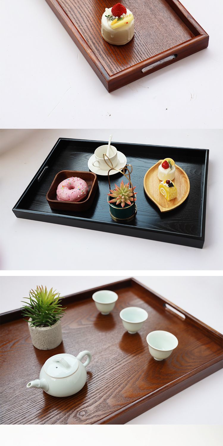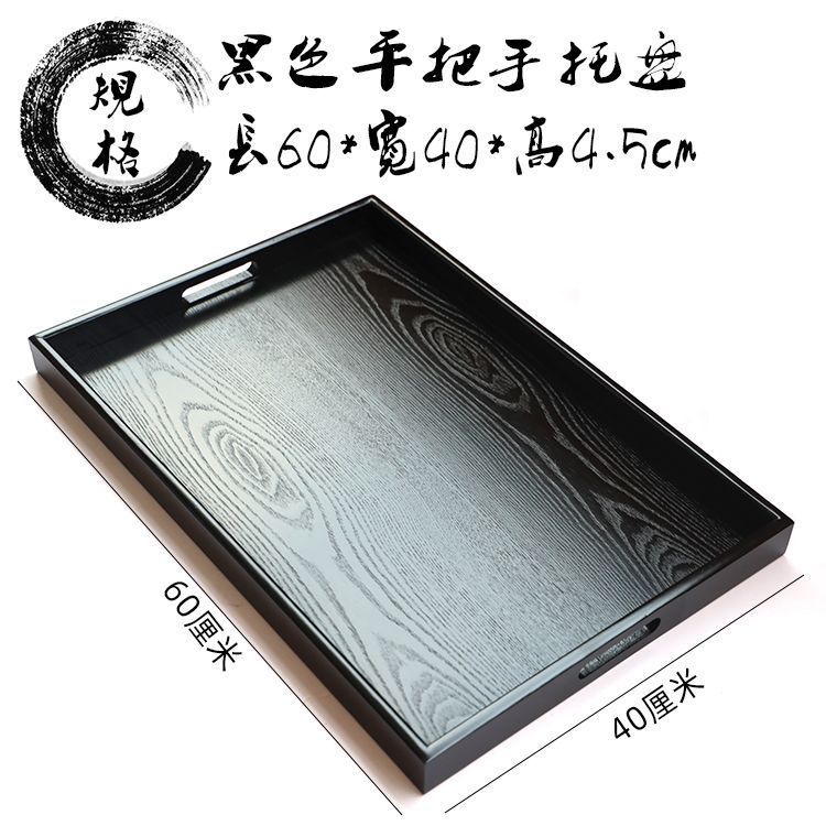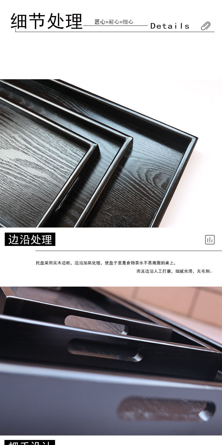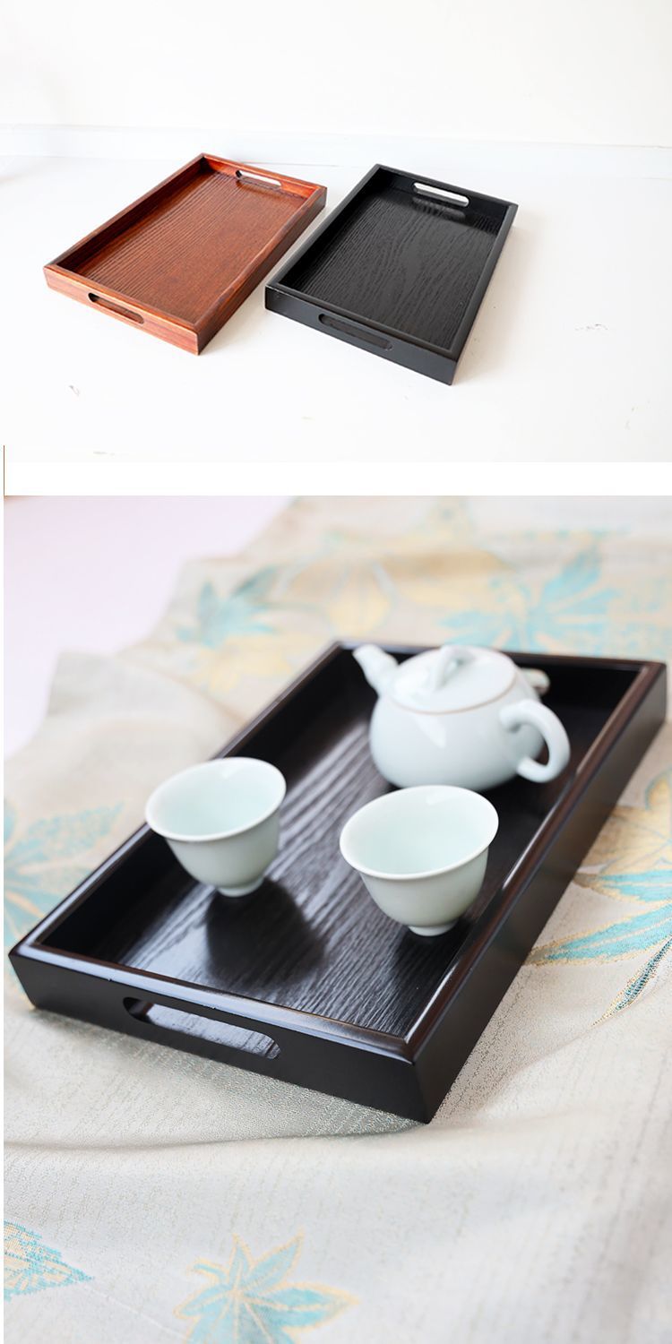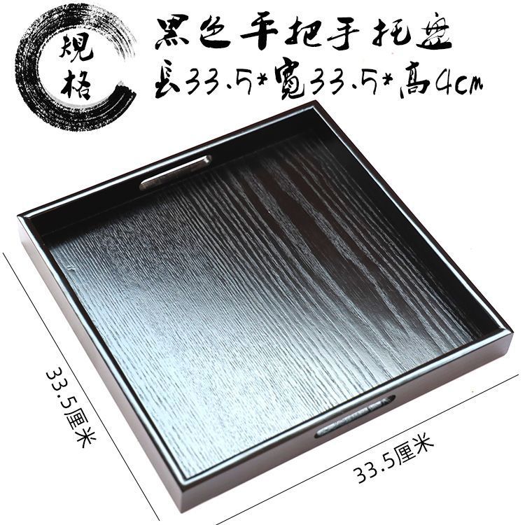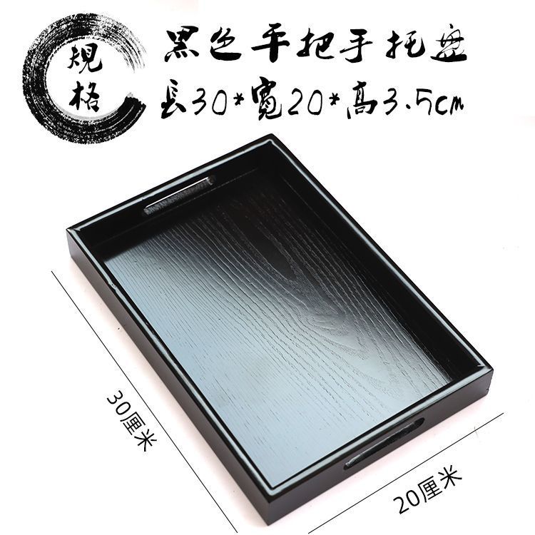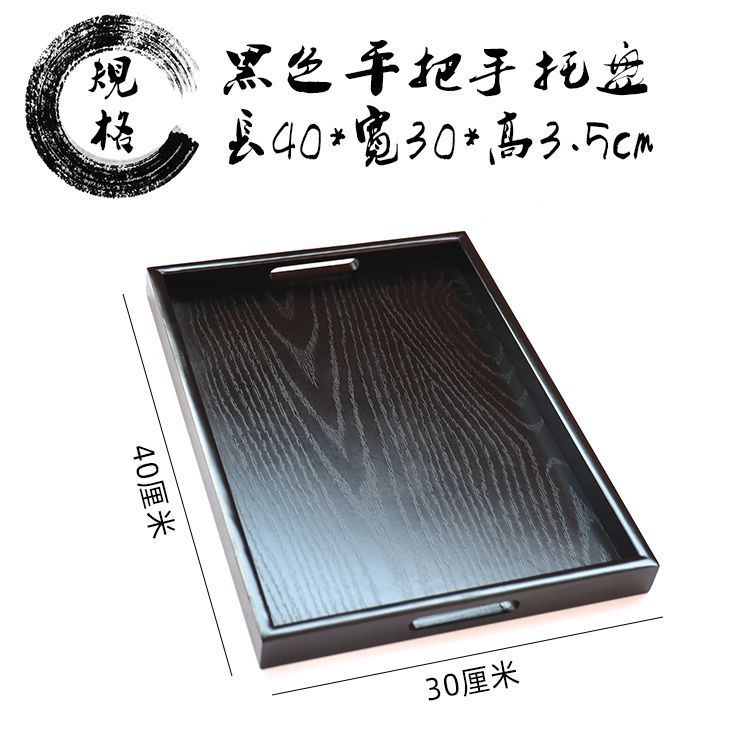 블랙 플랫 핸들 나무 트레이 솔리드 우드 플레이트 호텔 디너 트레이 티 하우스 티 트레이 가정용 티 트레이 다기능 트레이스토어 가기