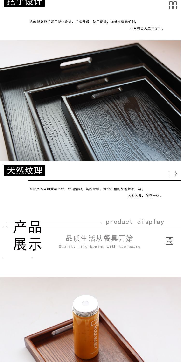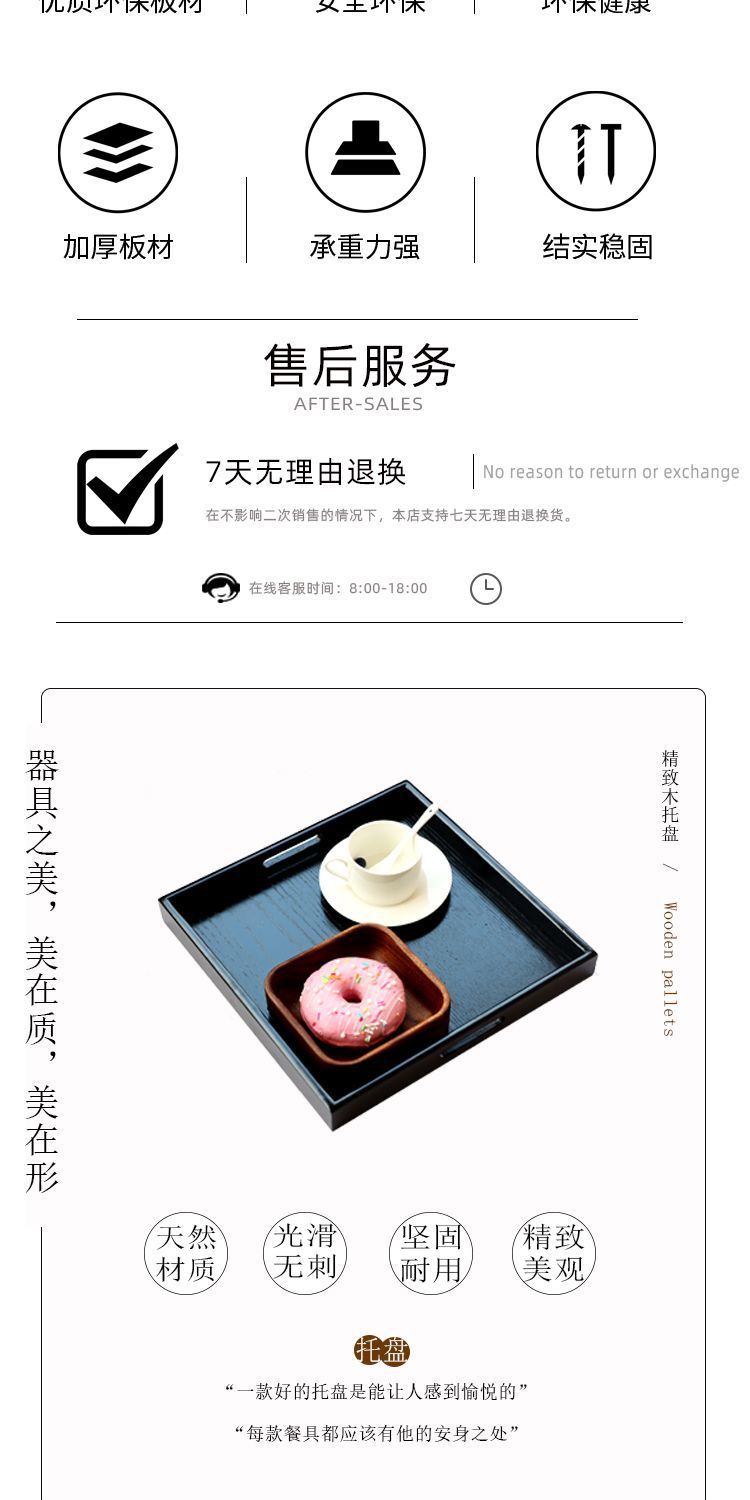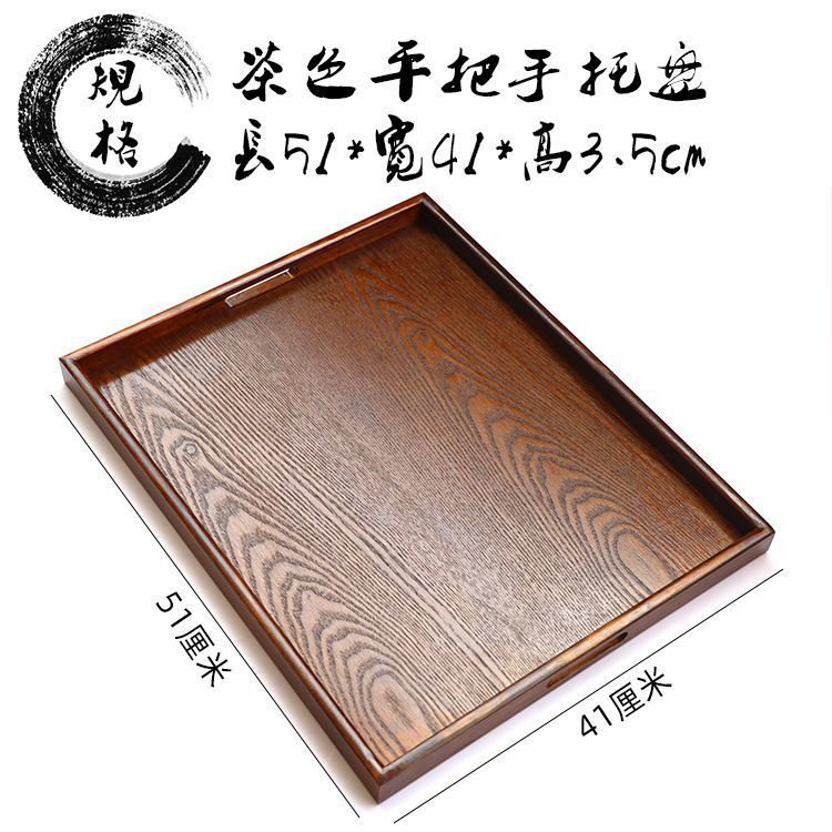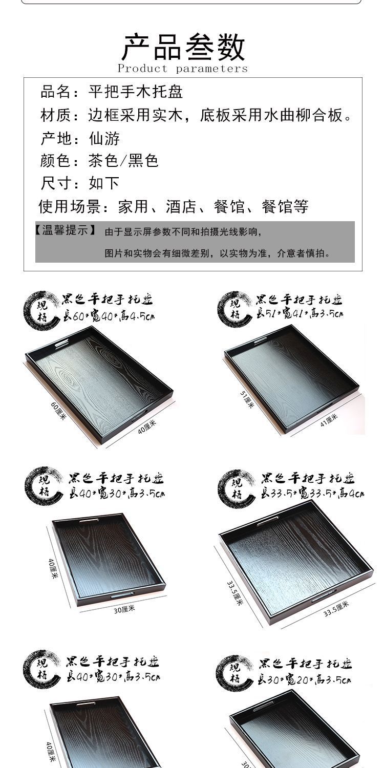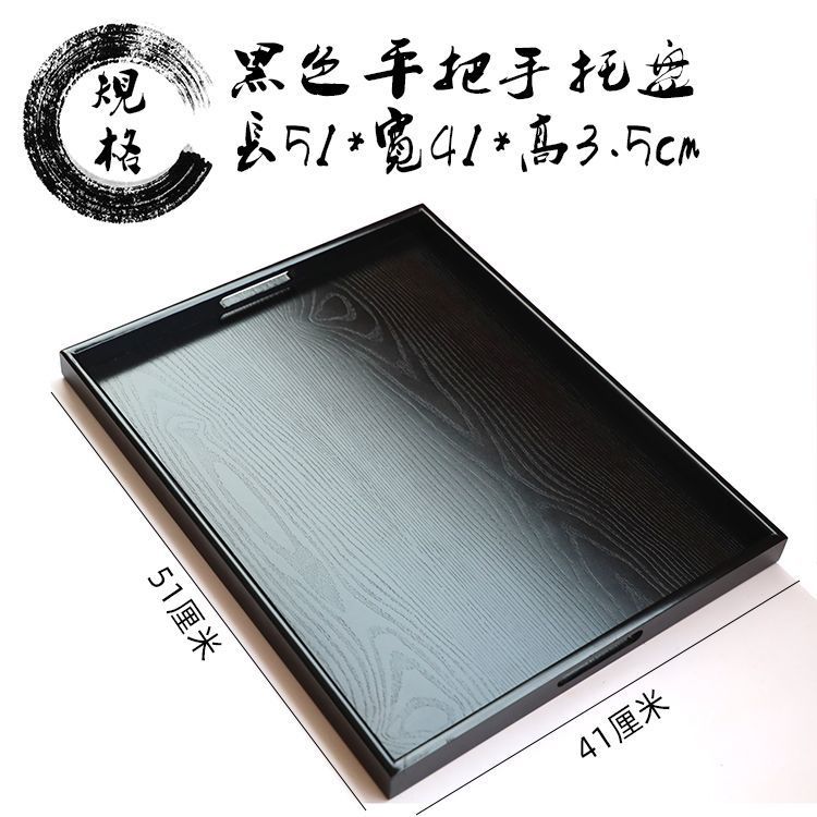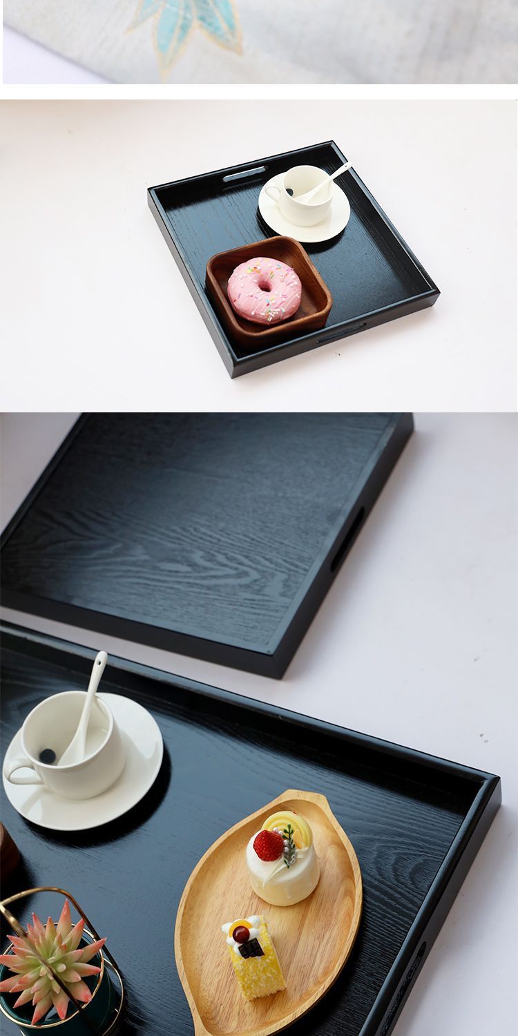 블랙 플랫 핸들 나무 트레이 솔리드 우드 플레이트 호텔 디너 트레이 티 하우스 티 트레이 가정용 티 트레이 다기능 트레이스토어 가기