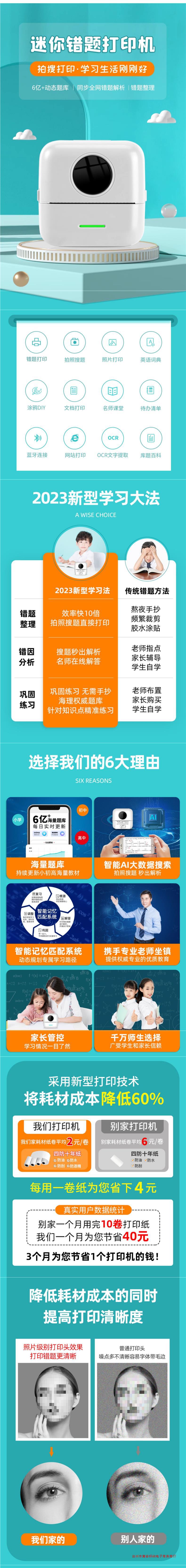 Schoolbag Lang Gao Qing 잘못된 문제 프린터 고등학교 초등학교 숙제 스캔 미니 작은 휴대용 무료 붙여 넣을 수 있습니다스토어 가기