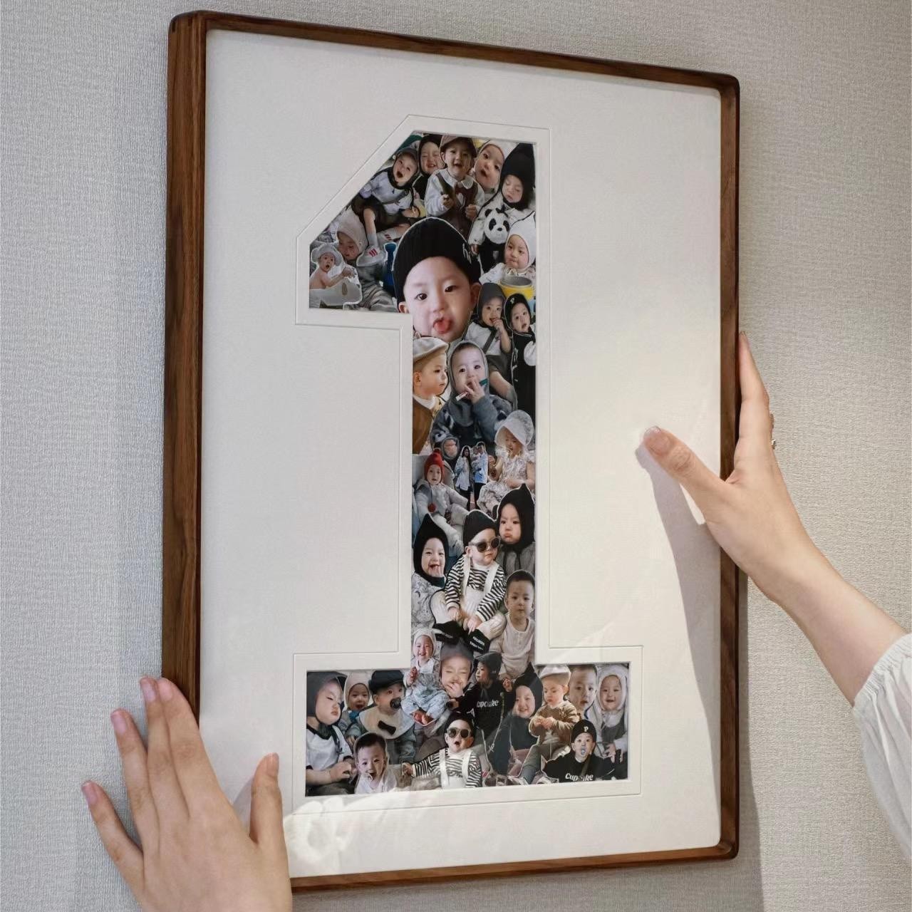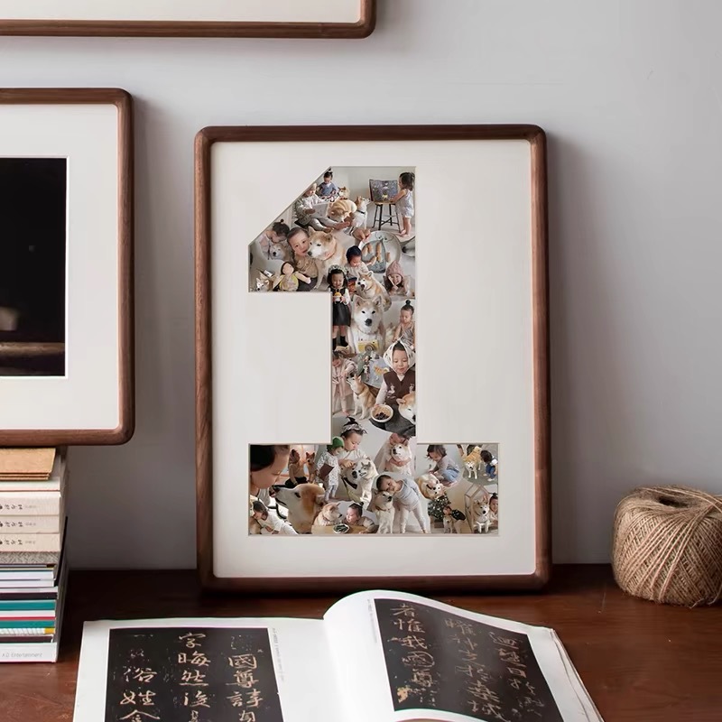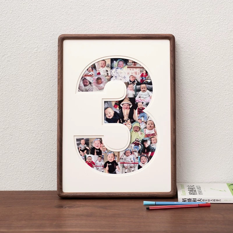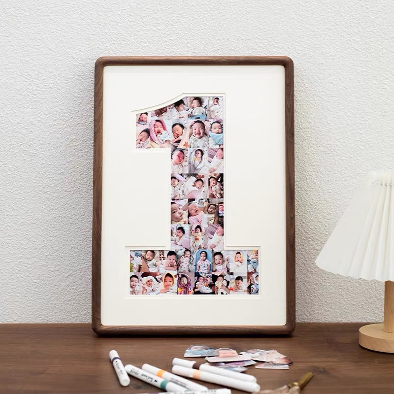 1 주년 기념 사진 프레임 1 년 된 아기 성장 기록 단단한 나무 그림 프레임 벽 교수형 테이블 커플 웨딩 앨범