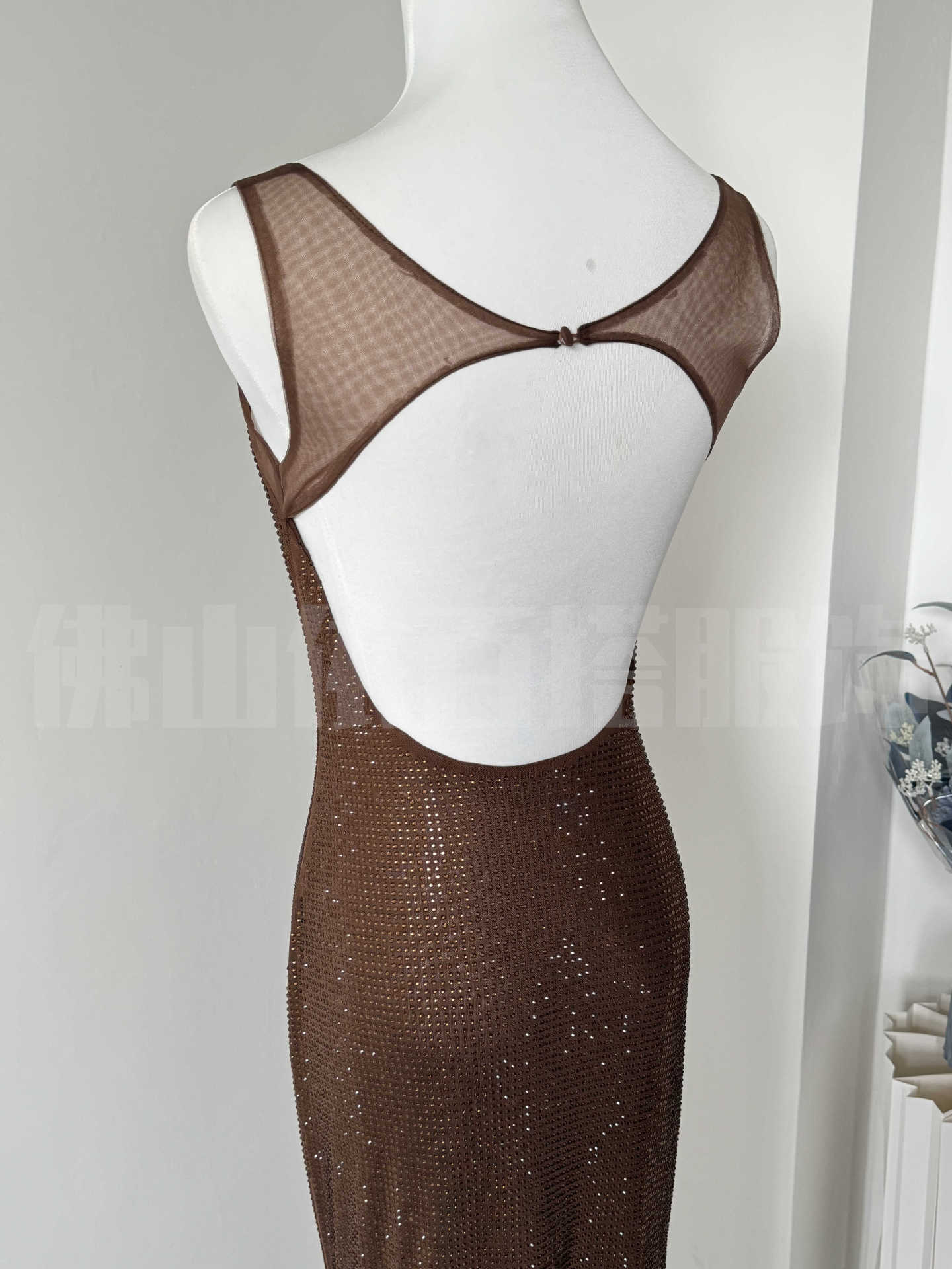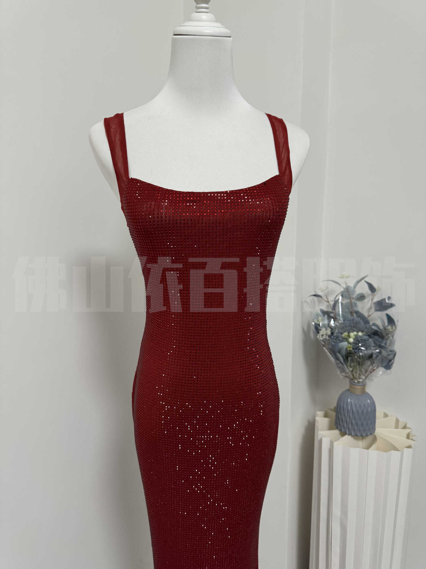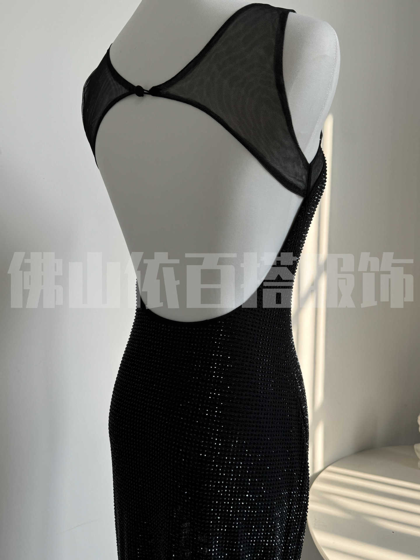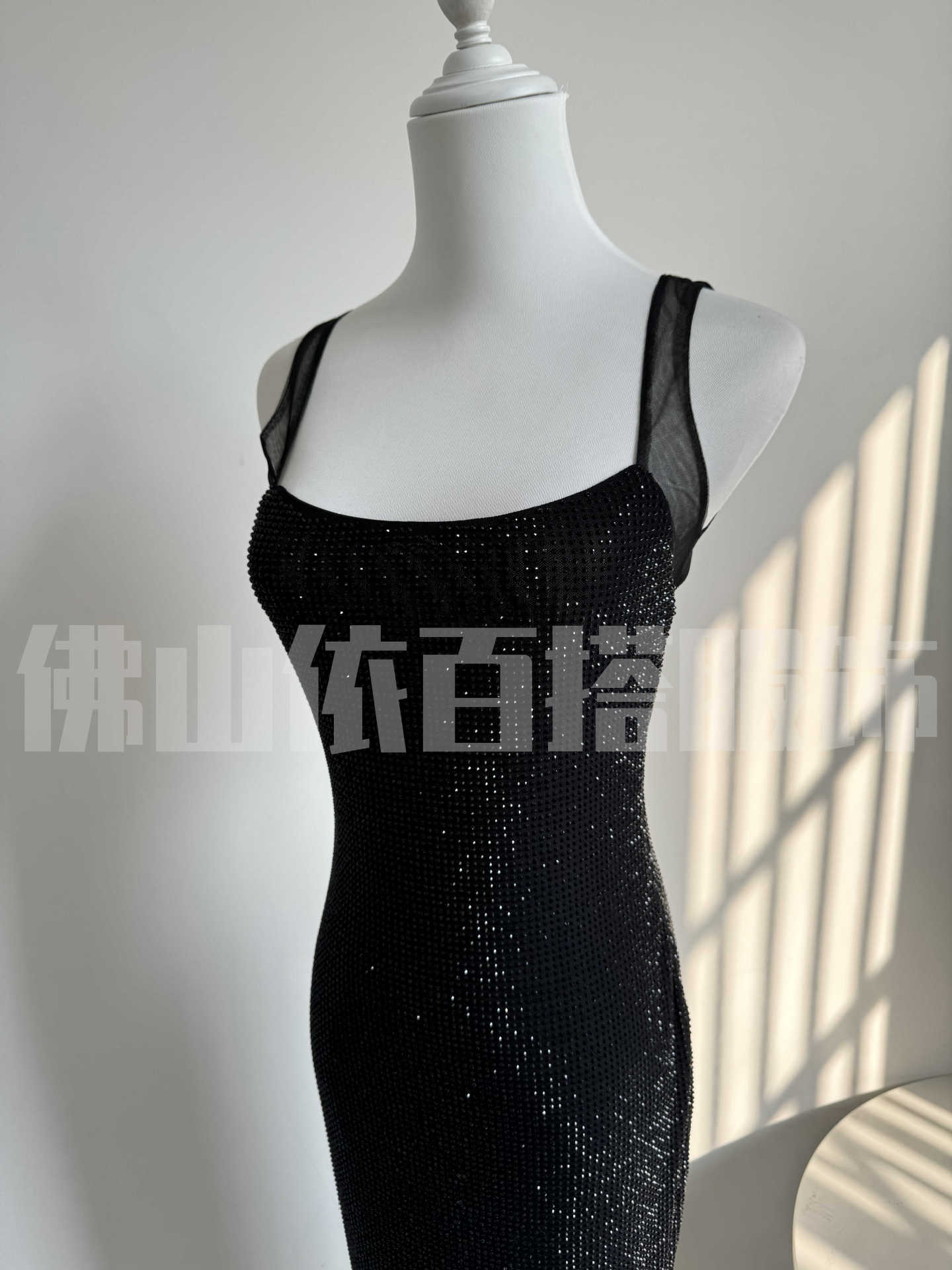 국경 간 유럽과 미국 새로운 슈퍼 플래시 핫 드릴링 저녁 원피스 로우 칼라 힙 원피스 타이트 슬링 원피스 하이 엔드 센스스토어 가기