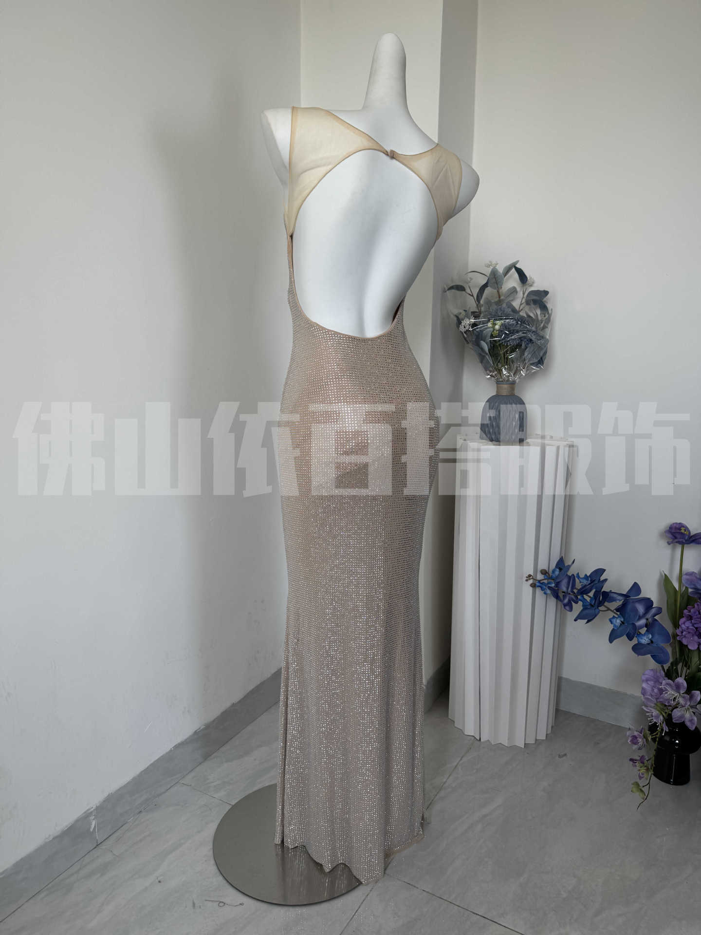 국경 간 유럽과 미국 새로운 슈퍼 플래시 핫 드릴링 저녁 원피스 로우 칼라 힙 원피스 타이트 슬링 원피스 하이 엔드 센스