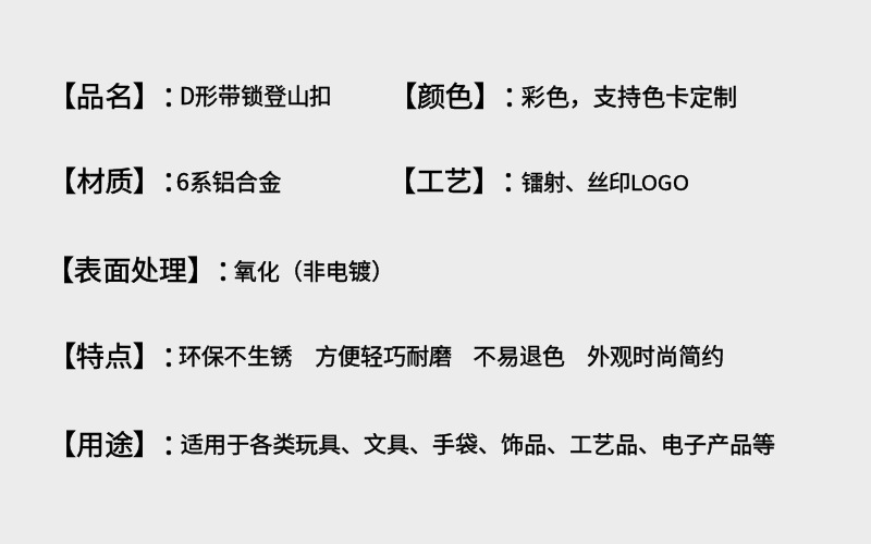 D 타입 카라비너 잠금 45678 알루미늄 합금 배낭 퀵 후크 금속 키 체인 컬러 물병 후크
