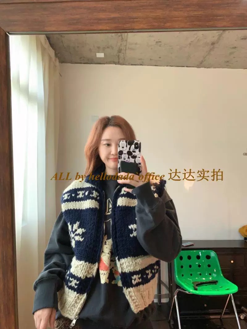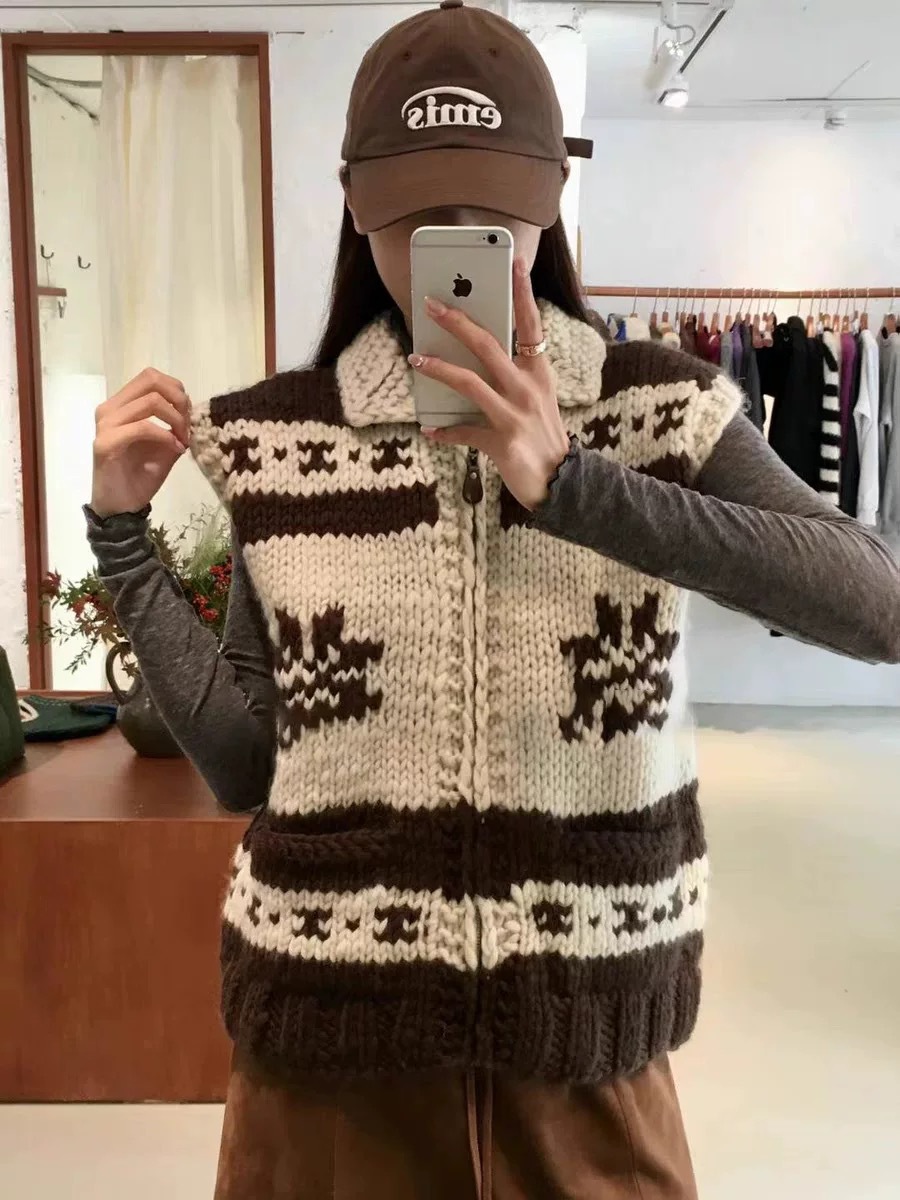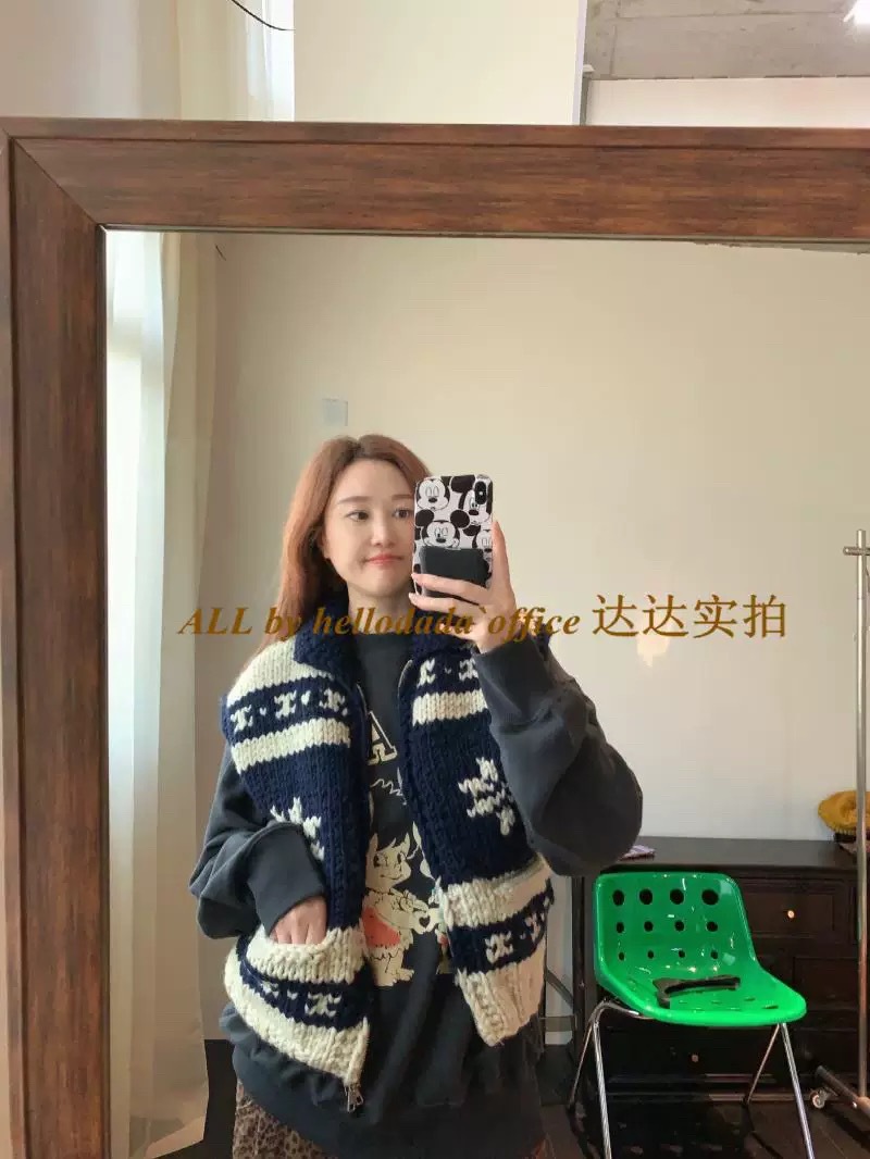 초가을 한국 스타일 크로스보더 레트로 엘크 페어 아일드 라이트 럭셔리 순모 수제 조끼 코트 스웨터 여성용스토어 가기