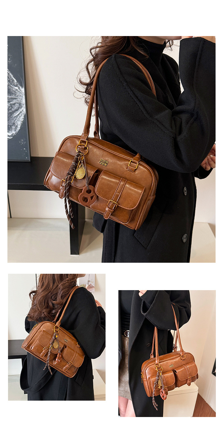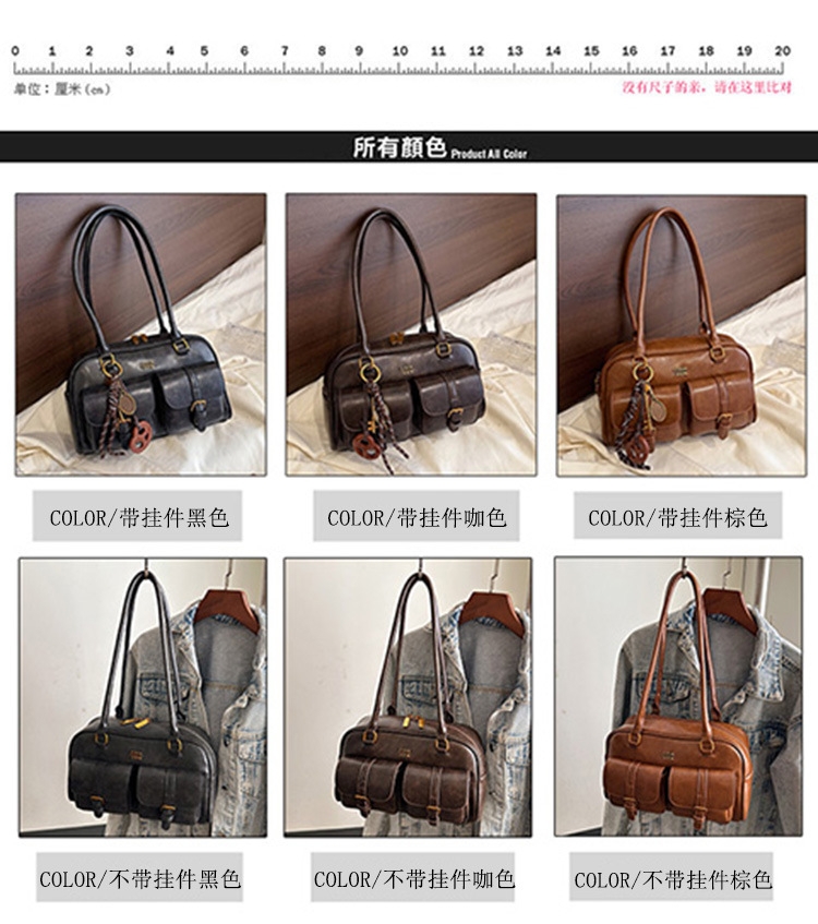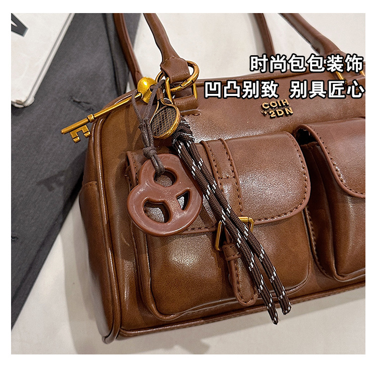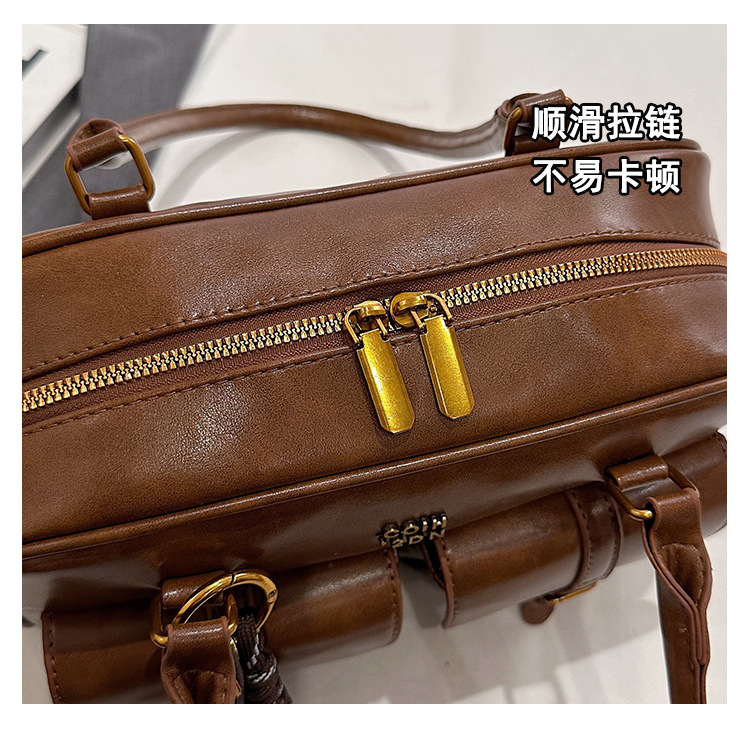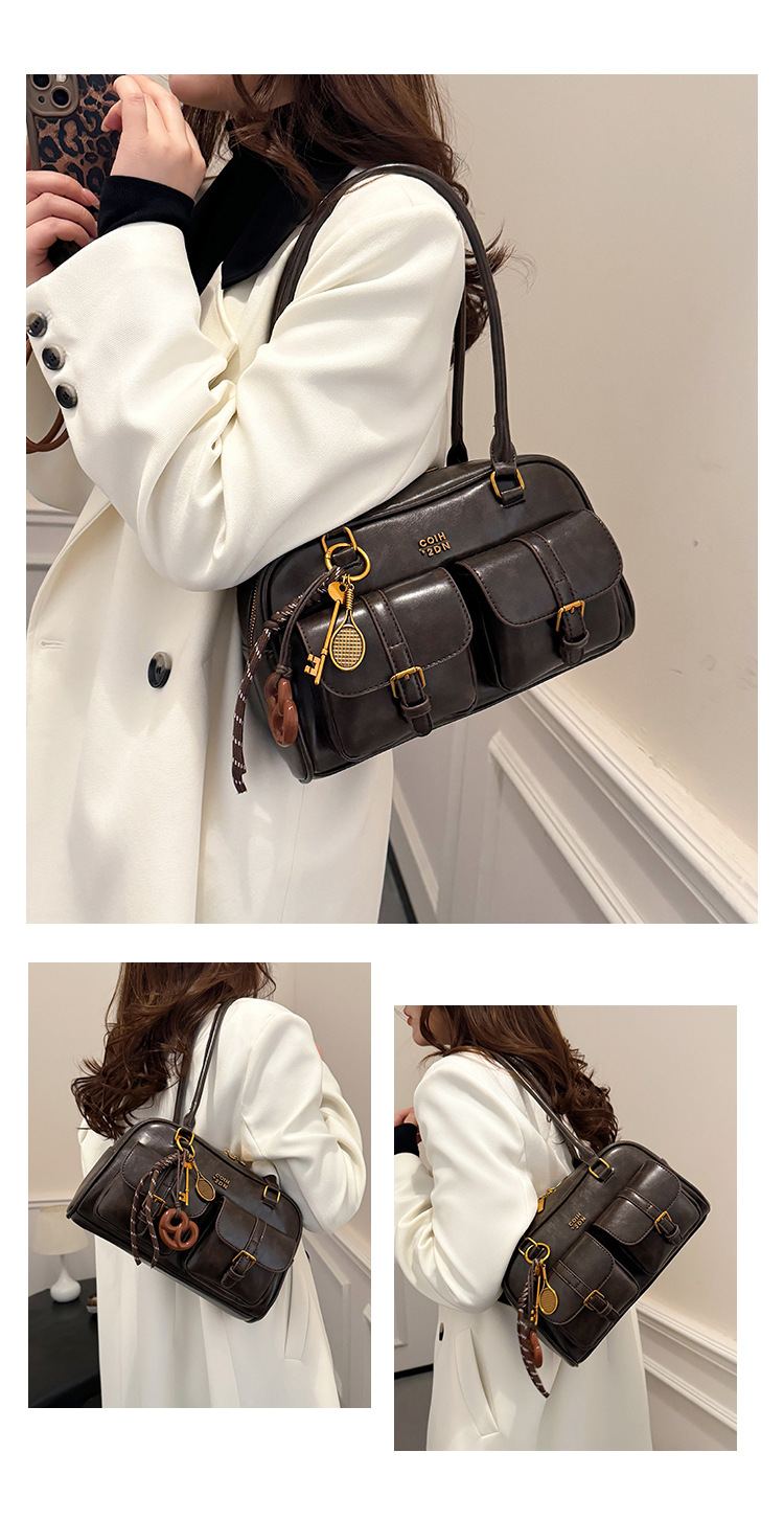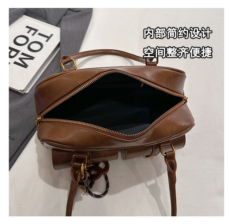 한국 스타일 레트로 어깨 가방 2024 가을 겨울 새로운 패션 캐주얼 보스턴 가방 서양식 볼링 가방