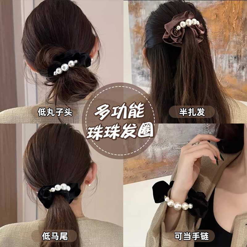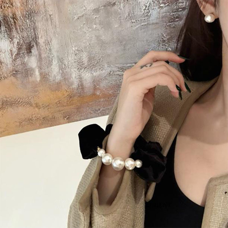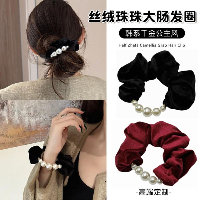 한국식 고급 벨벳 구슬 대형 장내 헤어 링 간단한 샤넬 스타일 낮은 무게 볼 헤어 로프 우아한 헤어 로프 헤어 액세서리스토어 가기