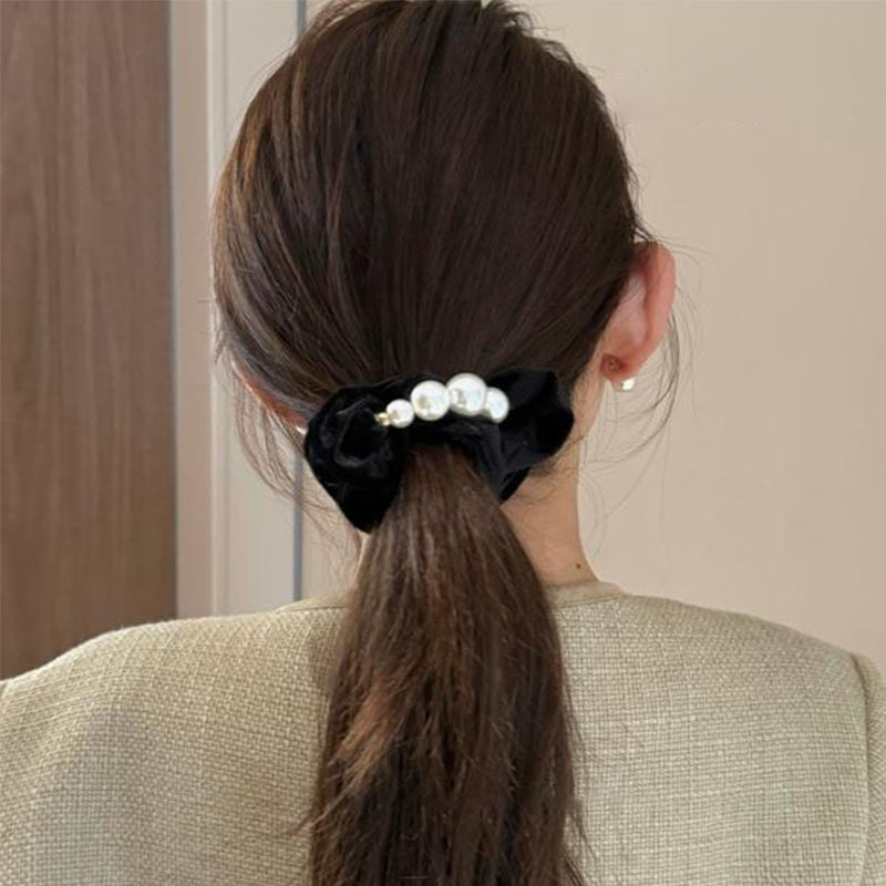 • X07-1#블랙 비즈 벨벳 머리끈