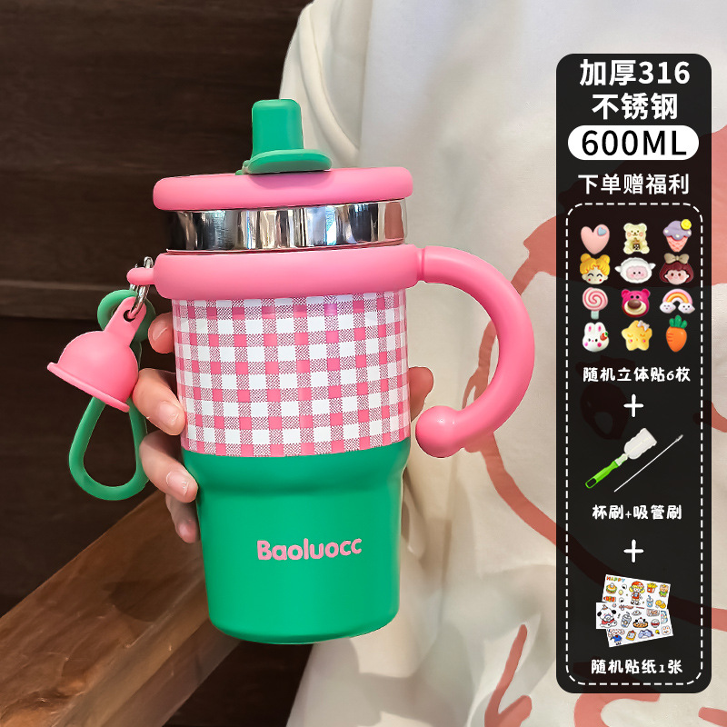 높은 색상 가치 커피 보온병 컵 새로운 2024 더블 마시는 컵 소녀 큰 용량 핸들 짚과 함께 컵