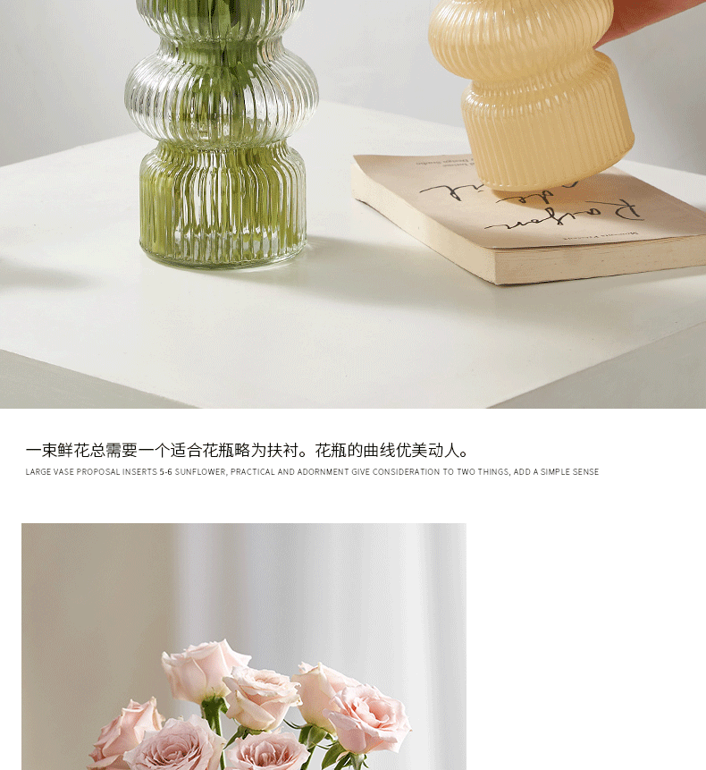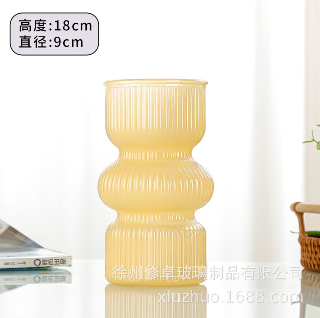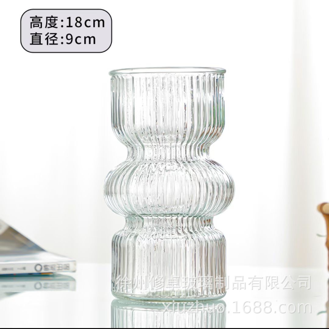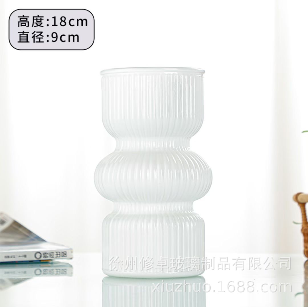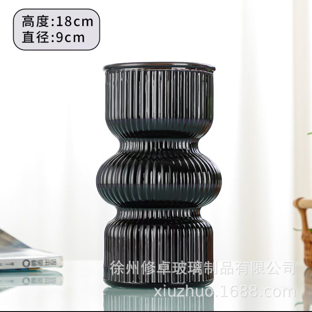 고급 노르딕 인 스타일 빈티지 스트라이프 홈 유리 꽃병 거실 식탁 라이트 럭셔리 틈새 장식 장식품