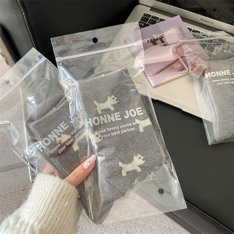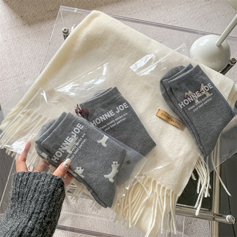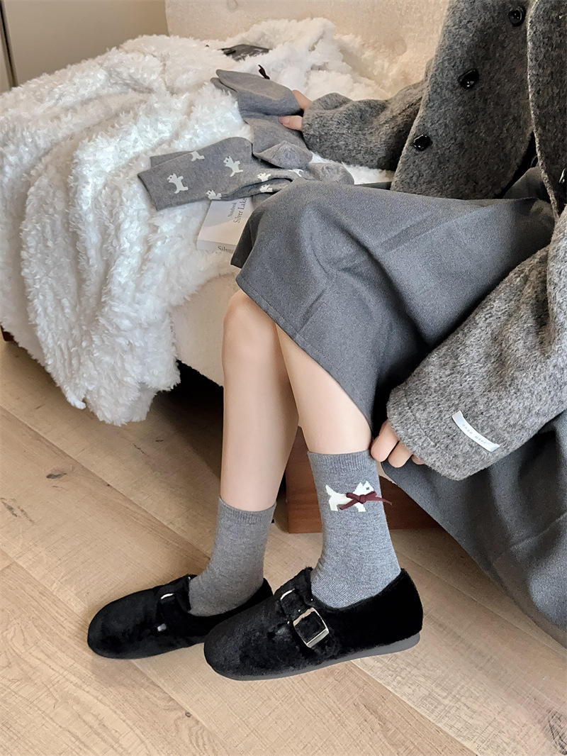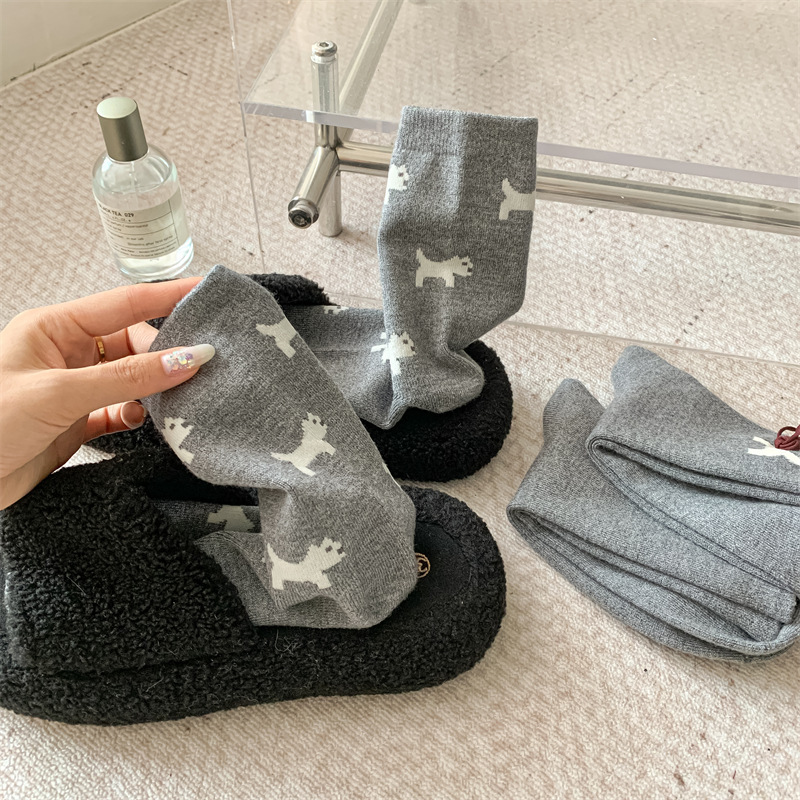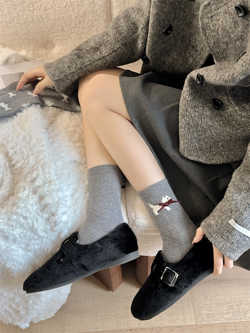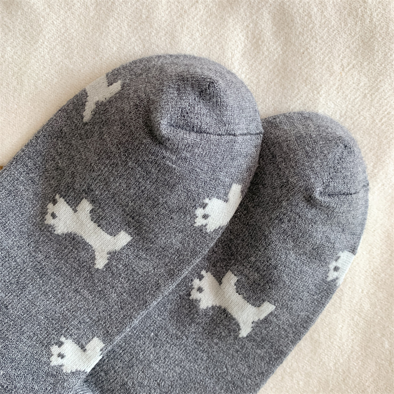 2024 년 가을과 겨울 새로운 두꺼운 따뜻한 벨벳 귀여운 개 활 회색 스타킹 울 미드 튜브 여성용 양말