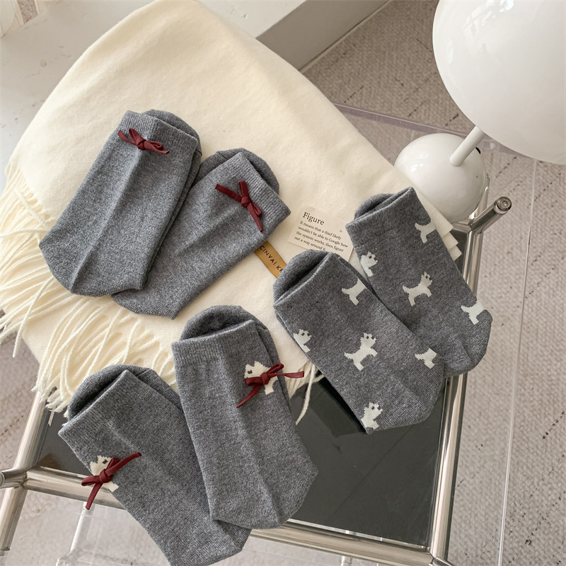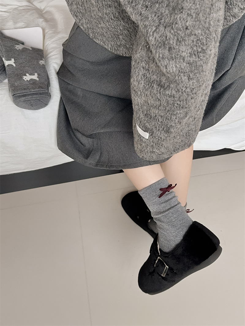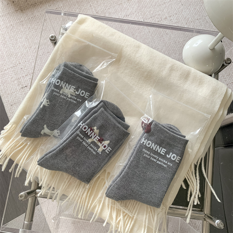 2024 년 가을과 겨울 새로운 두꺼운 따뜻한 벨벳 귀여운 개 활 회색 스타킹 울 미드 튜브 여성용 양말스토어 가기