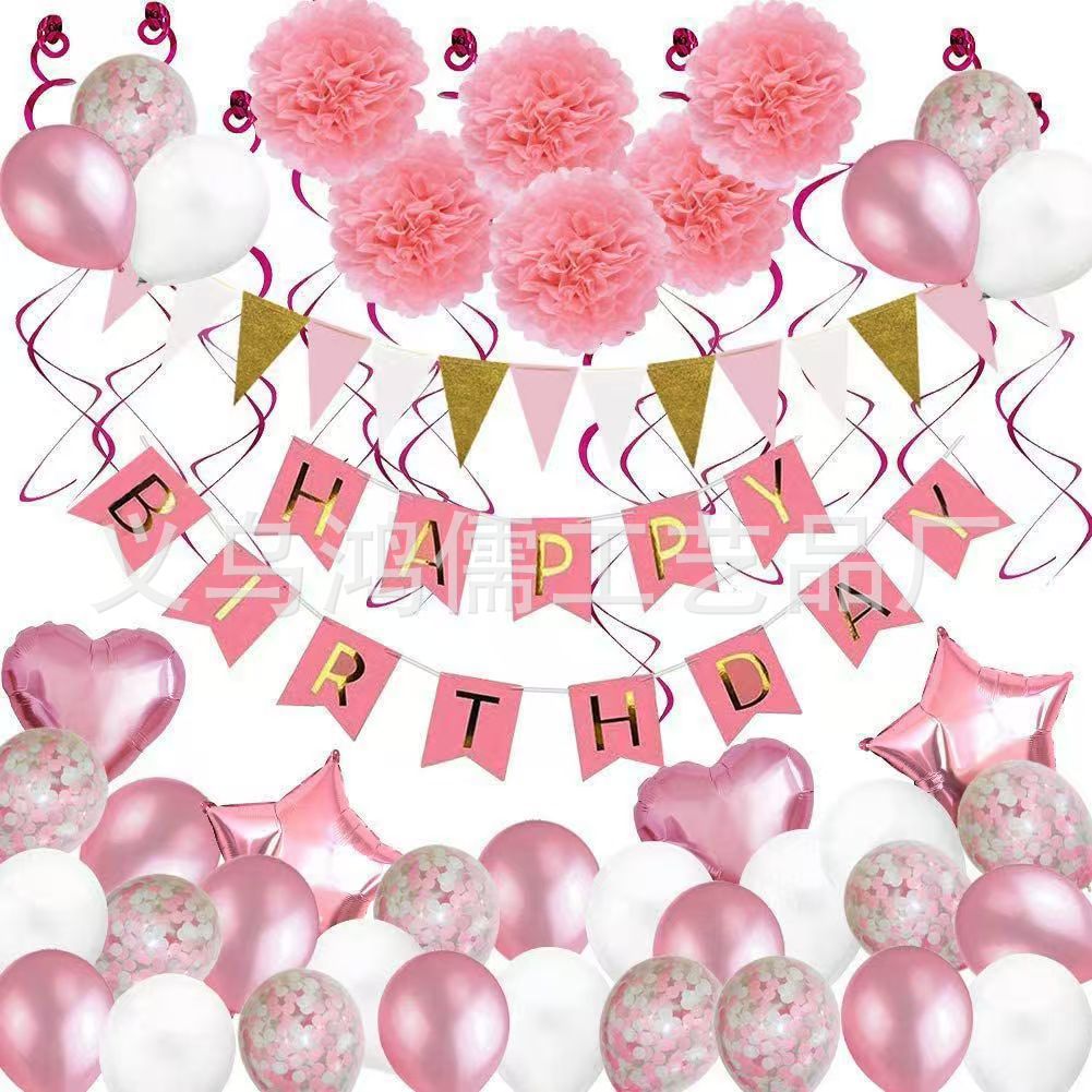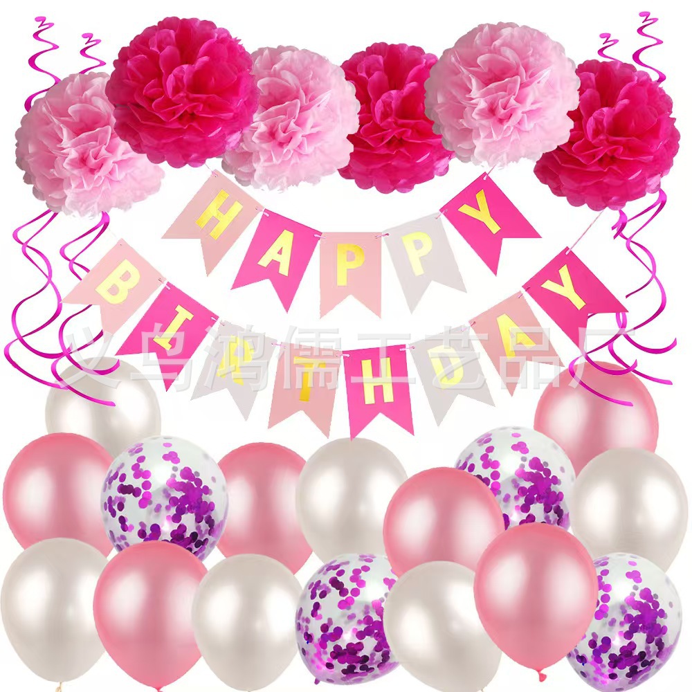 국경 간 새 종이 꽃 깃발 생일 풍선 세트 파티 생일 파티 장식 장면 레이아웃 세트스토어 가기