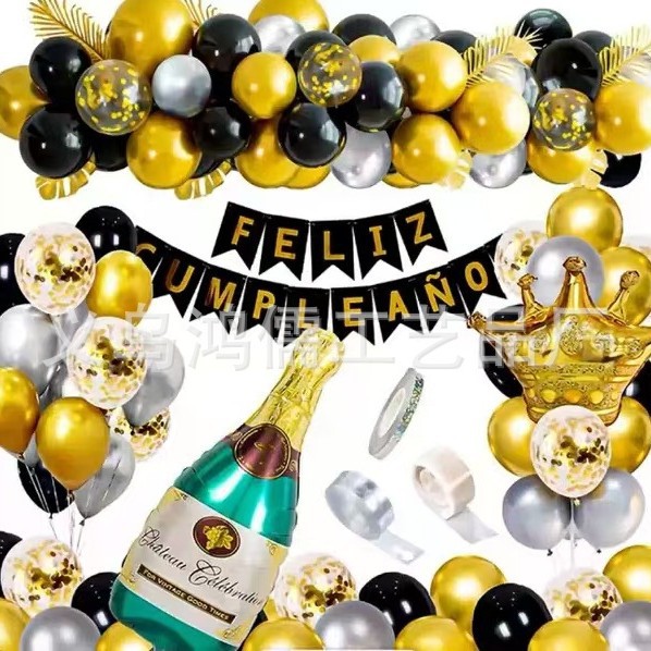 • 블랙 골드 스페인 생일 비 실크 커튼 크라운 와인 병 풍선 세트
