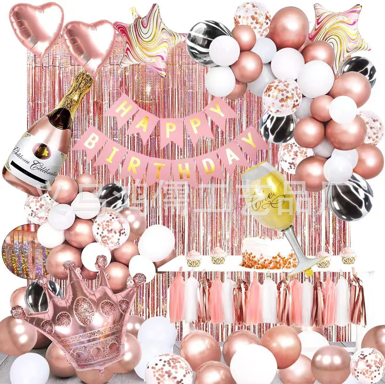 • 로즈 골드 비 실크 커튼 영어 생일 와인 병 와인 컵 크라운 다섯개 별 술 풍선 세트