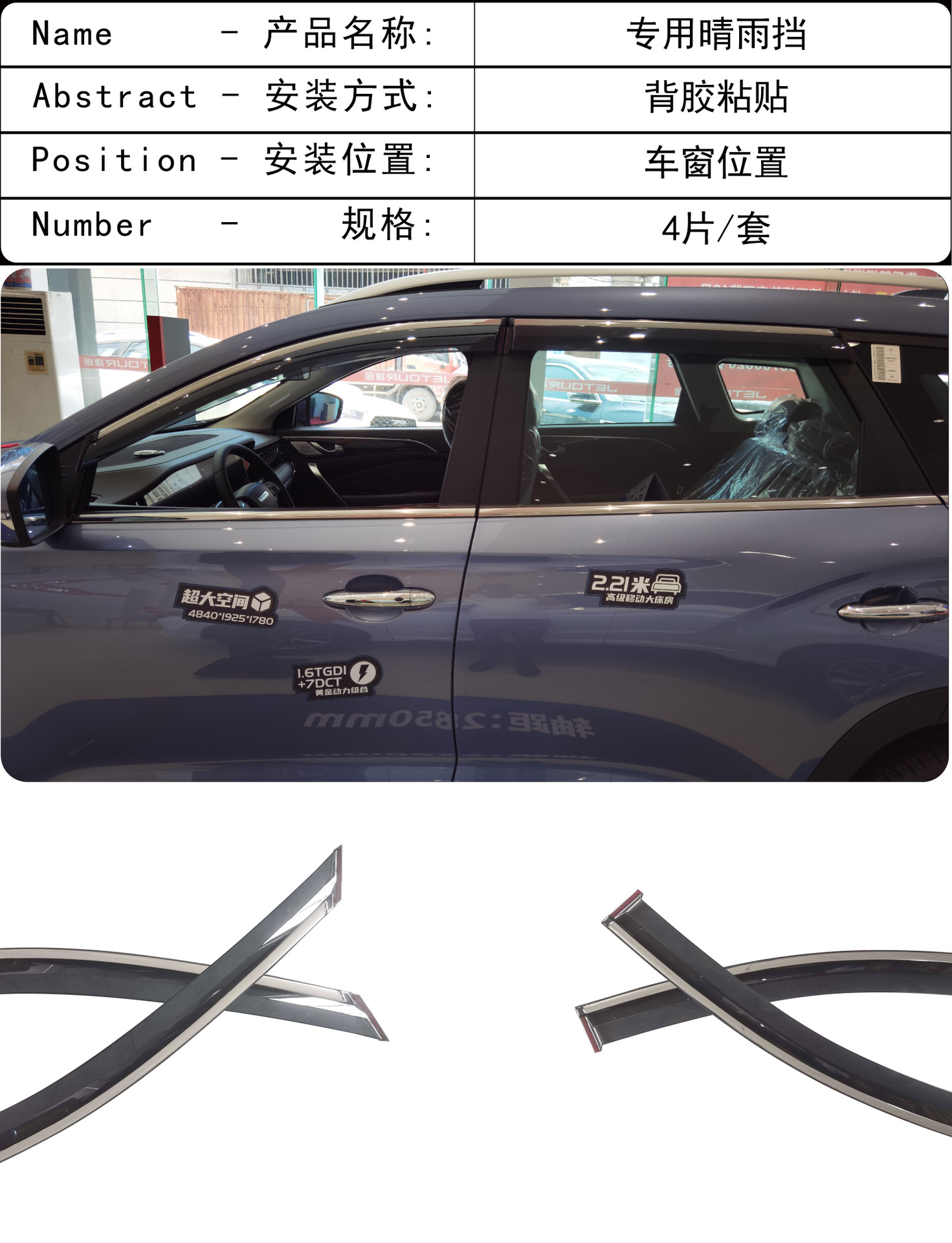 2019-2022 Jietu X90 창 비 방지 아크릴 접착 자동차 비 방패의 국경 응용스토어 가기
