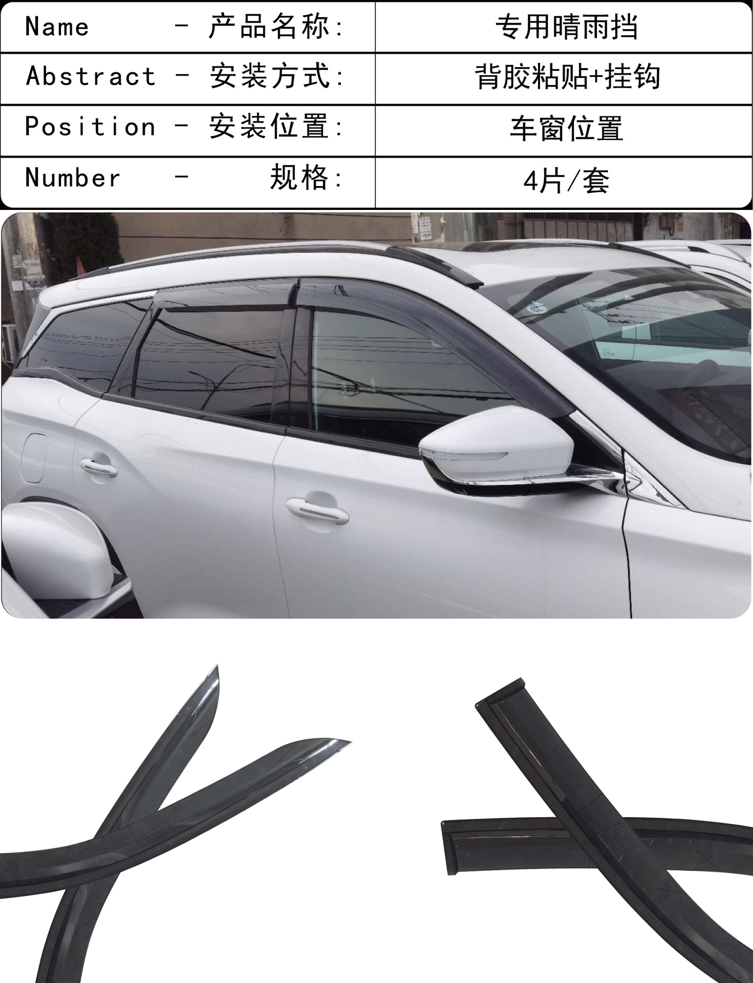 2019-2022 Jietu X90 창 비 방지 아크릴 접착 자동차 비 방패의 국경 응용